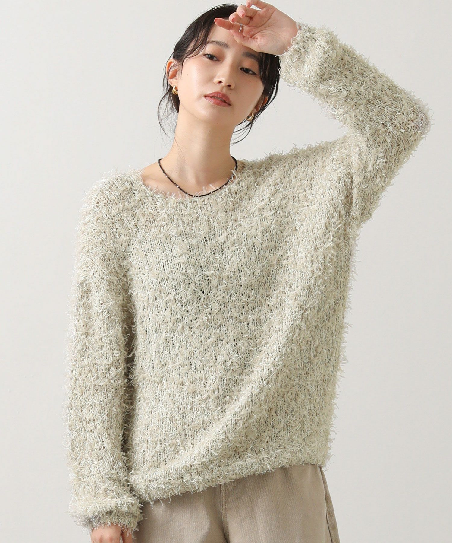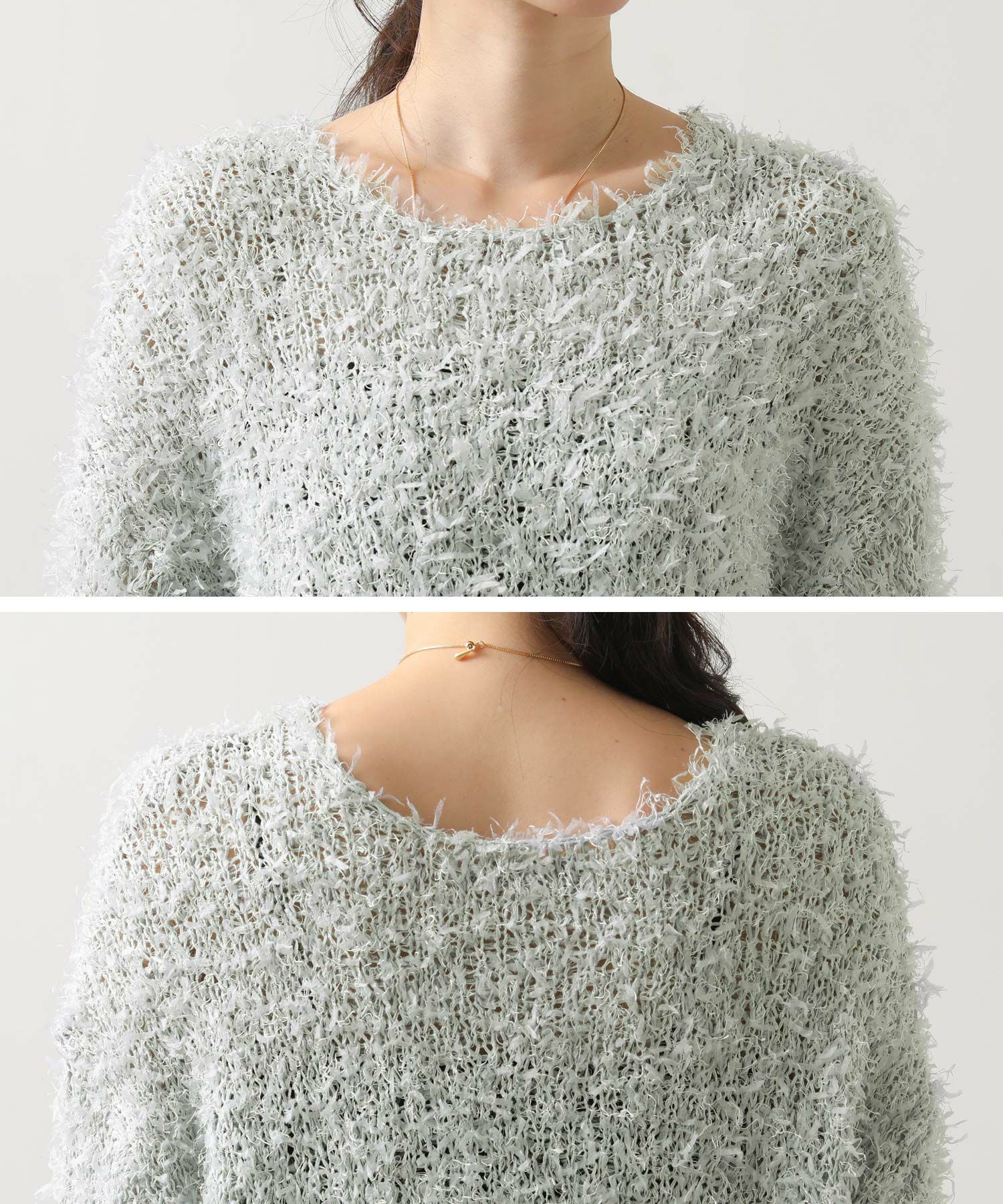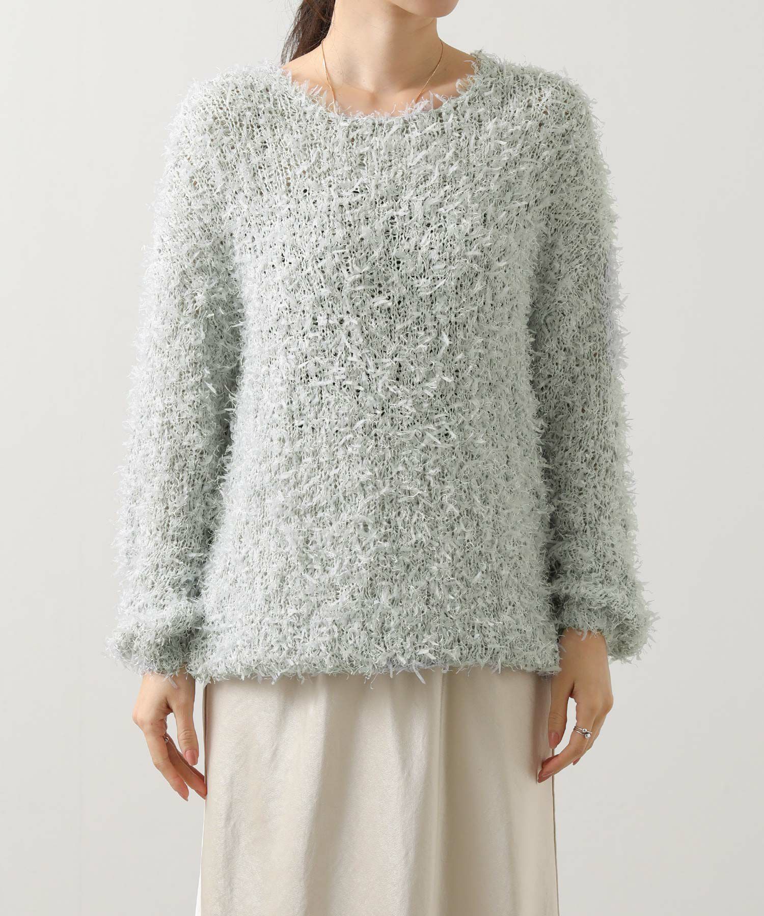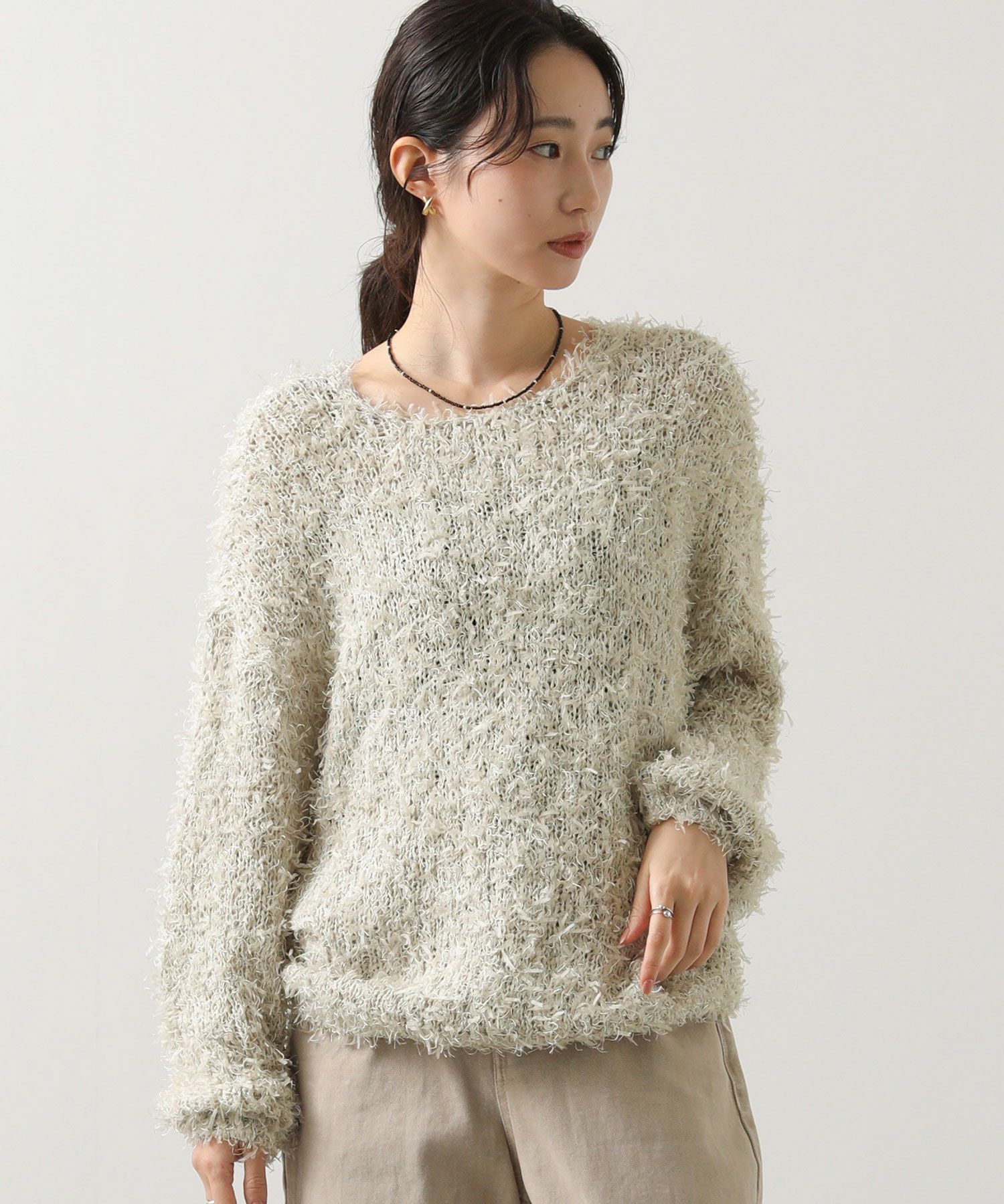 リボンヤーンボートネックプルオーバー