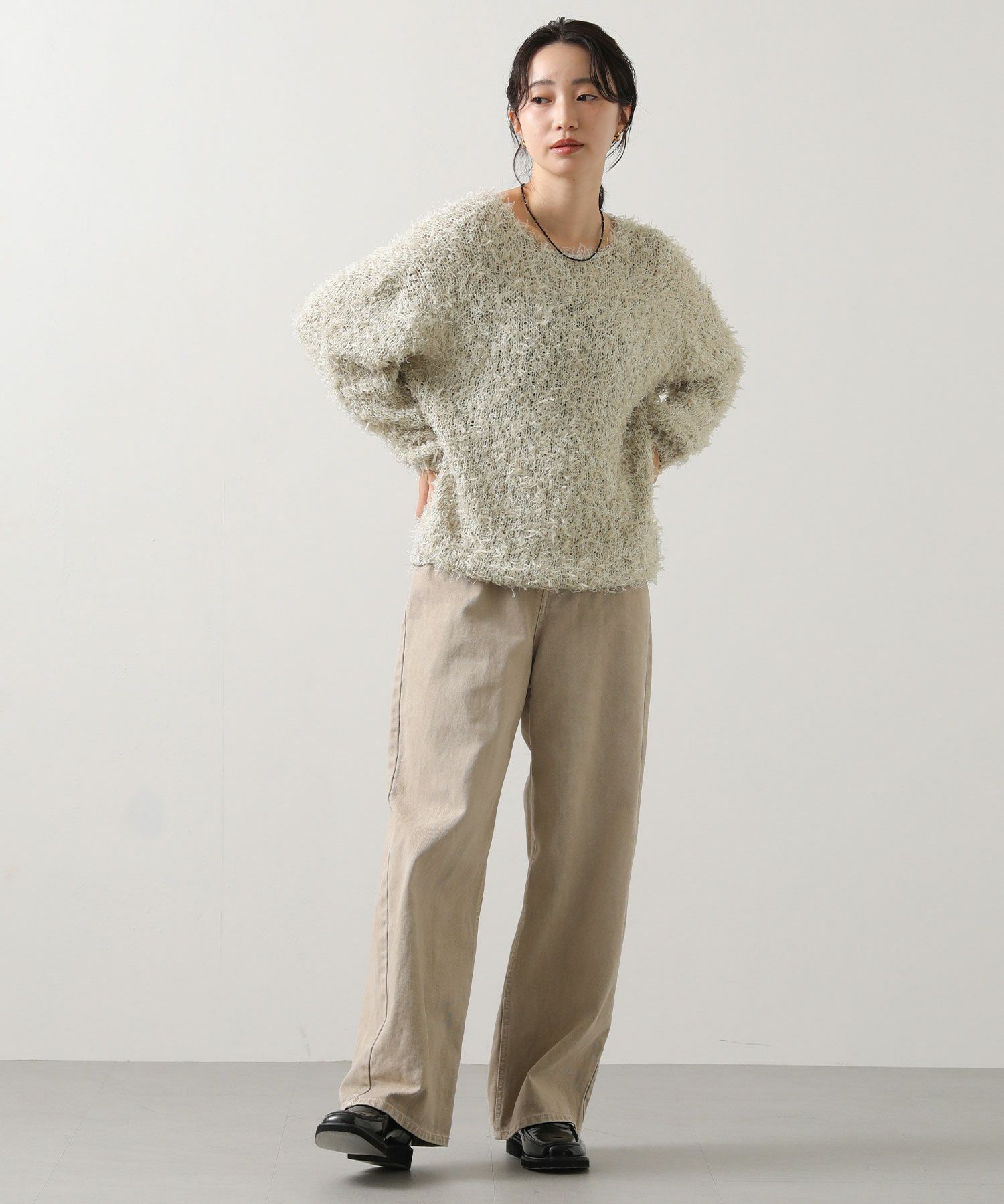 ※着用画像は撮影状況、光の当たり具合で色みが違って見える場合がございます。実際の色みについては、画像一覧の最後に掲載している詳細画像をご参照ください。