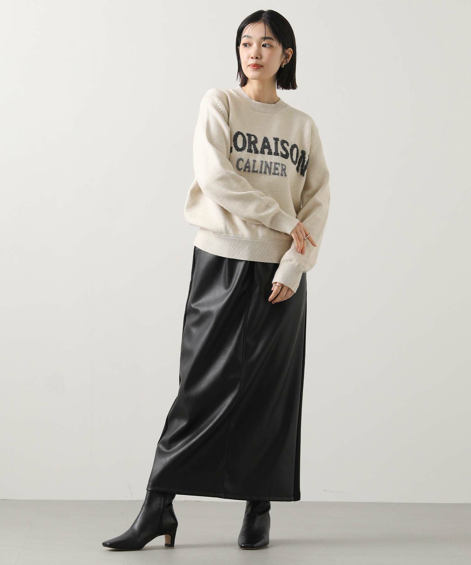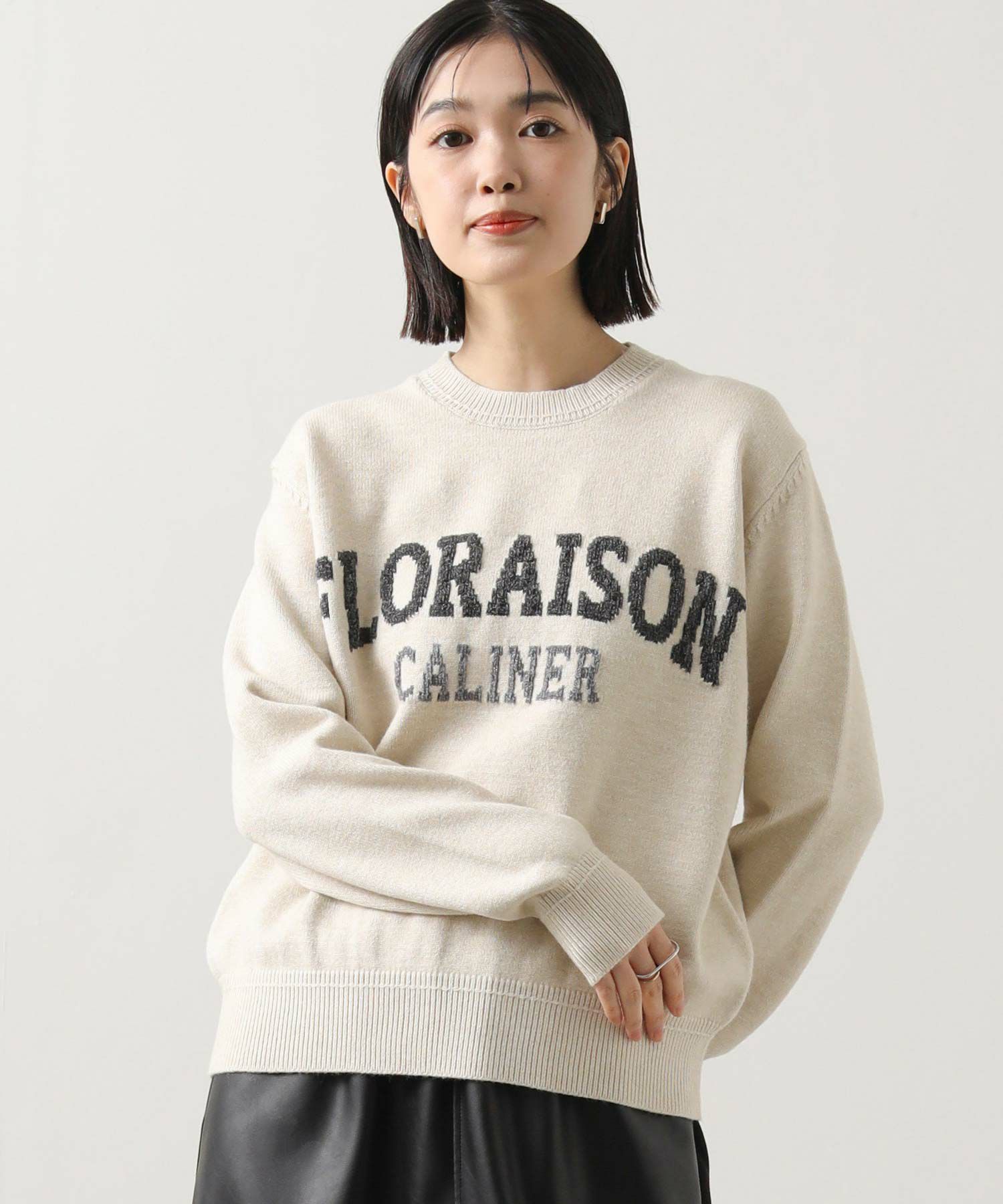 ロゴにさりげく光るラメ糸と立体感のあるモール糸を組み合わせたデザインニット。
