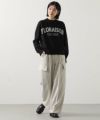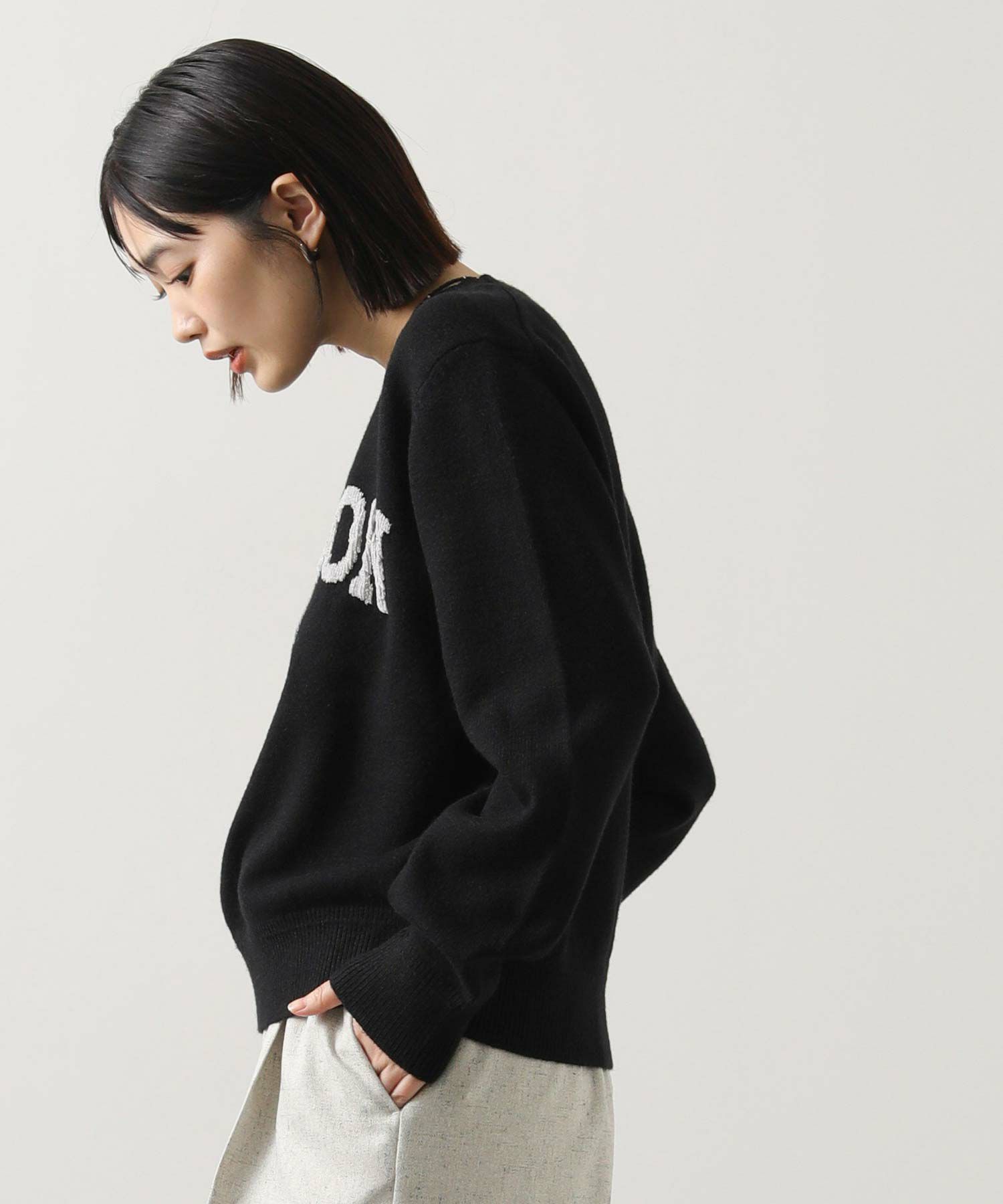 ロゴにさりげく光るラメ糸と立体感のあるモール糸を組み合わせたデザインニット。