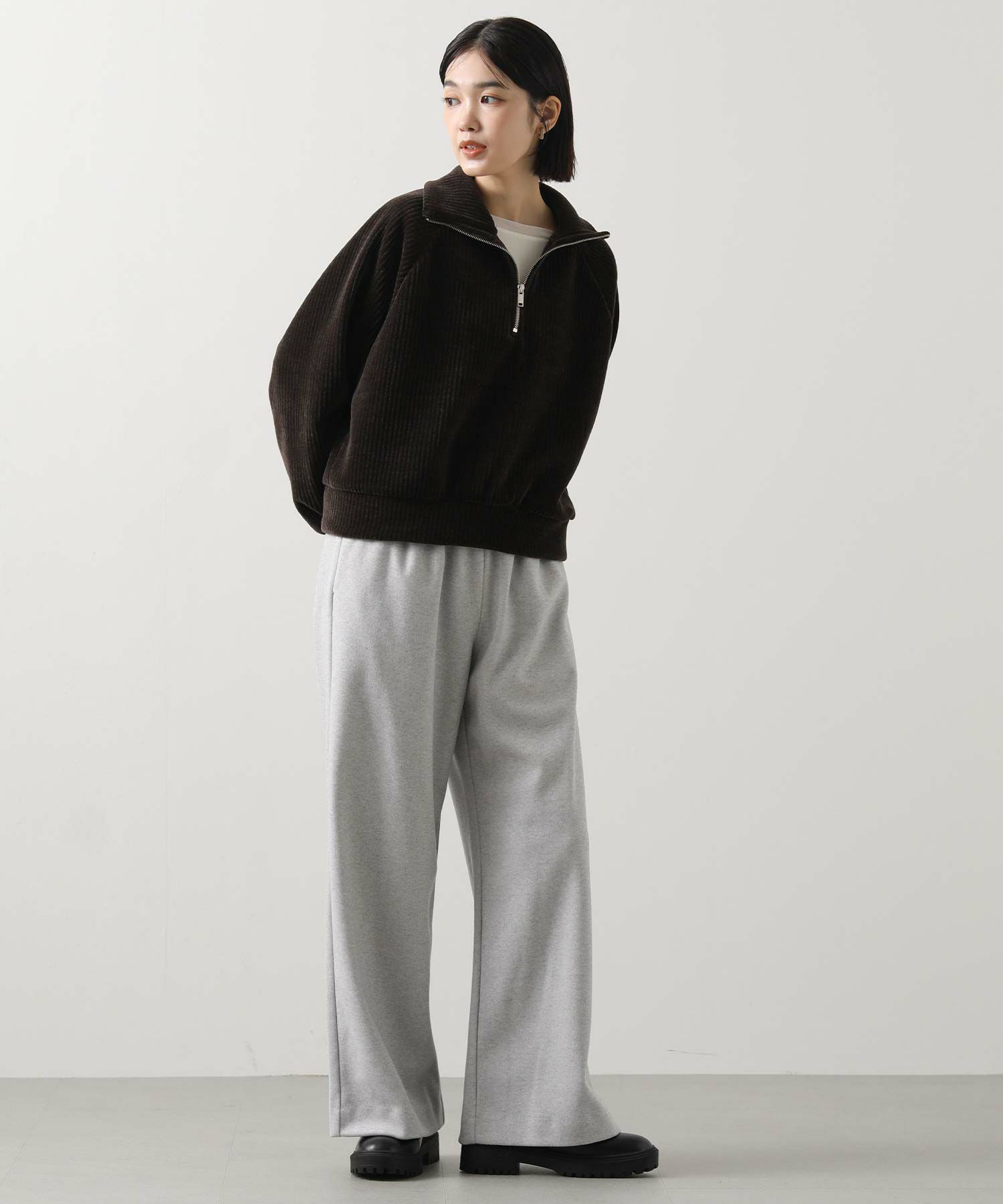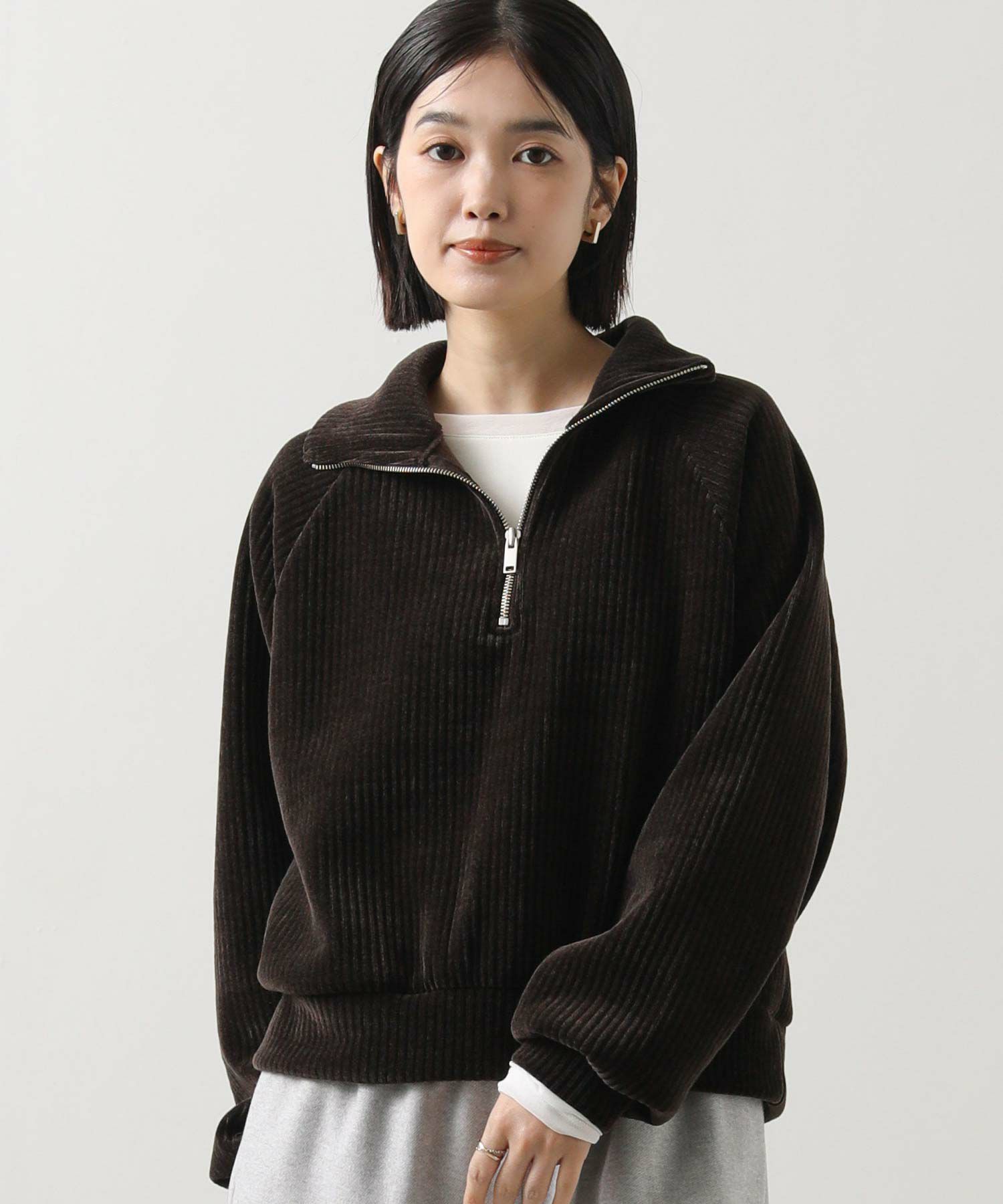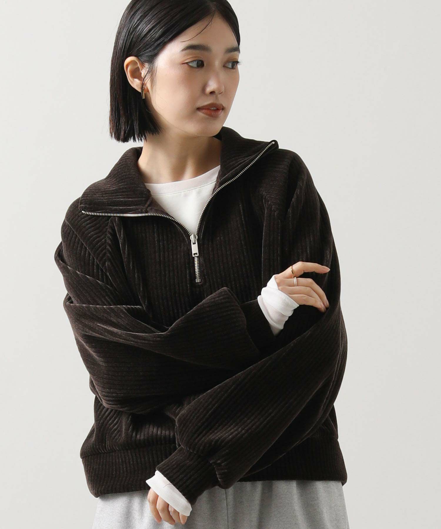 トレンド感のあるハーフジップが首元に抜け感をプラス。