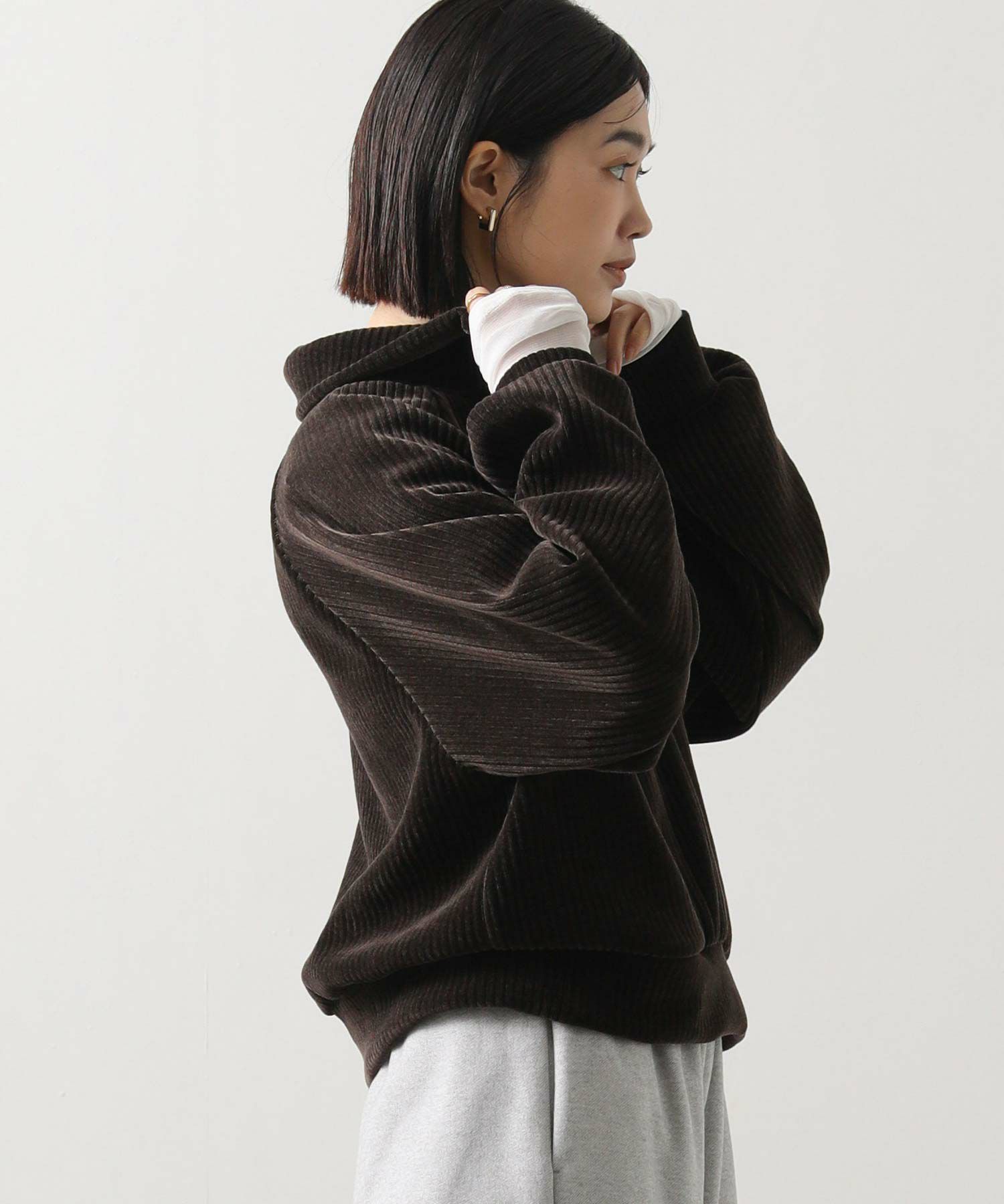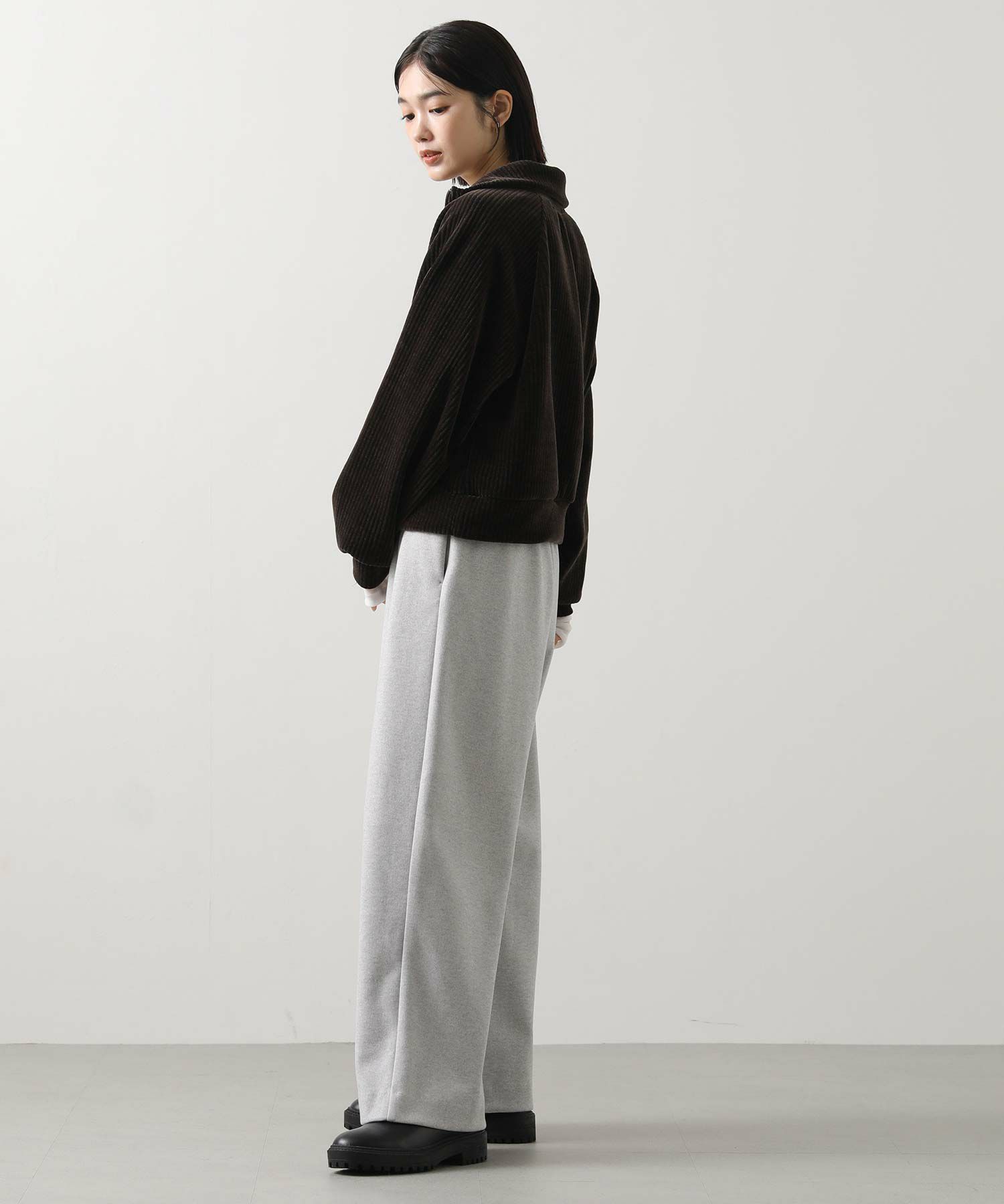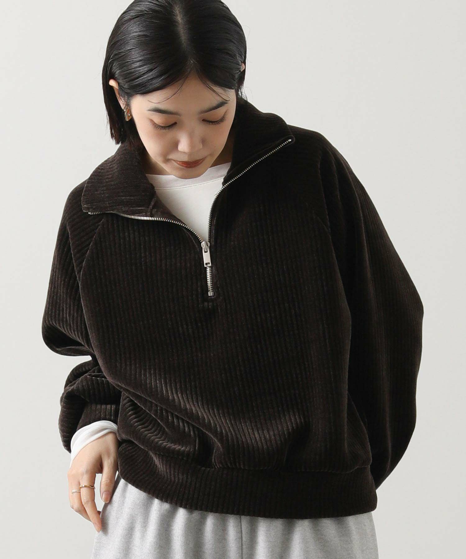 トレンド感のあるハーフジップが首元に抜け感をプラス。