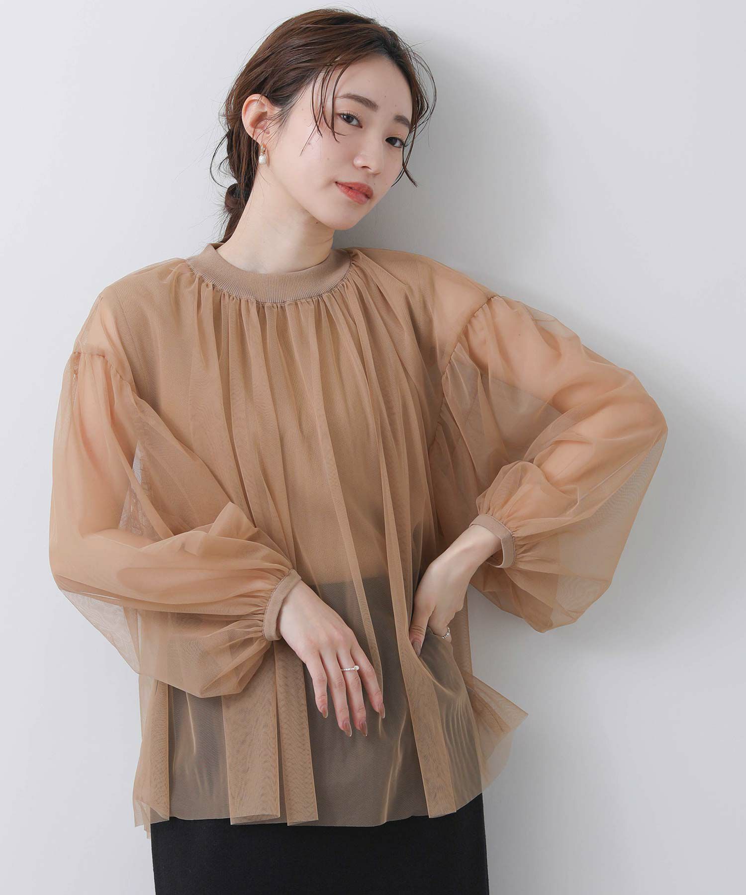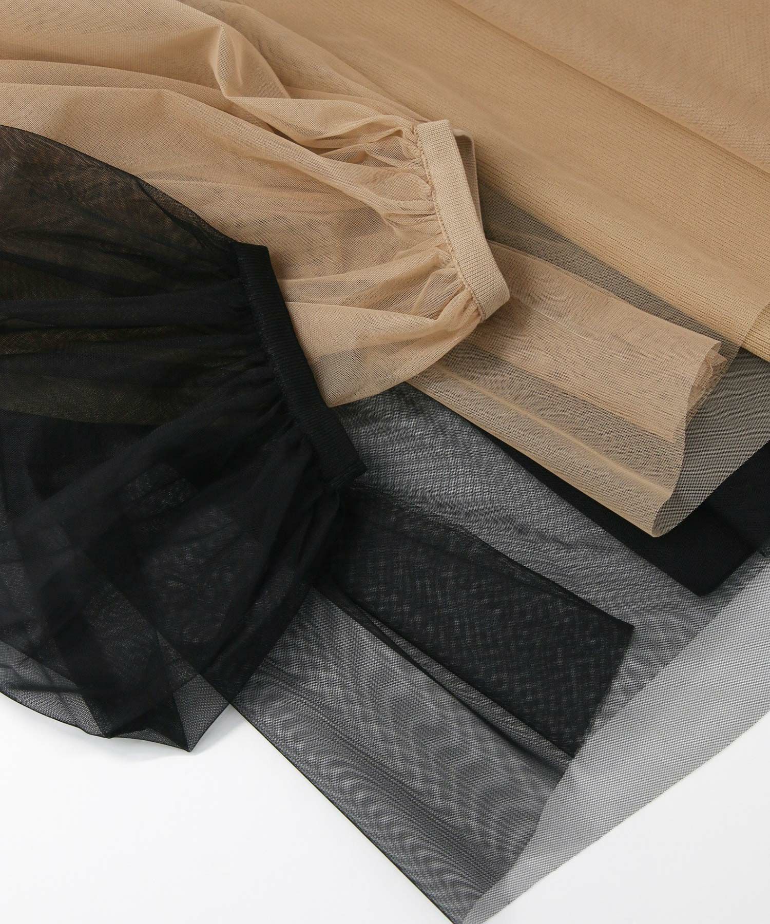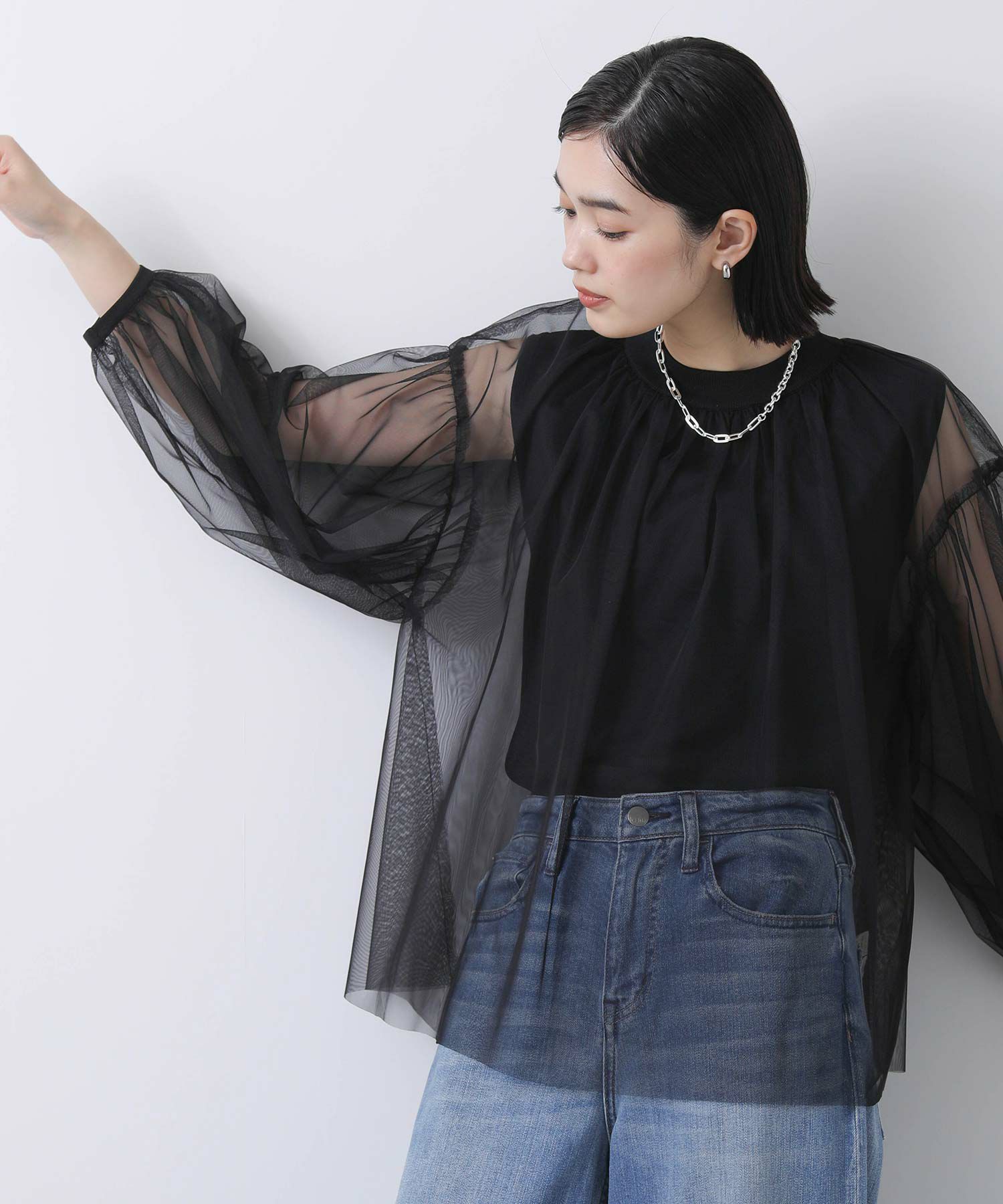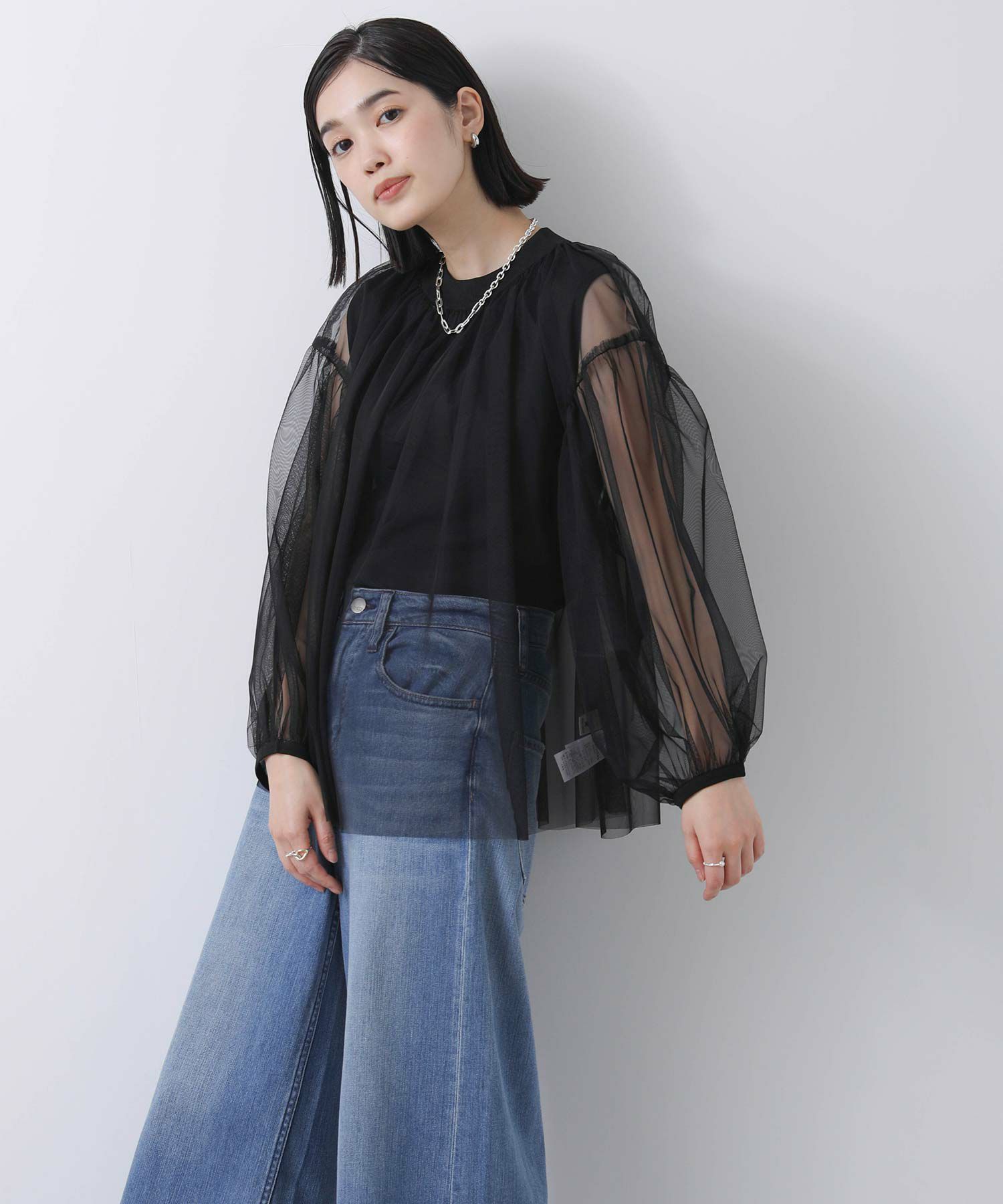 チュールトップスは全体的にギャザーを入れてボリューム感をプラス。