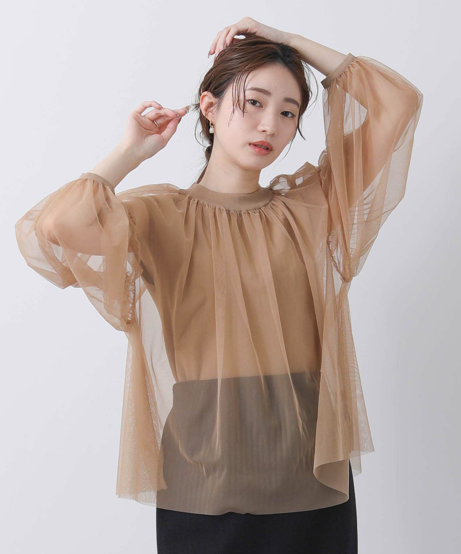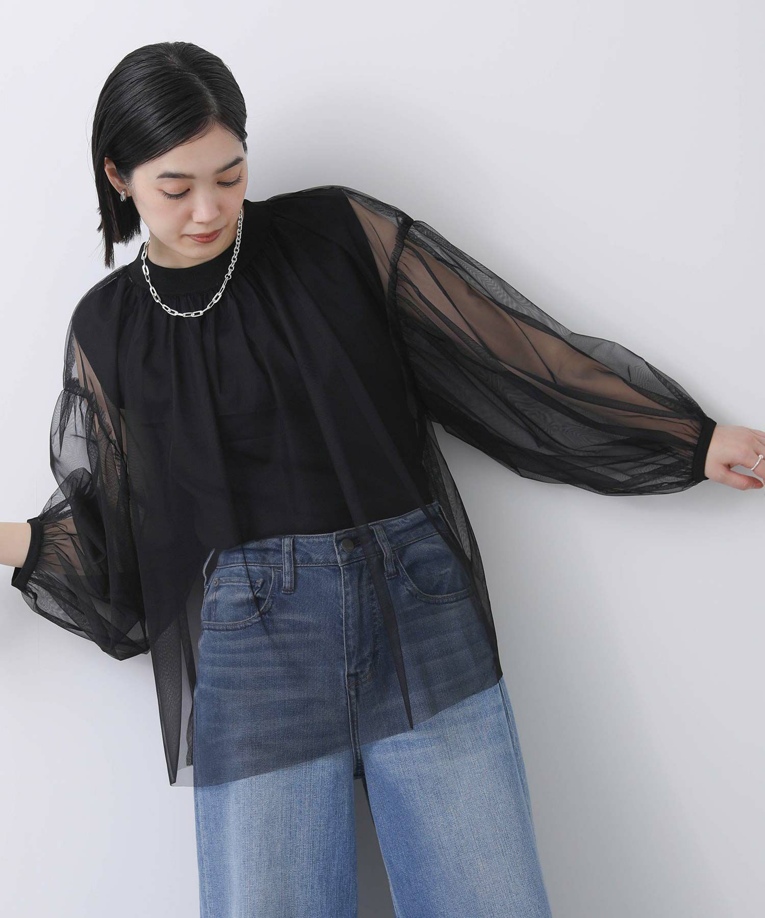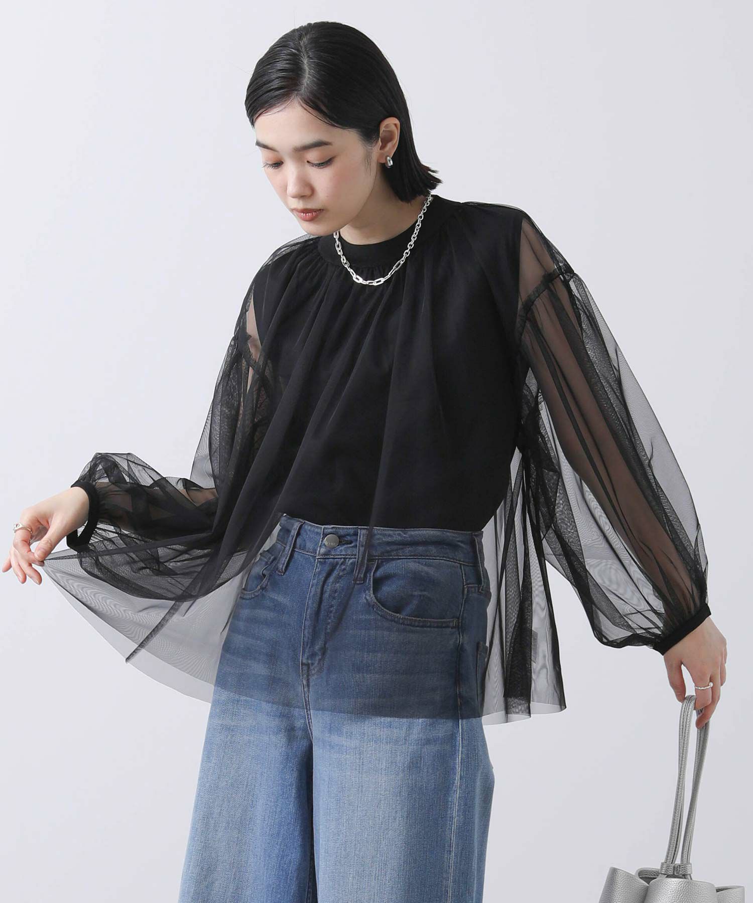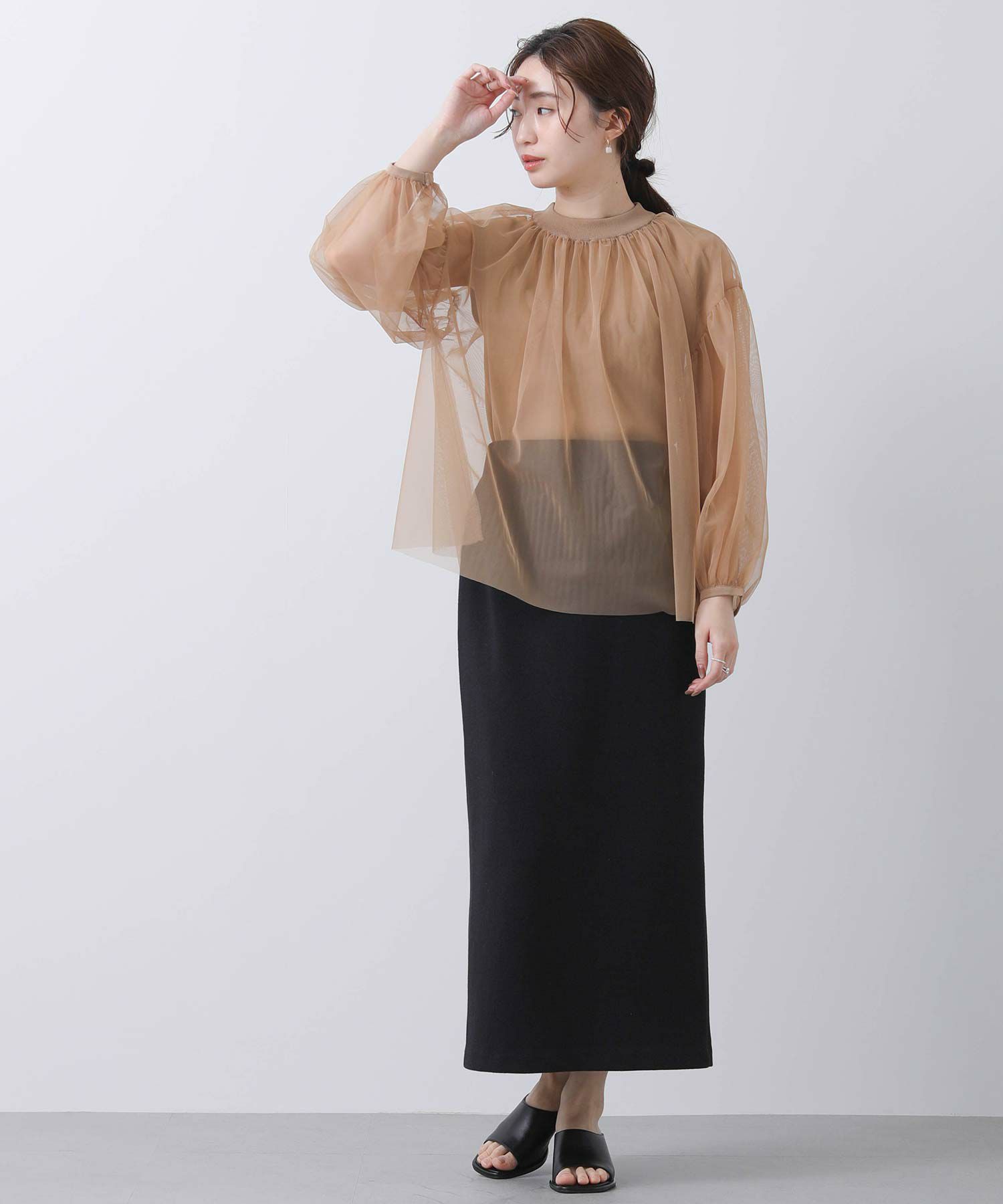 チュールトップスは全体的にギャザーを入れてボリューム感をプラス。