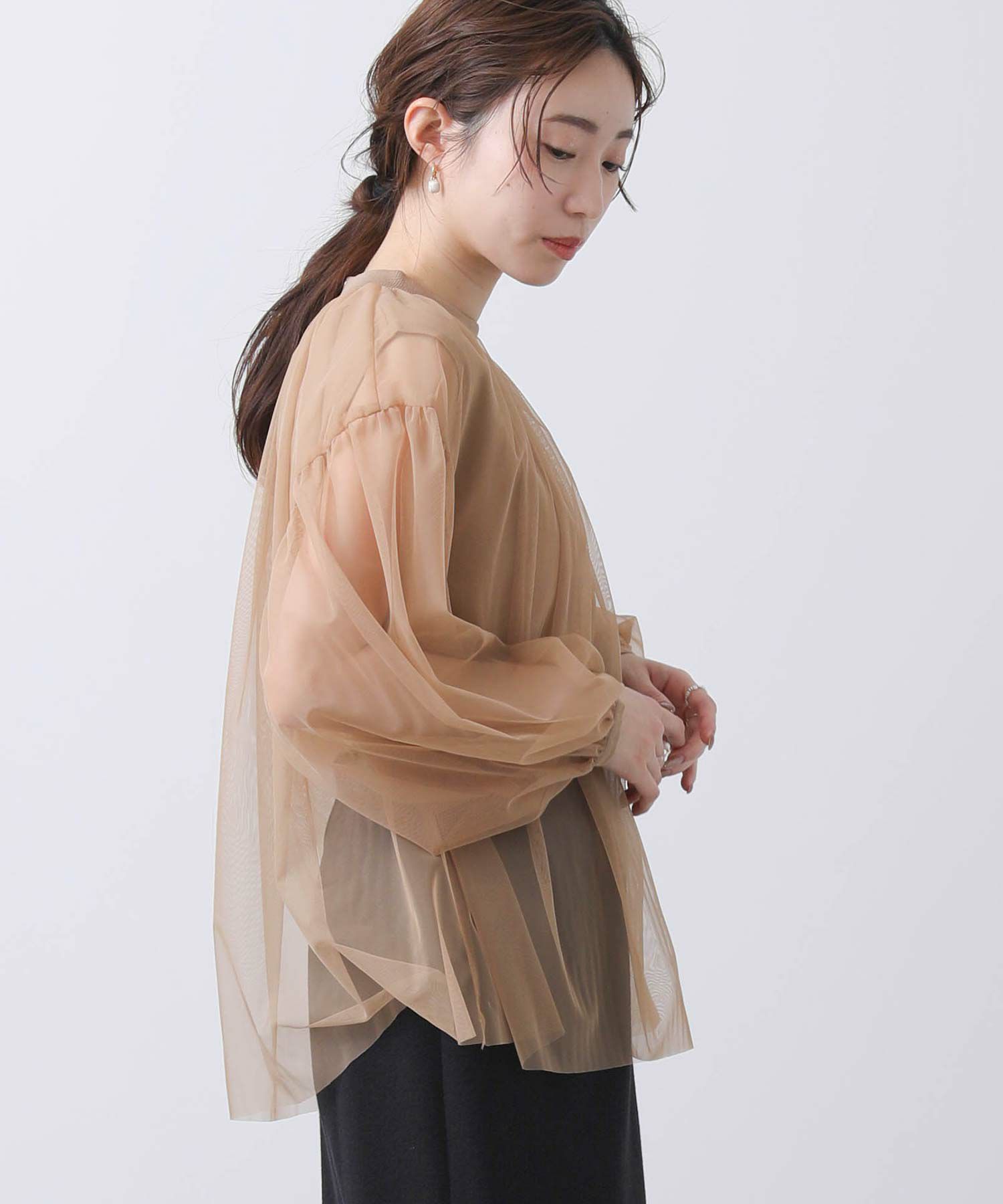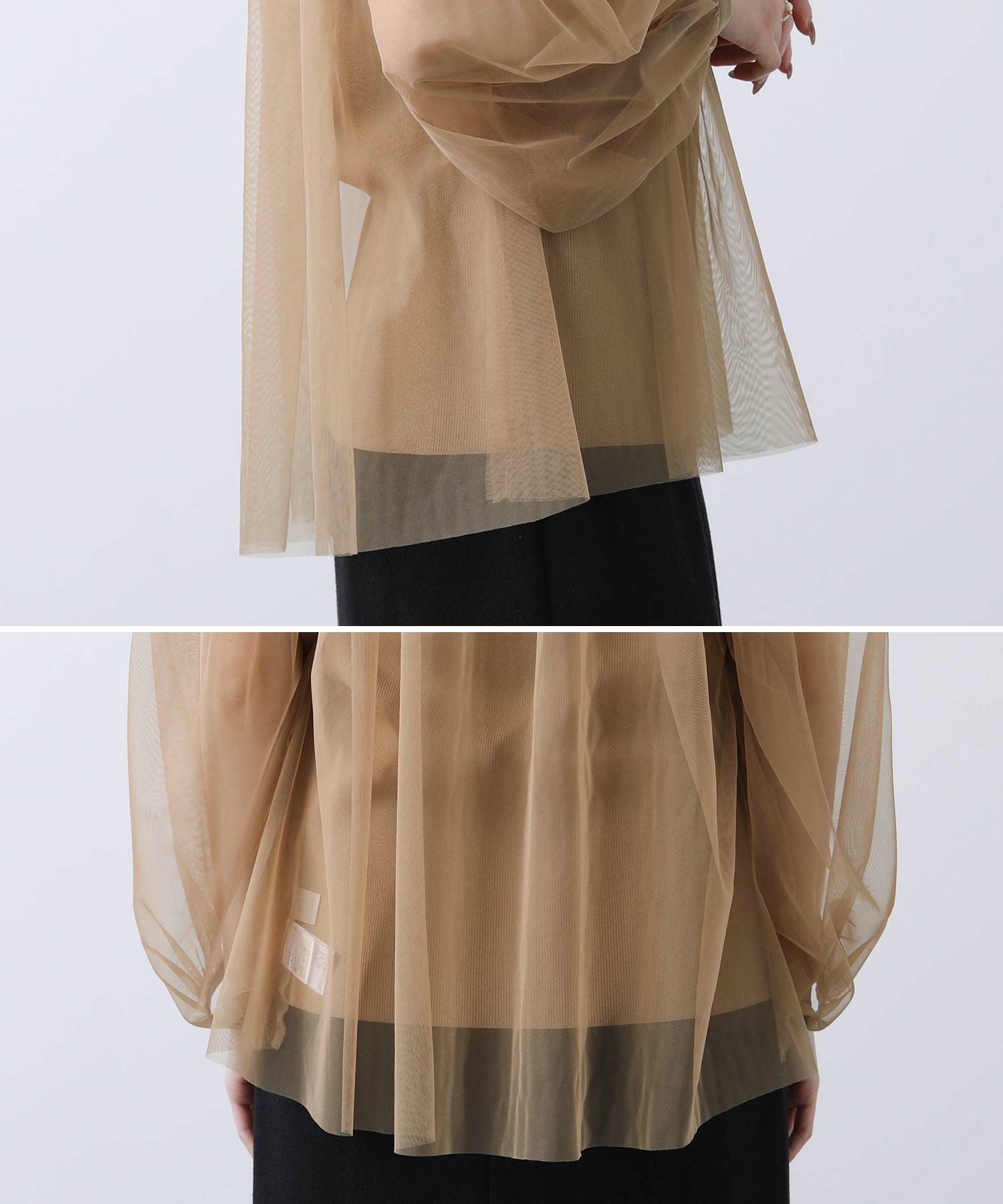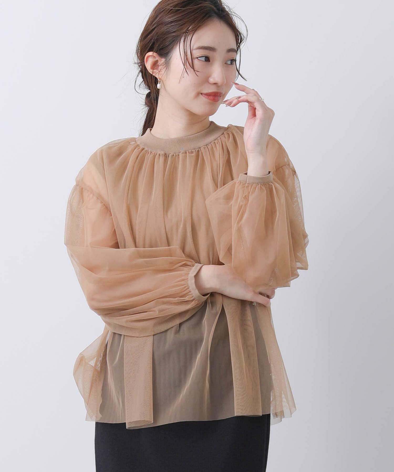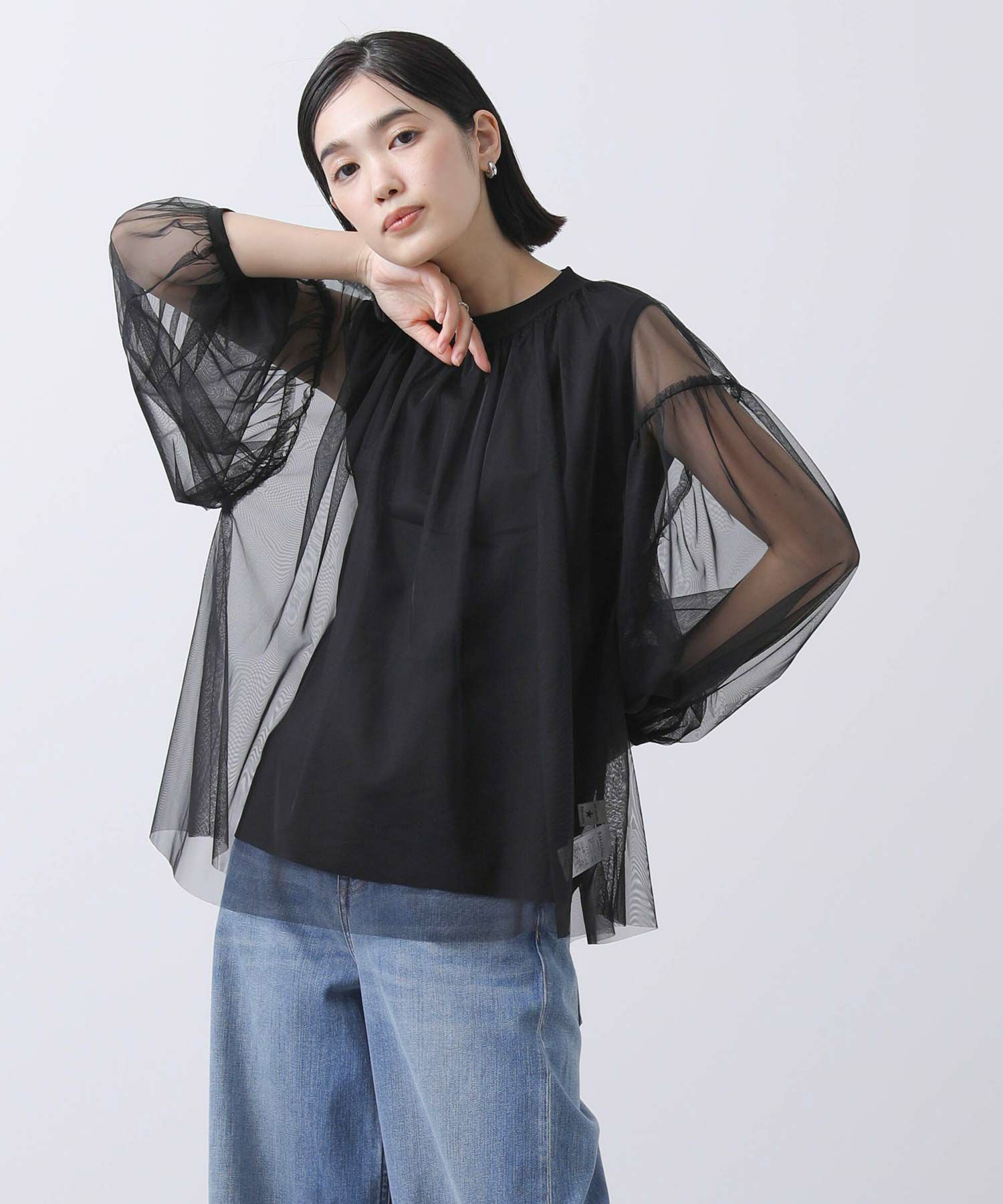 チュールトップスは全体的にギャザーを入れてボリューム感をプラス。