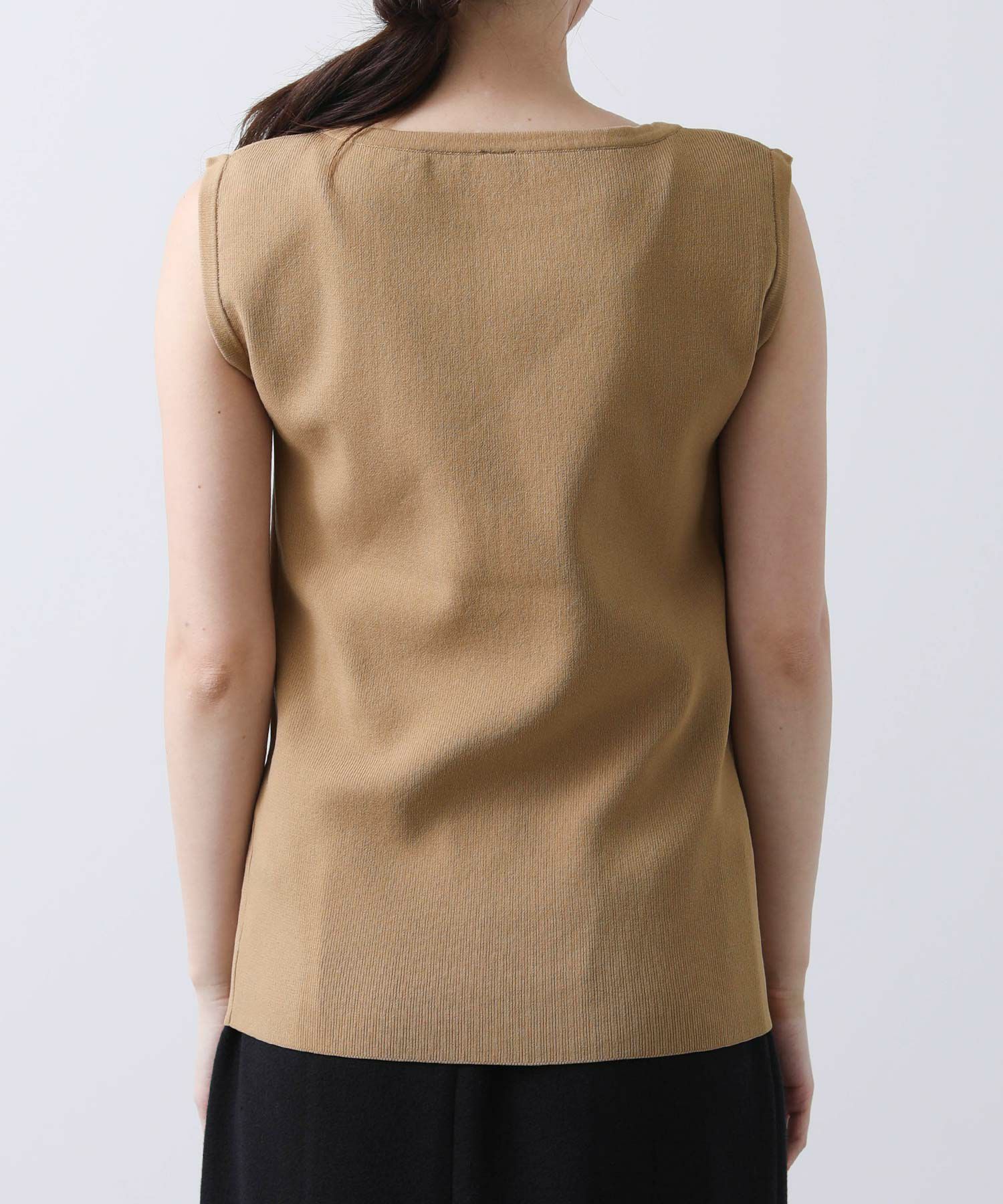 インナーのノースリーブはポリエステル素材のニットで編み立てており、程よい張り感があり、一枚着としてもキレイに決まります。