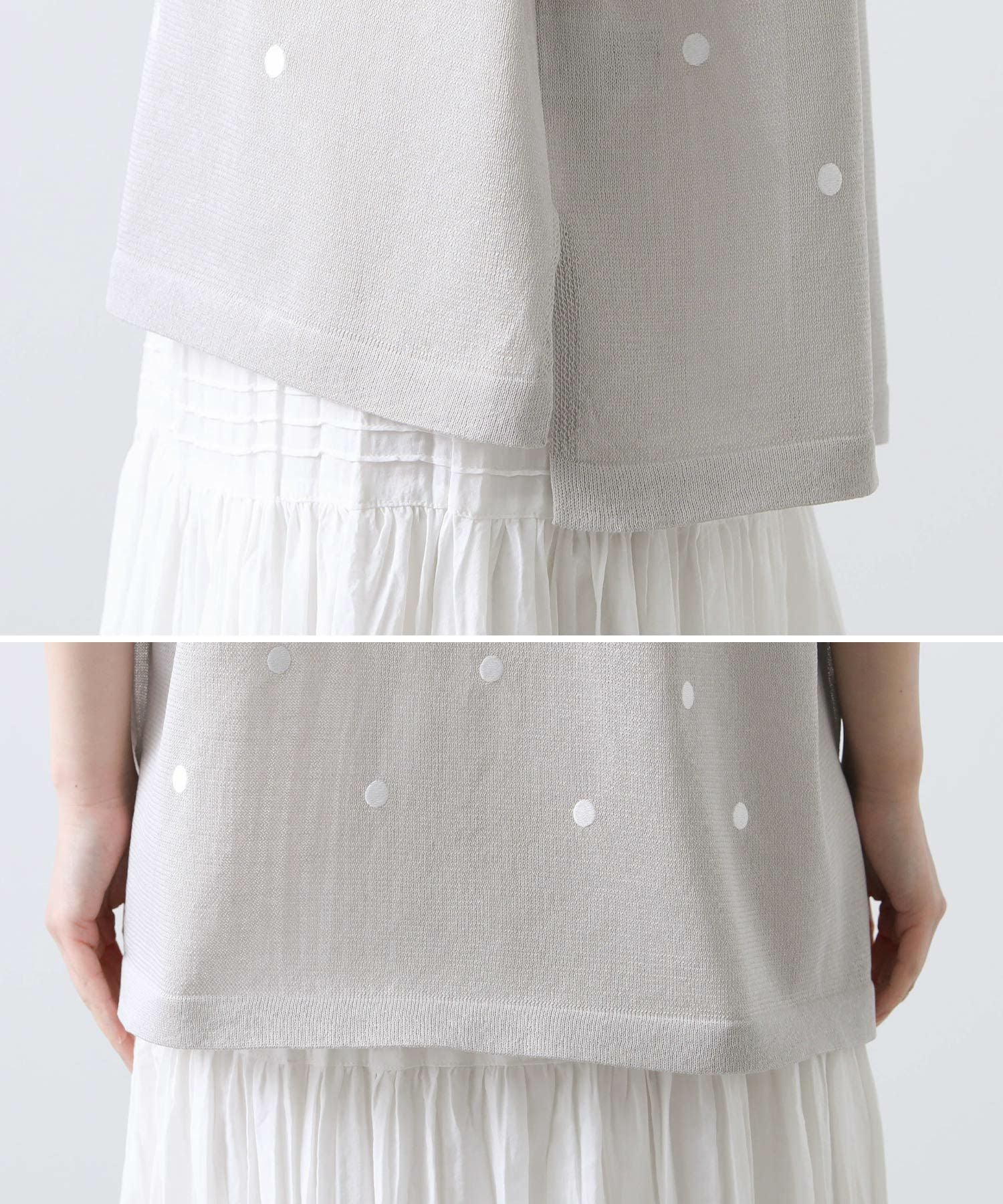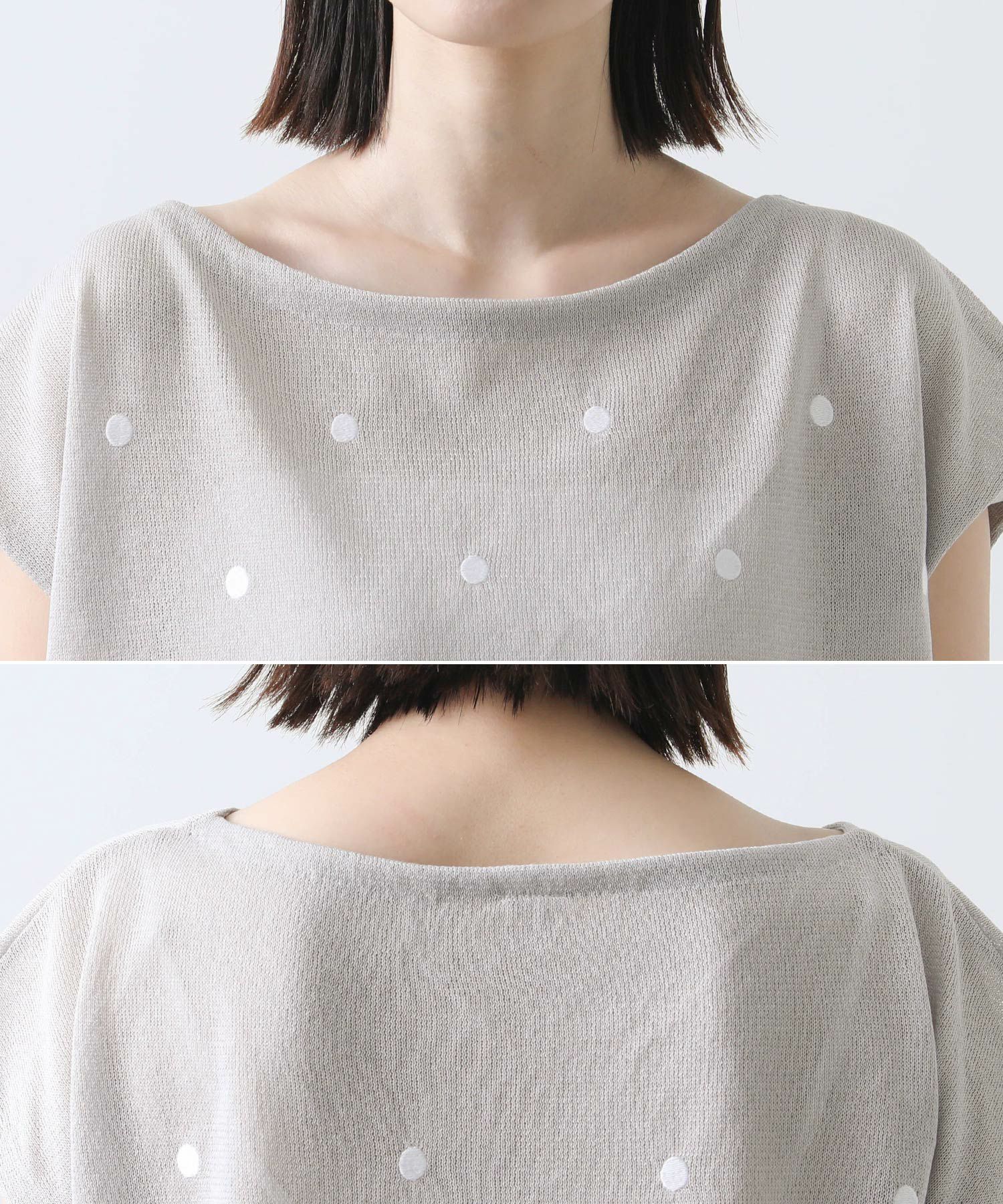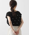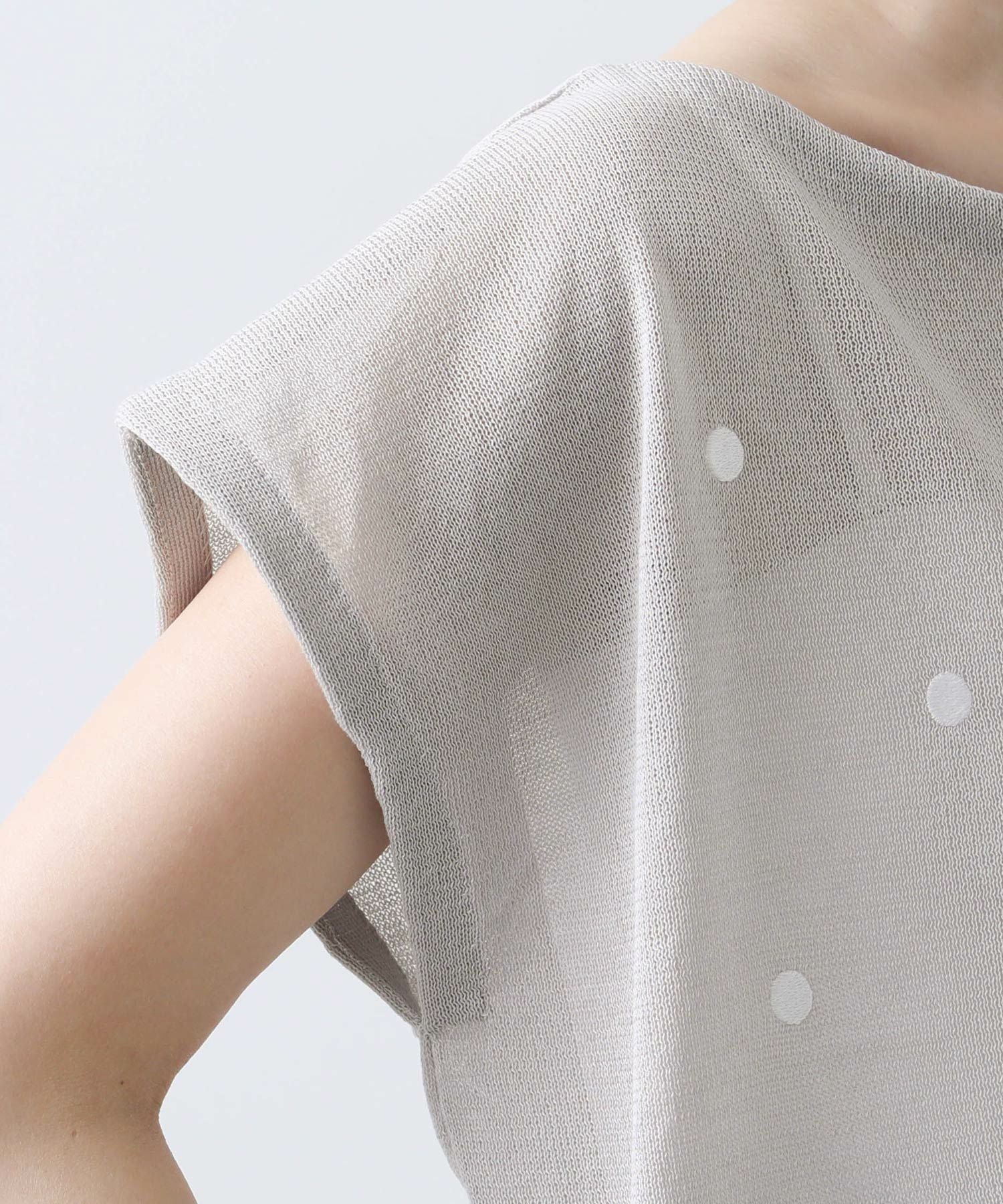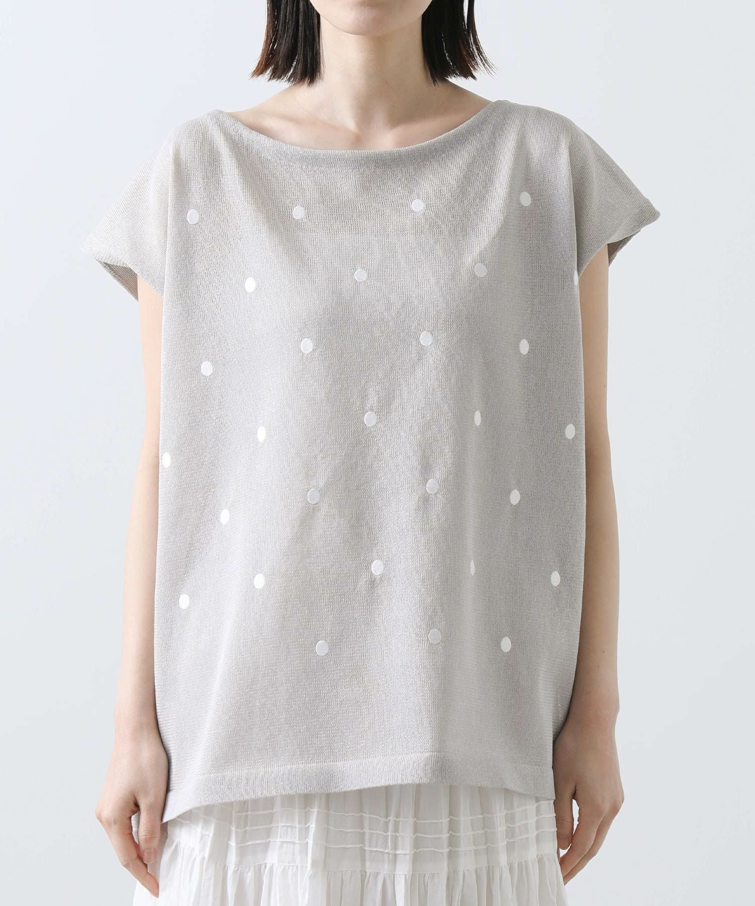 シアードット刺繍フレンチスリーブニット