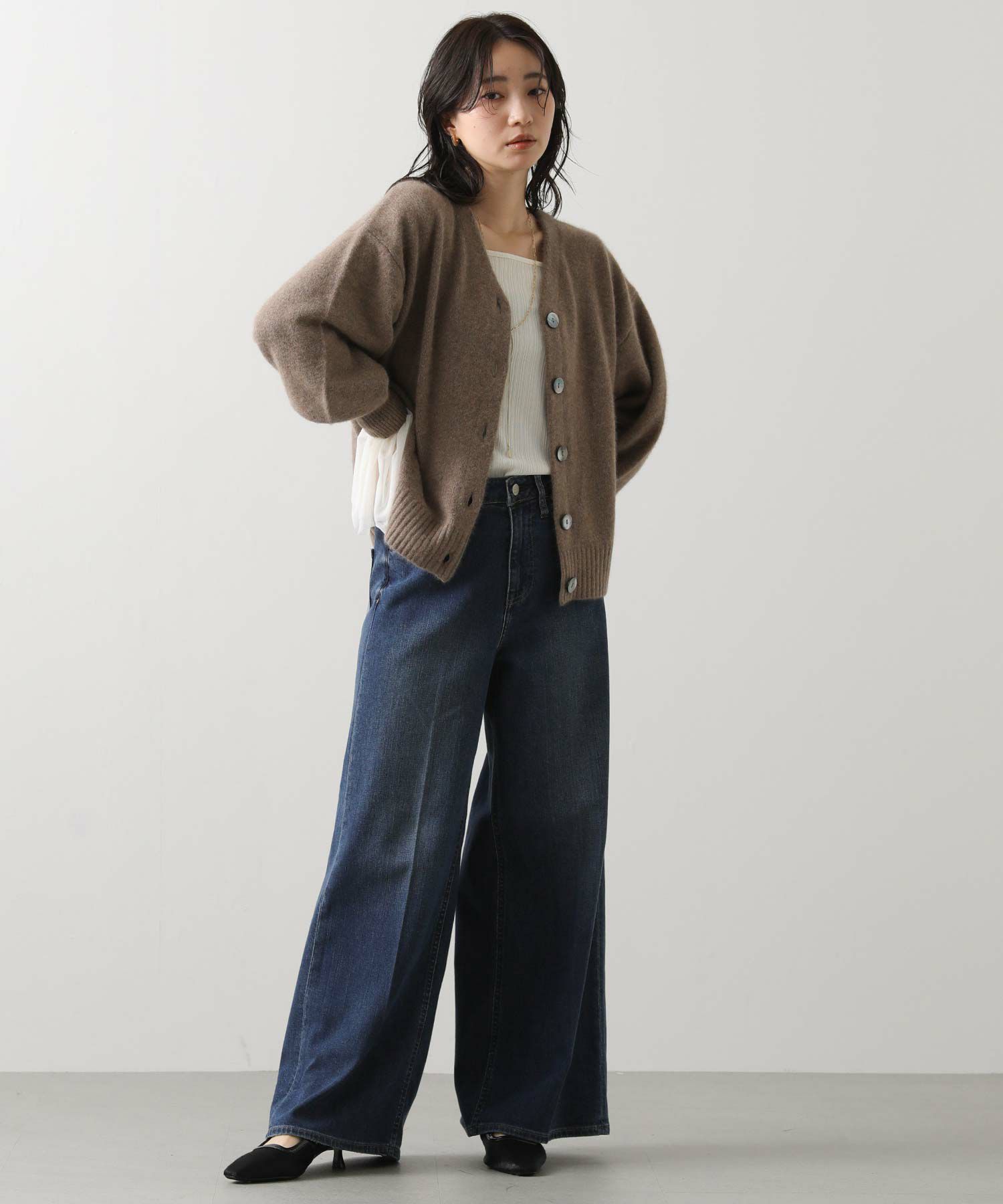 ※着用画像は撮影状況、光の当たり具合で色みが違って見える場合がございます。実際の色みについては、画像一覧の最後に掲載している詳細画像をご参照ください。
