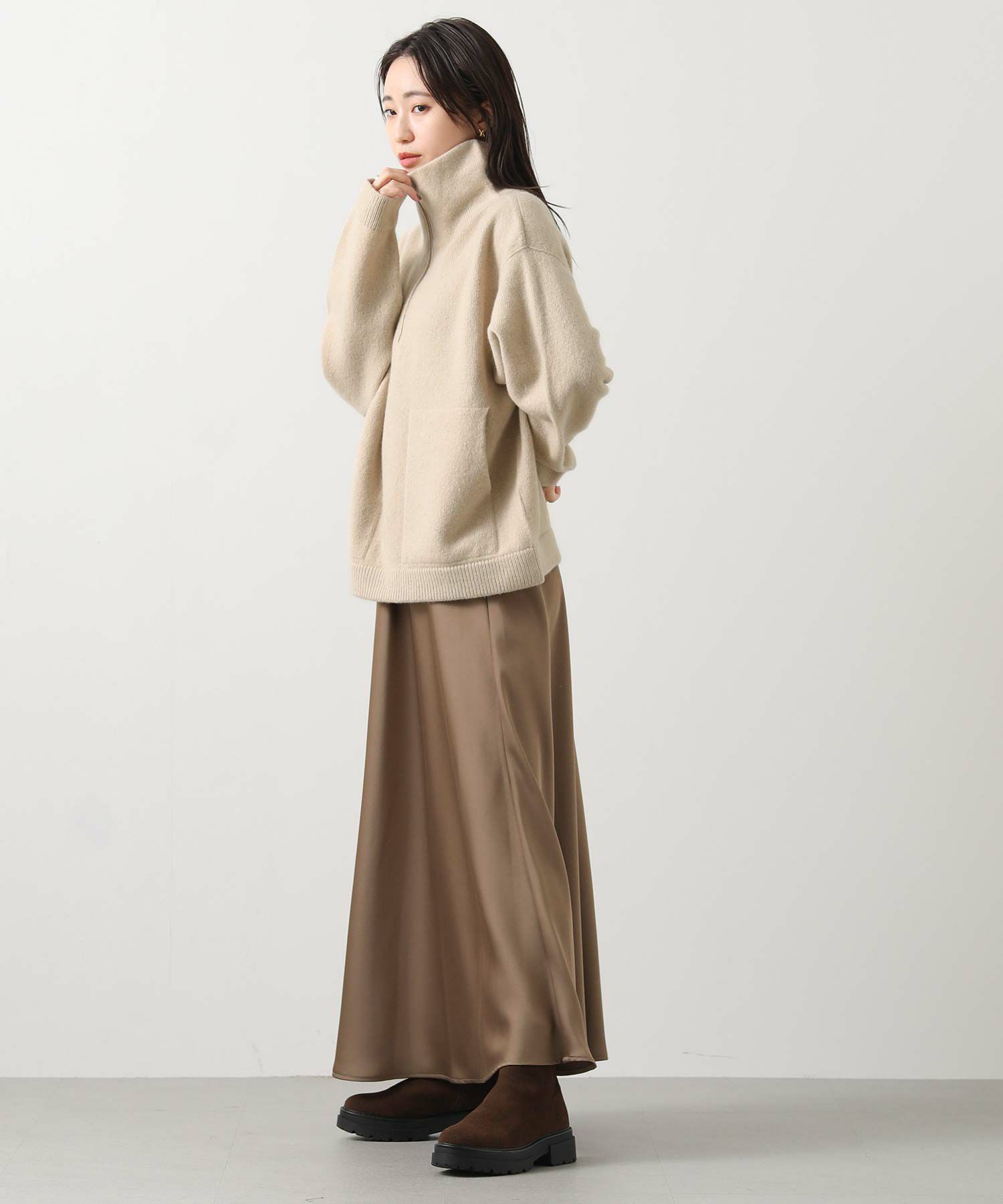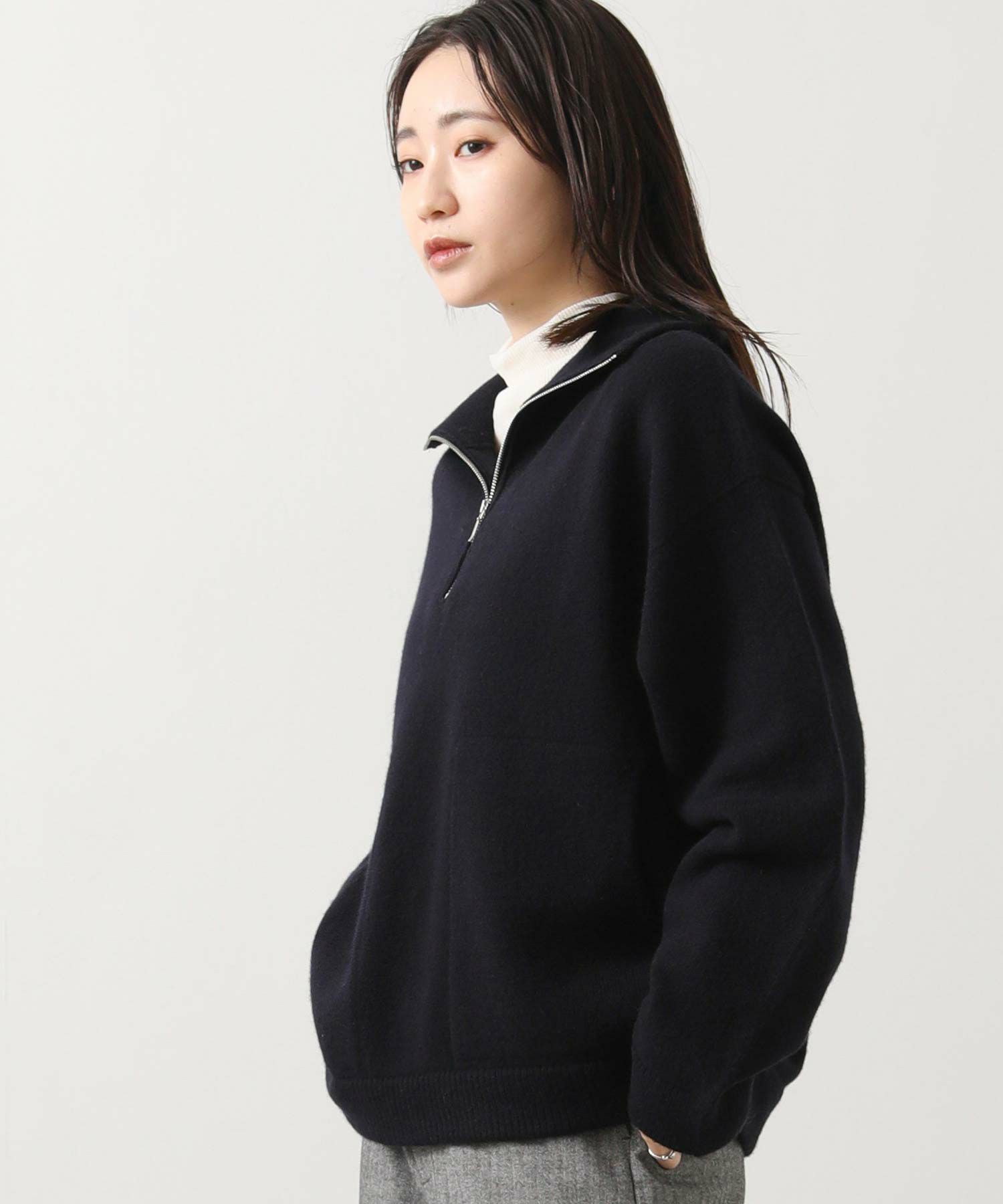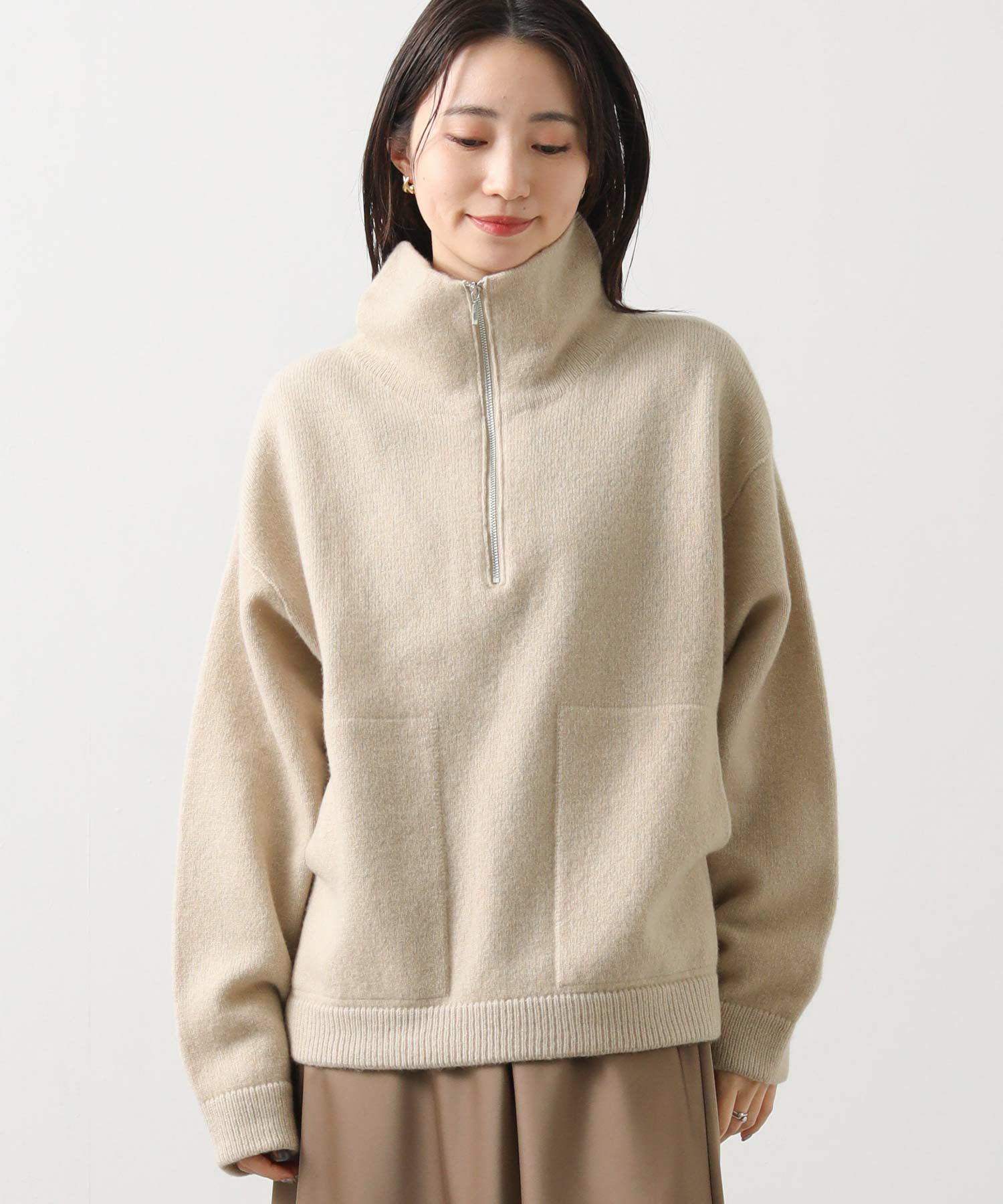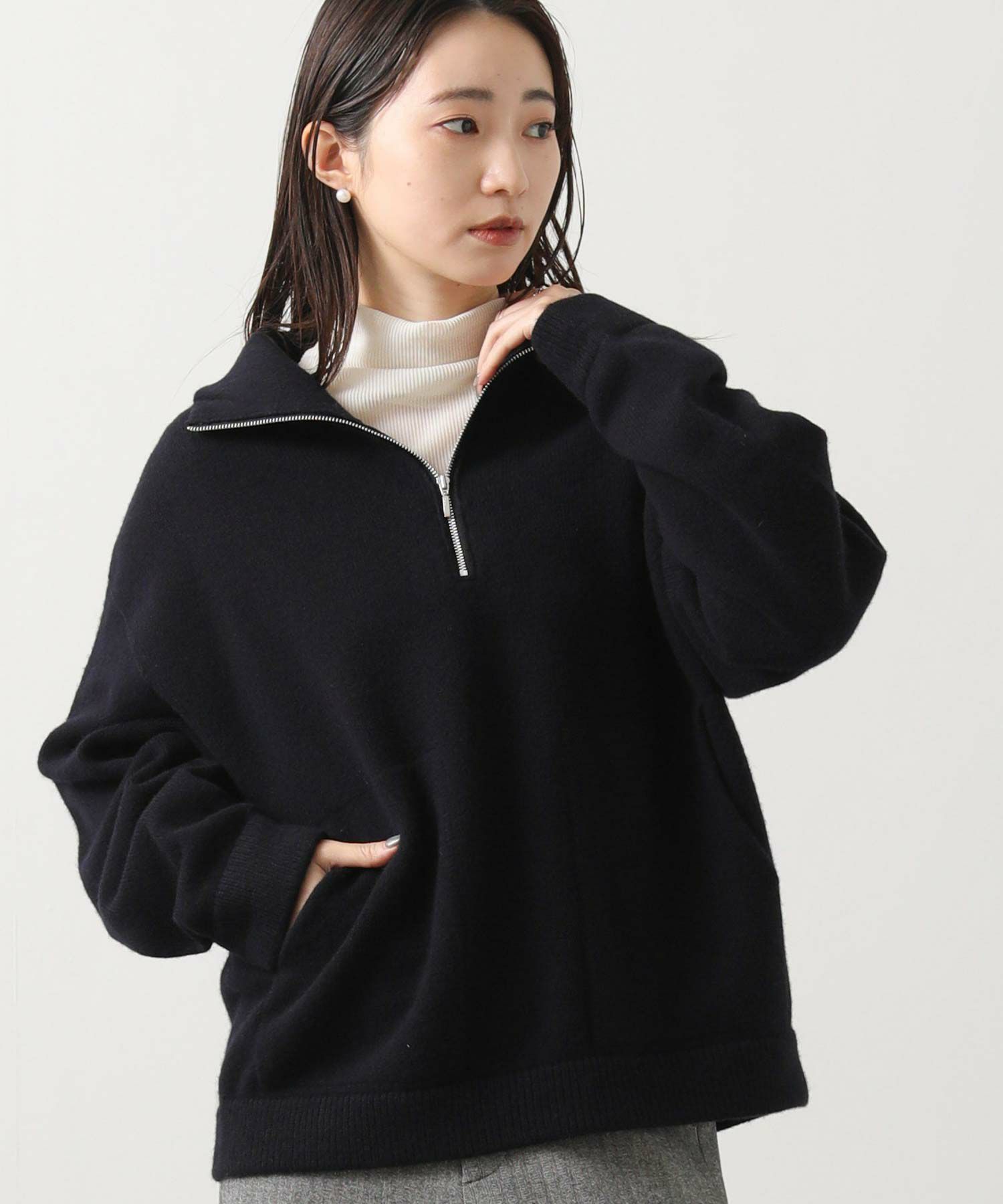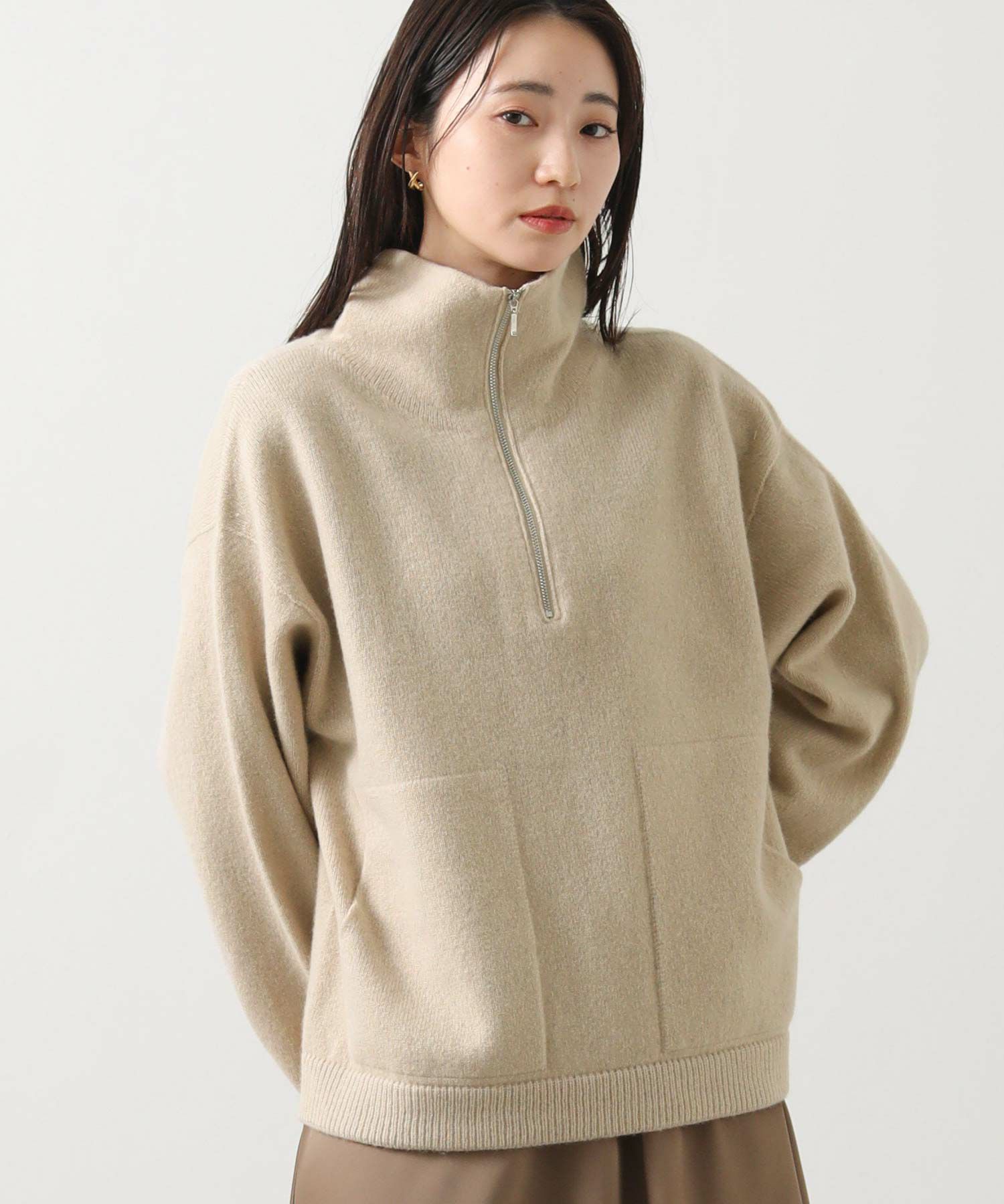 衿もとがアクセントになる旬なハーフジップデザインは、顔周りをすっきり華やかに魅せてくれます。