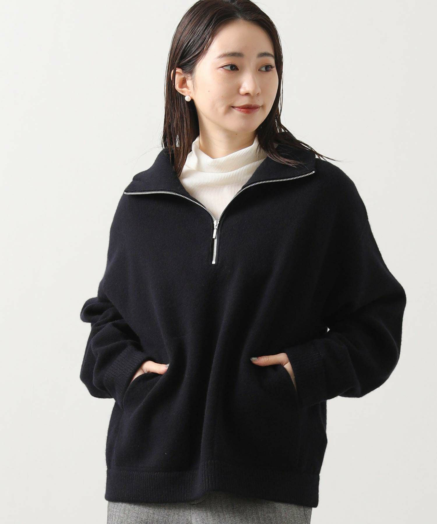 衿もとがアクセントになる旬なハーフジップデザインは、顔周りをすっきり華やかに魅せてくれます。