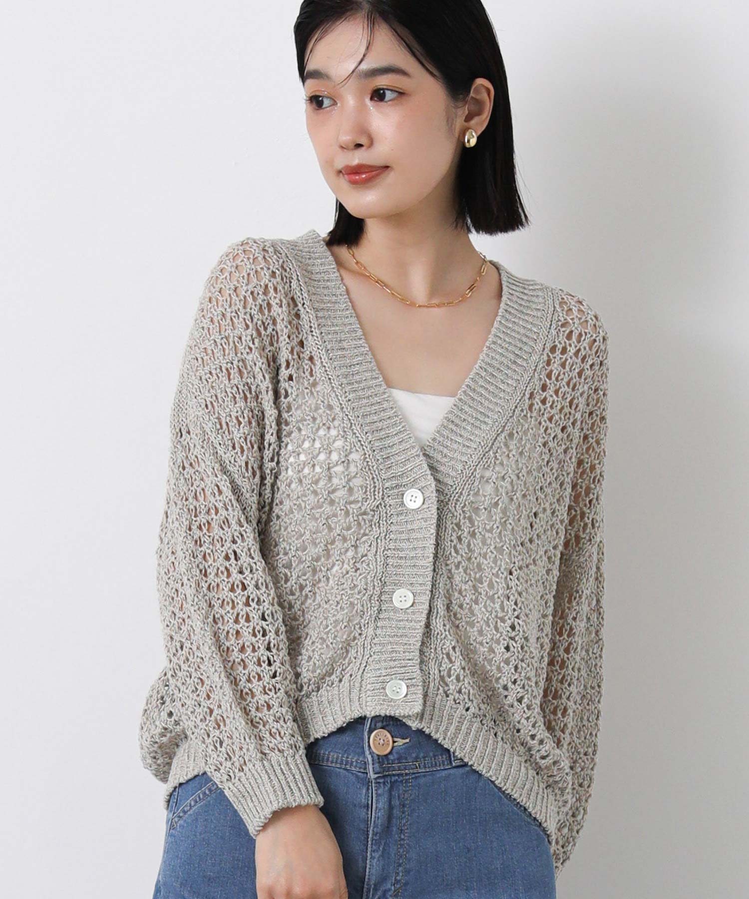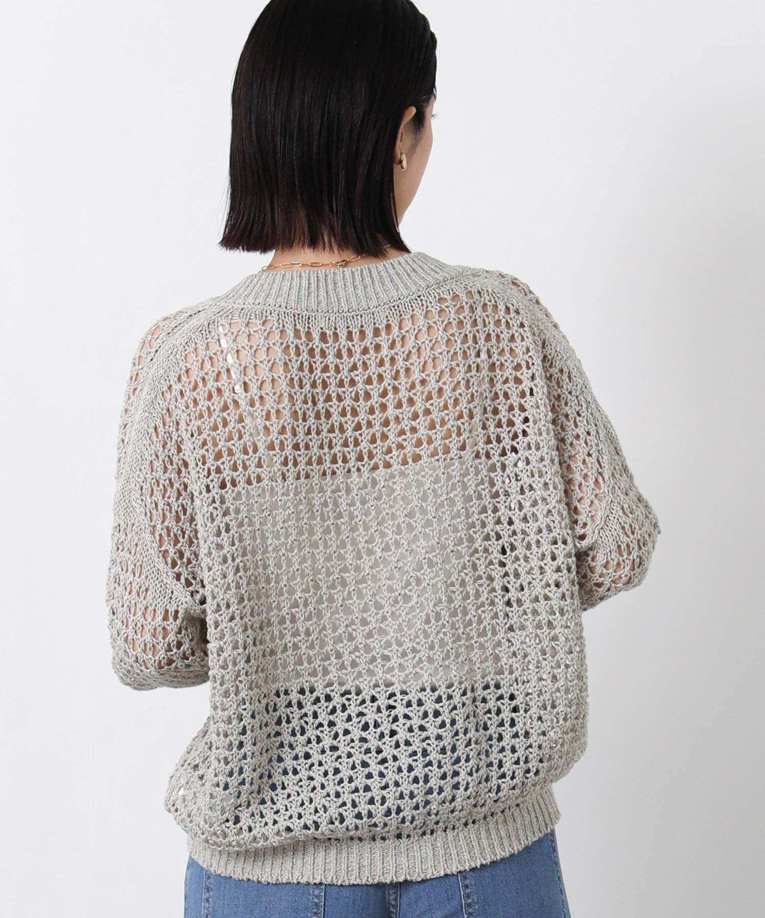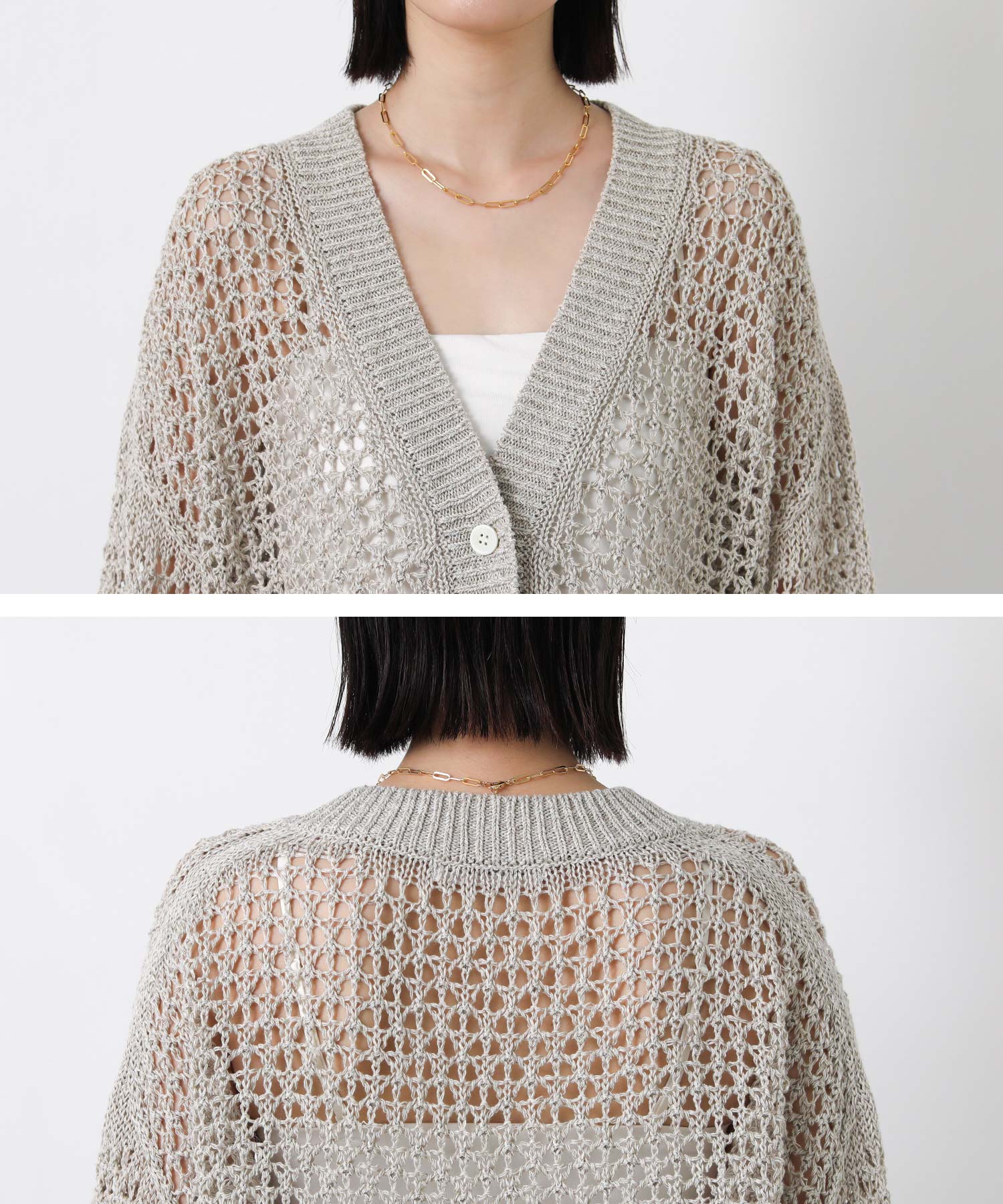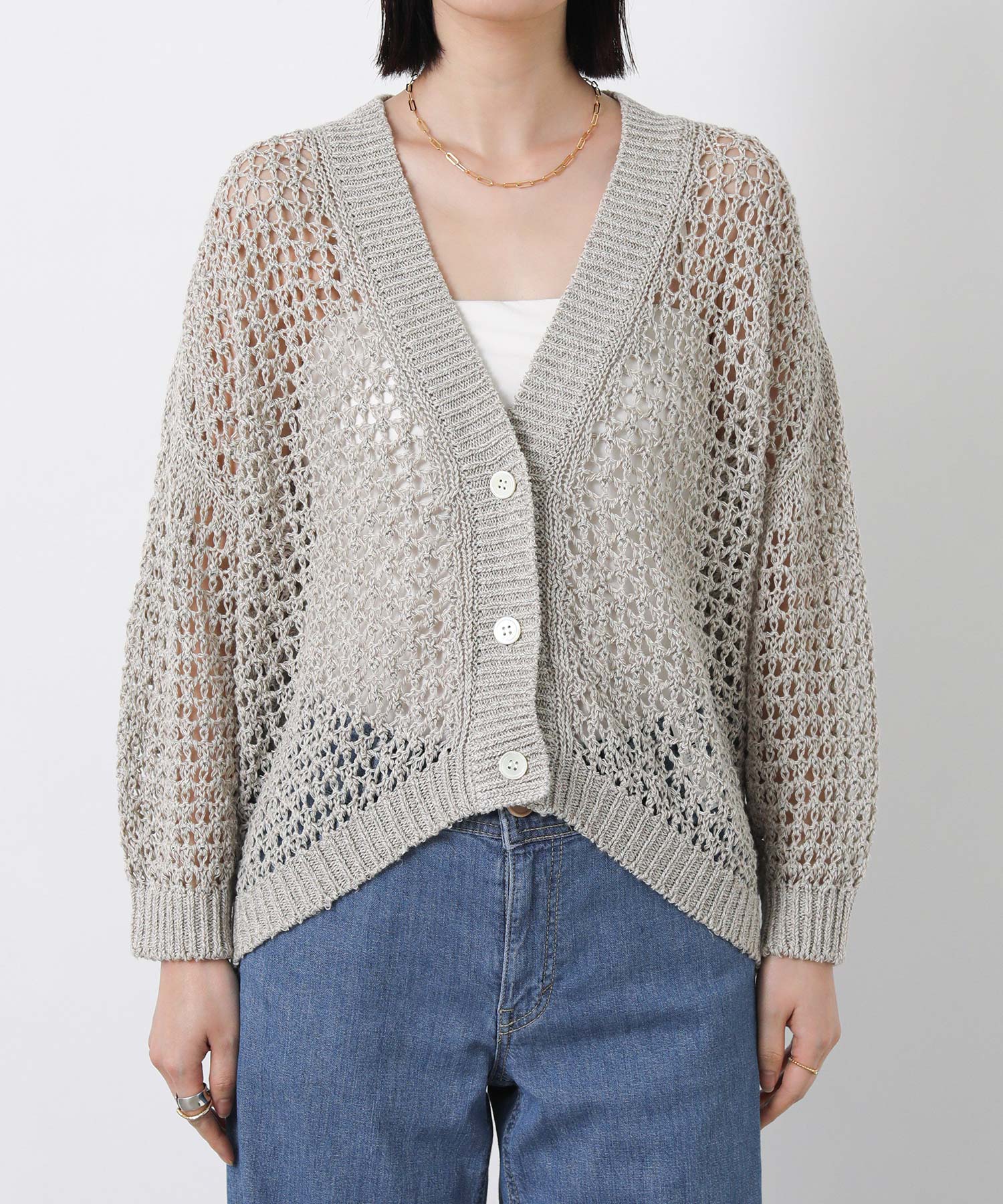 ホールガーメントメッシュVネックカーディガン