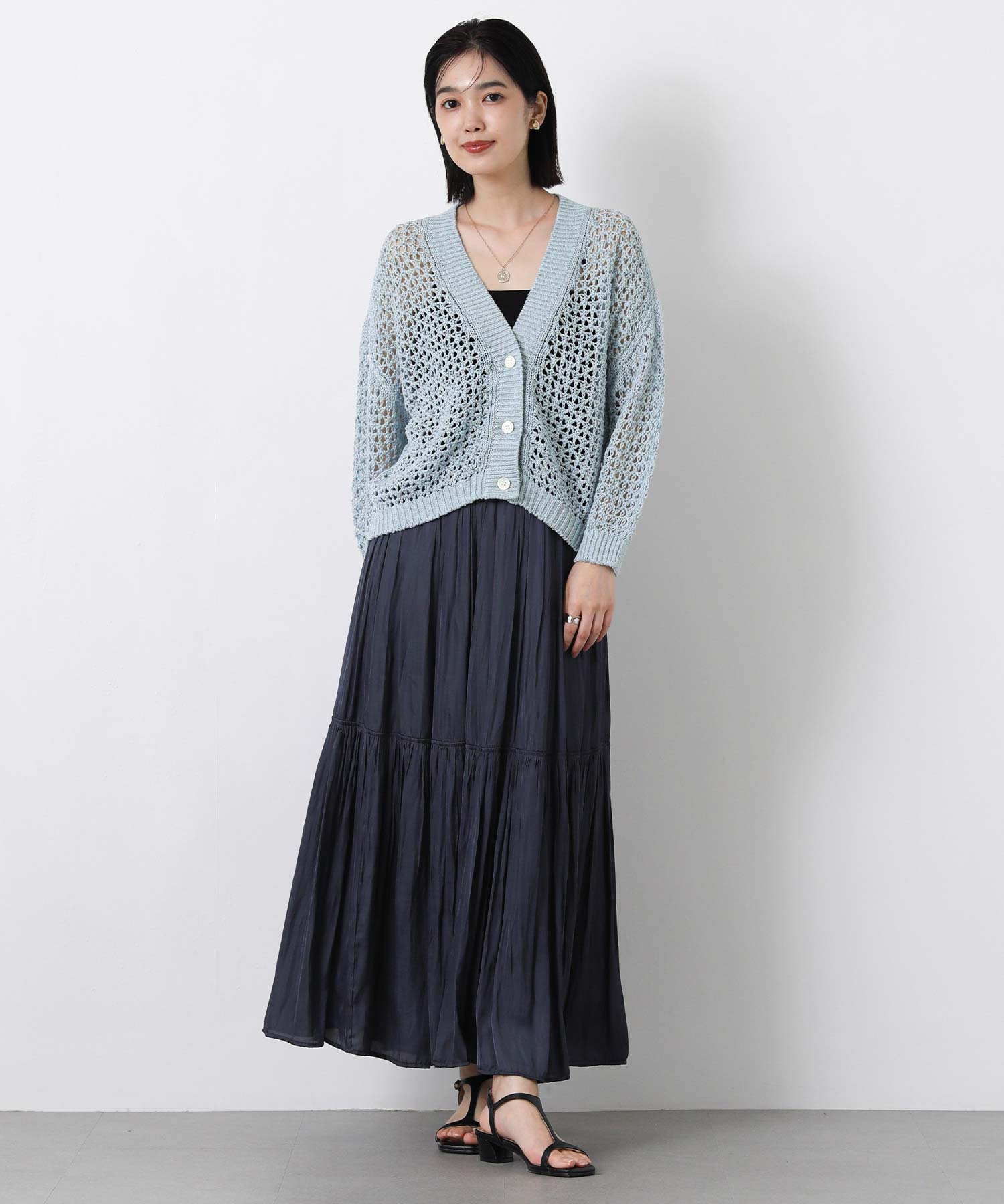カットソーやタンクトップに合わせて襟を抜いて着たり、肩にかけるのもオススメ。