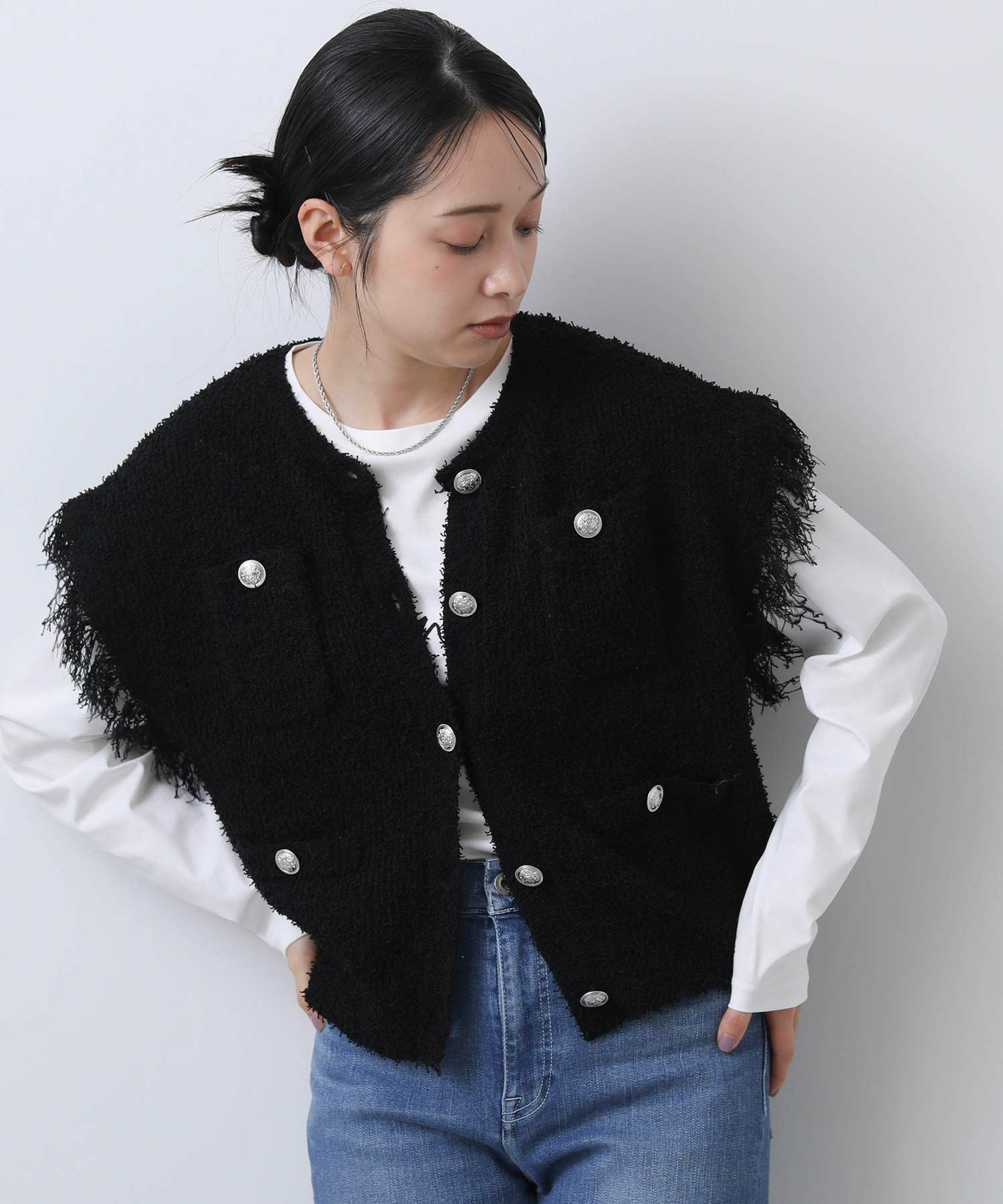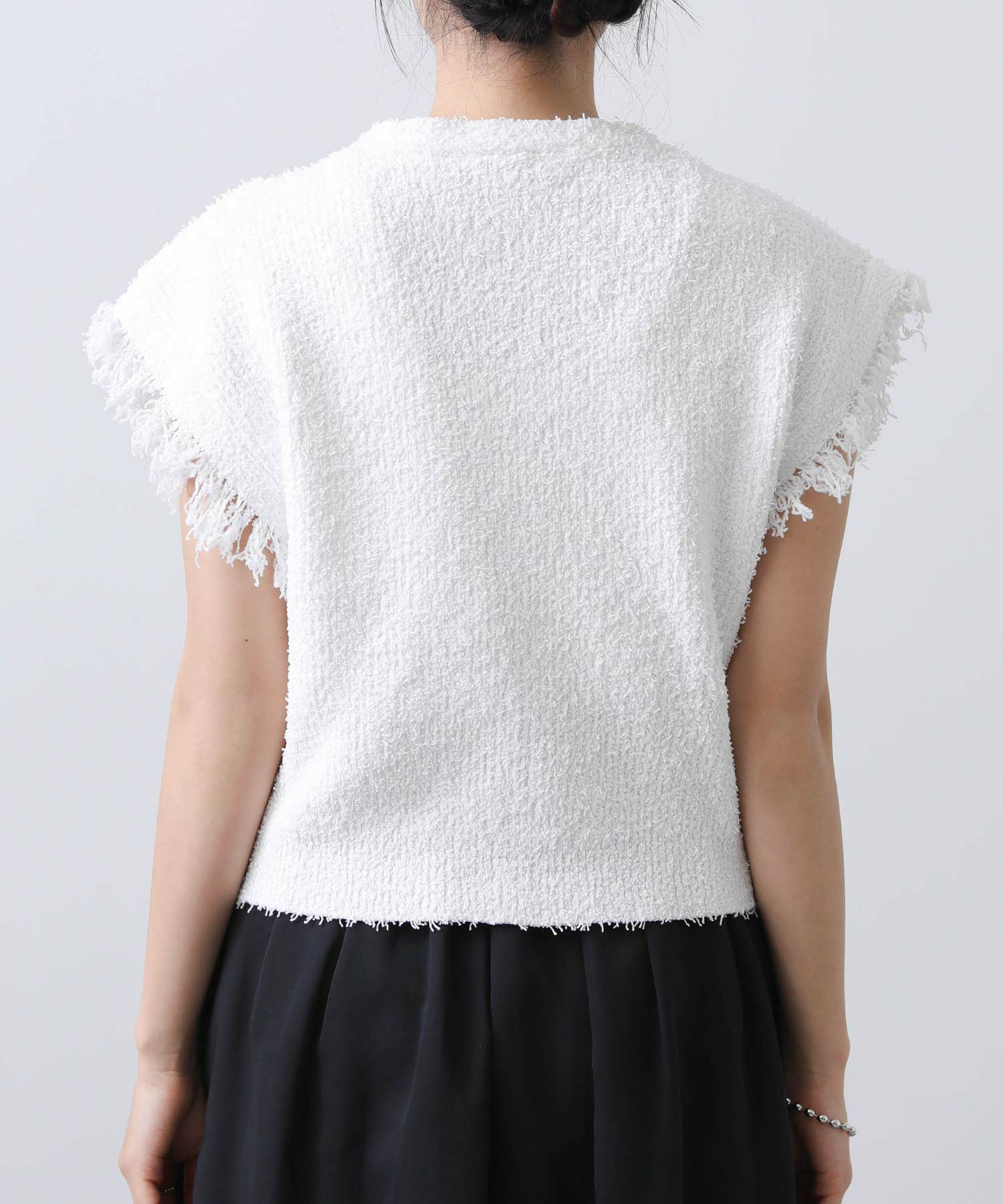 【TorrazzoDonna/トラッツォドンナ】から、夏素材のファンシーヤーンを使用したニットベストを別注。
