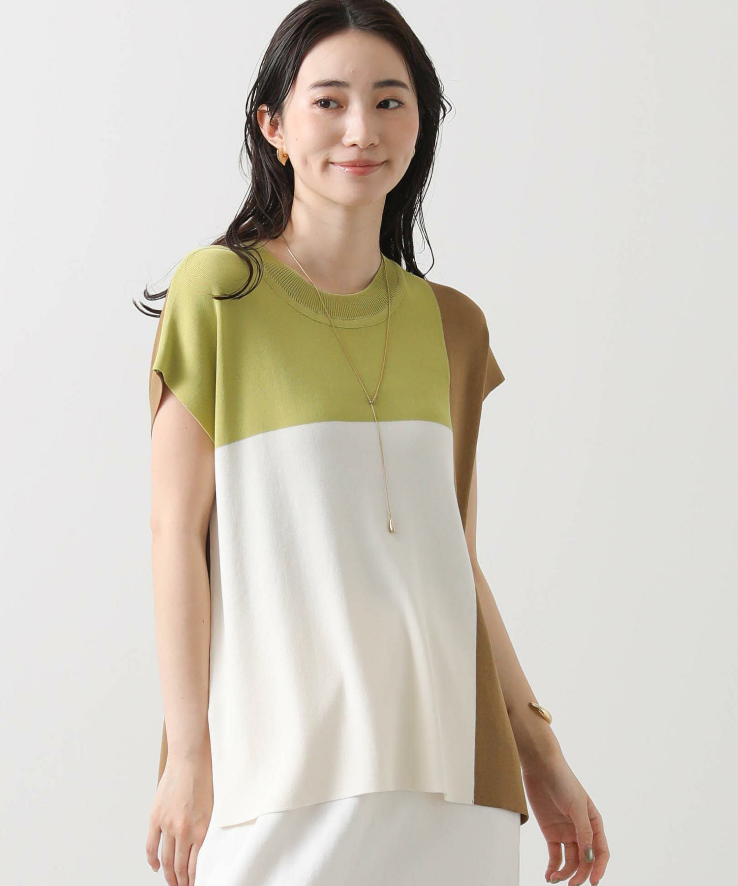 カラー配色が目を惹くサマーニットトップス。
