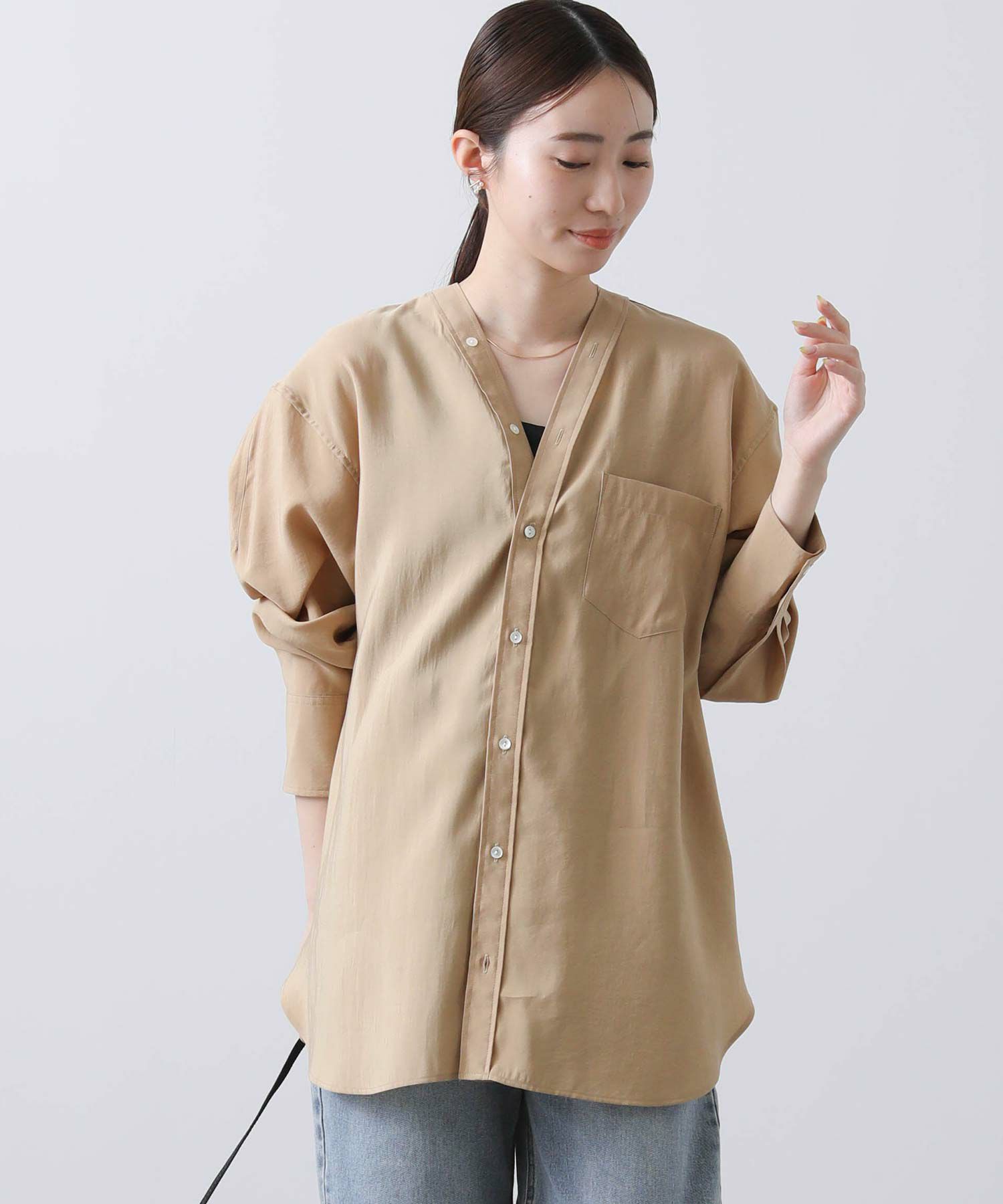 適度に開いたVネックが抜け感あるデザインのブラウス。