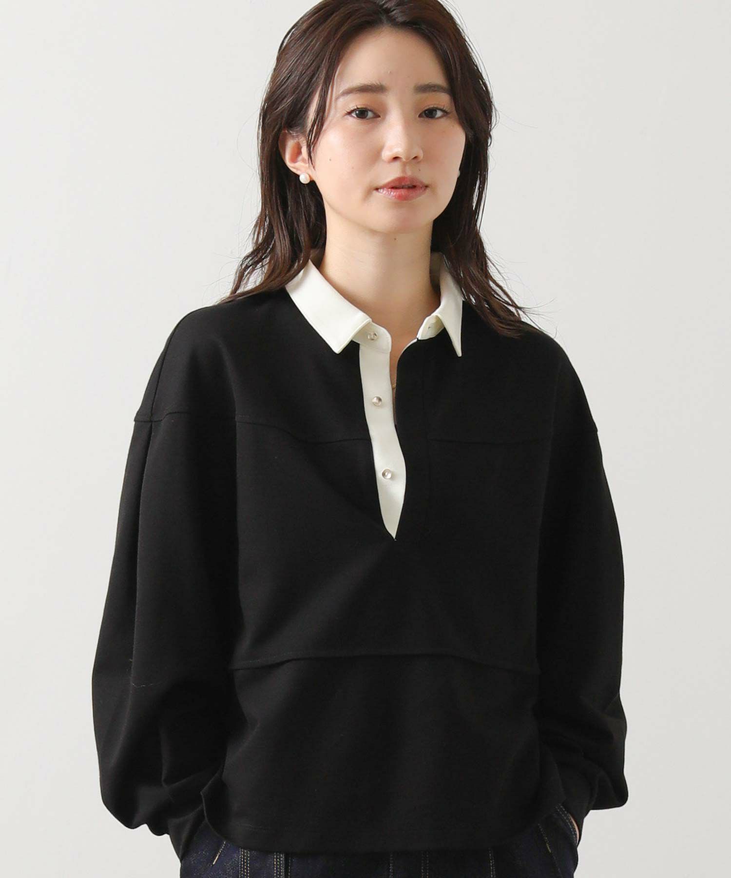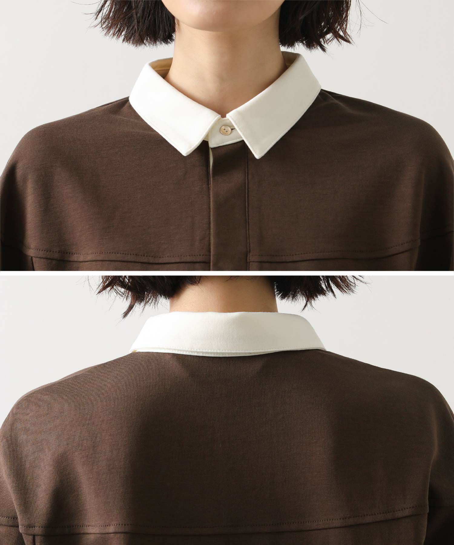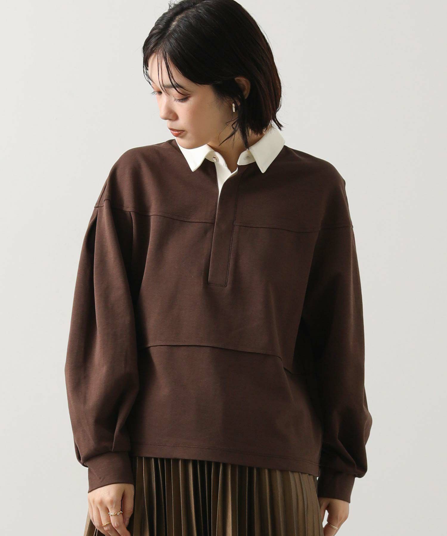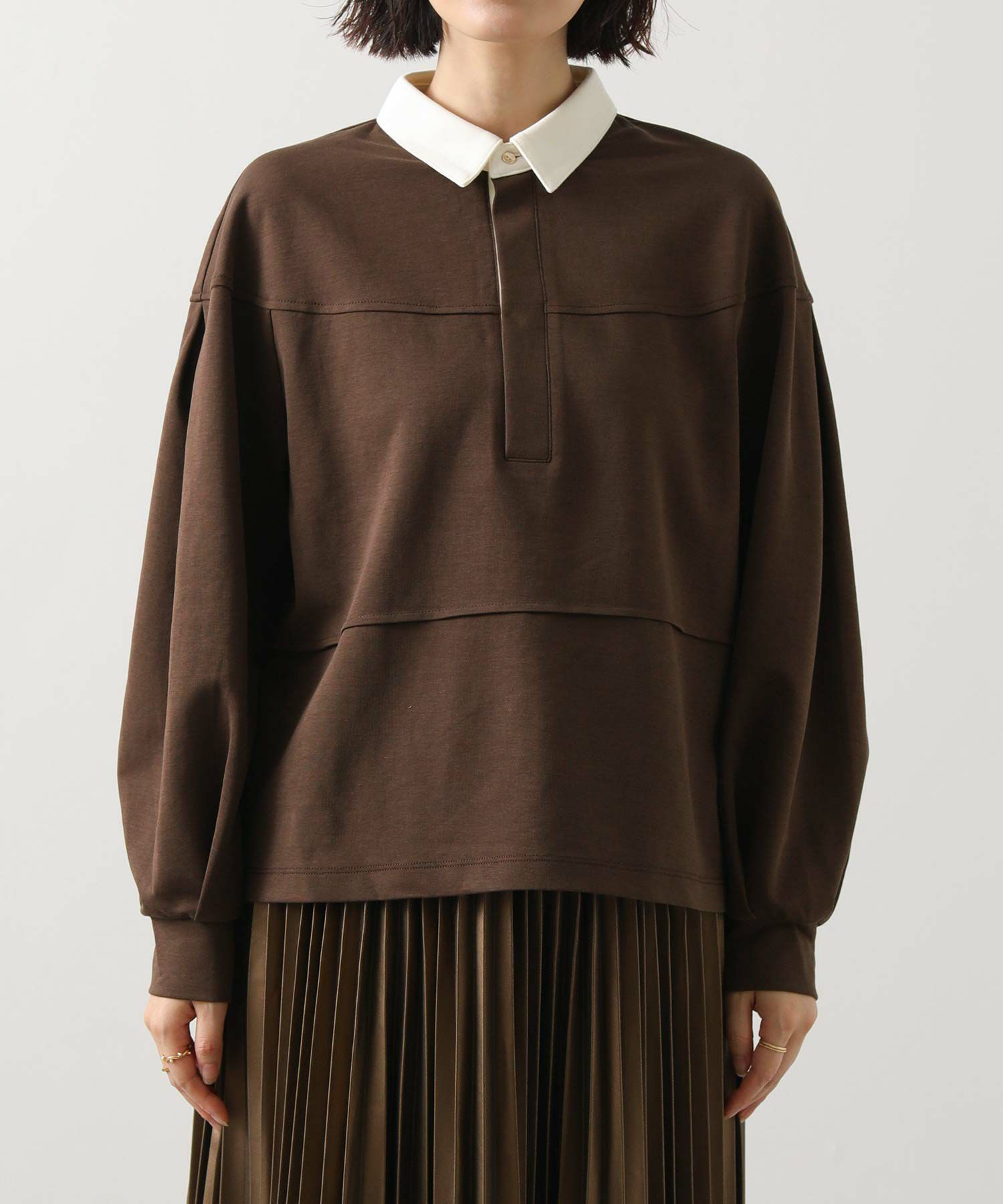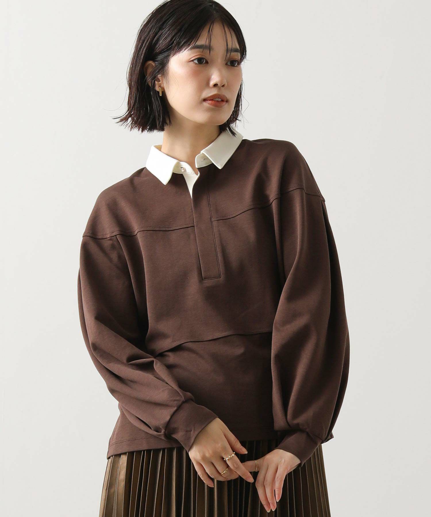コーデに抜け感をプラスしてくれるポロ襟デザインの大人なトップス。