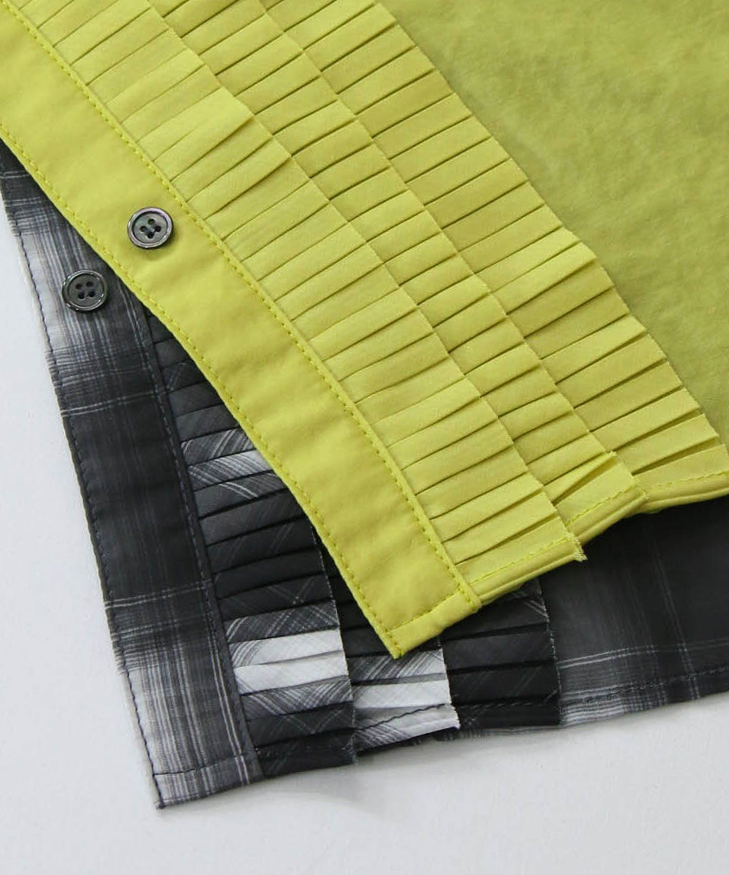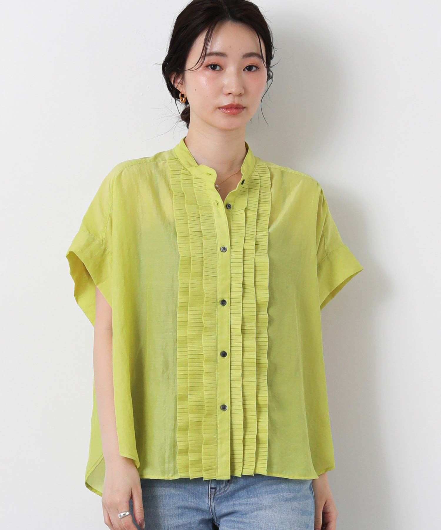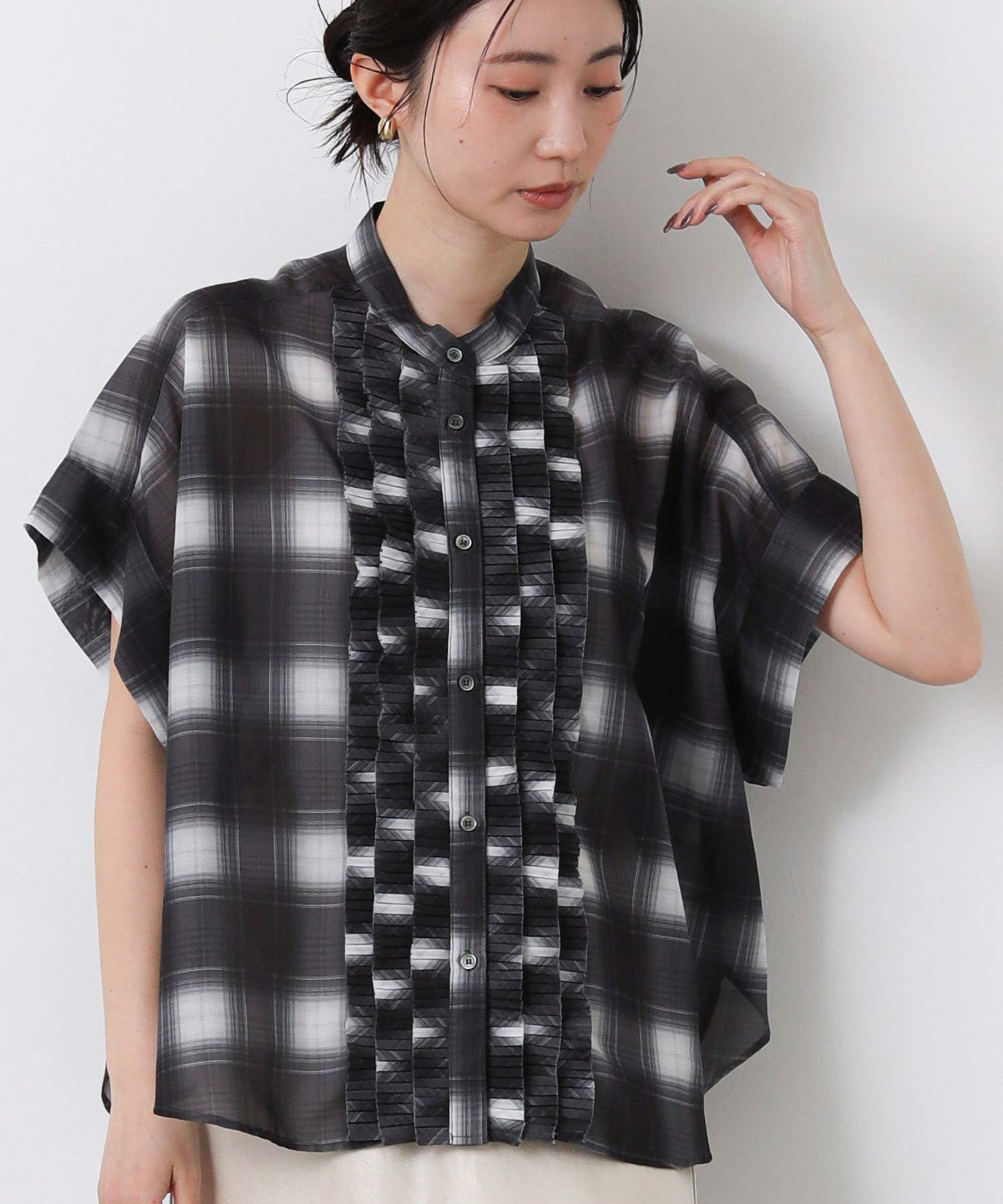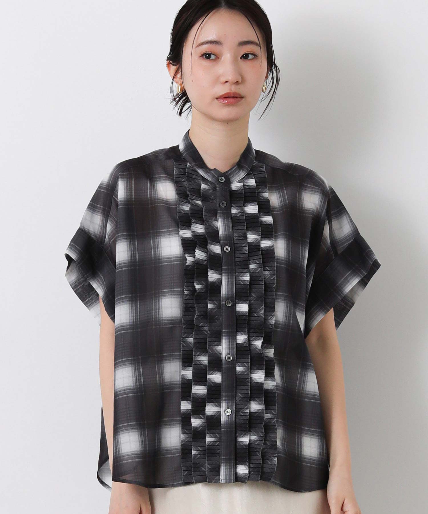 フロントのプリーツフリルが繊細で華やかな印象に。