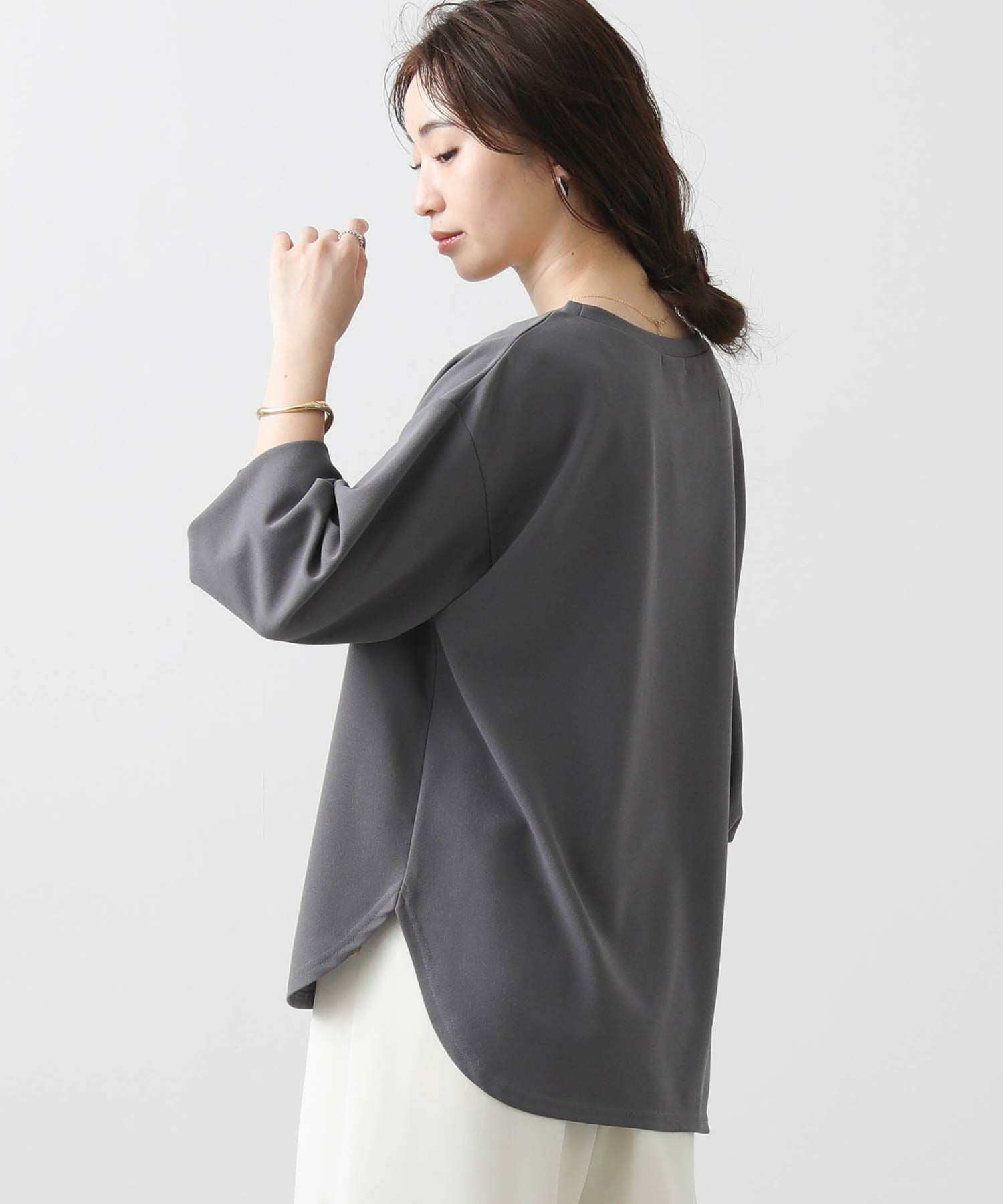 布帛見えするカットジョーゼット生地を使用した、きちんと見えも叶うプルオーバー。