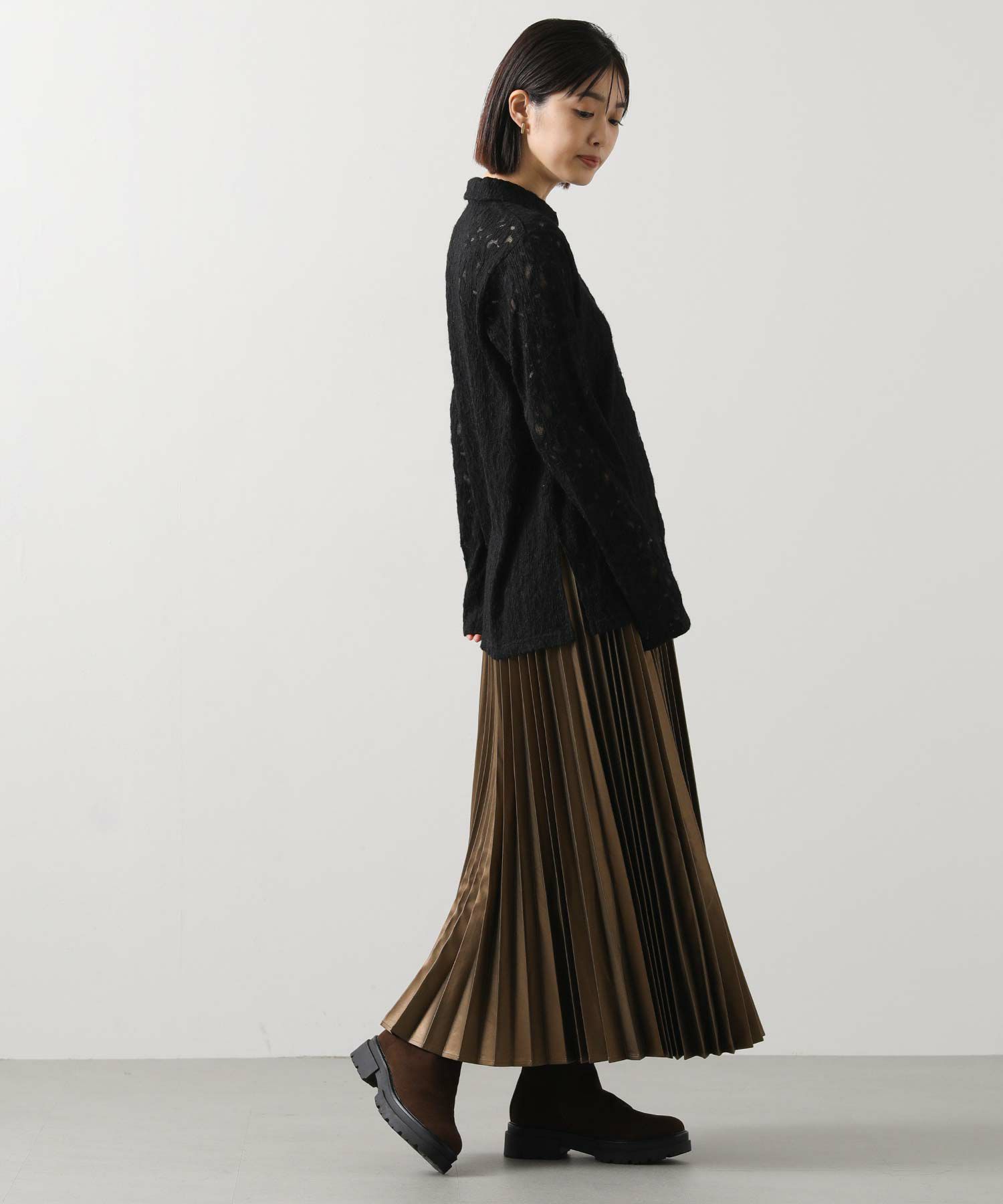 パンツと合わせてすっきりとしたきれいめコーデに、スカートと合わせてフェミニンな印象に。