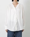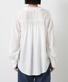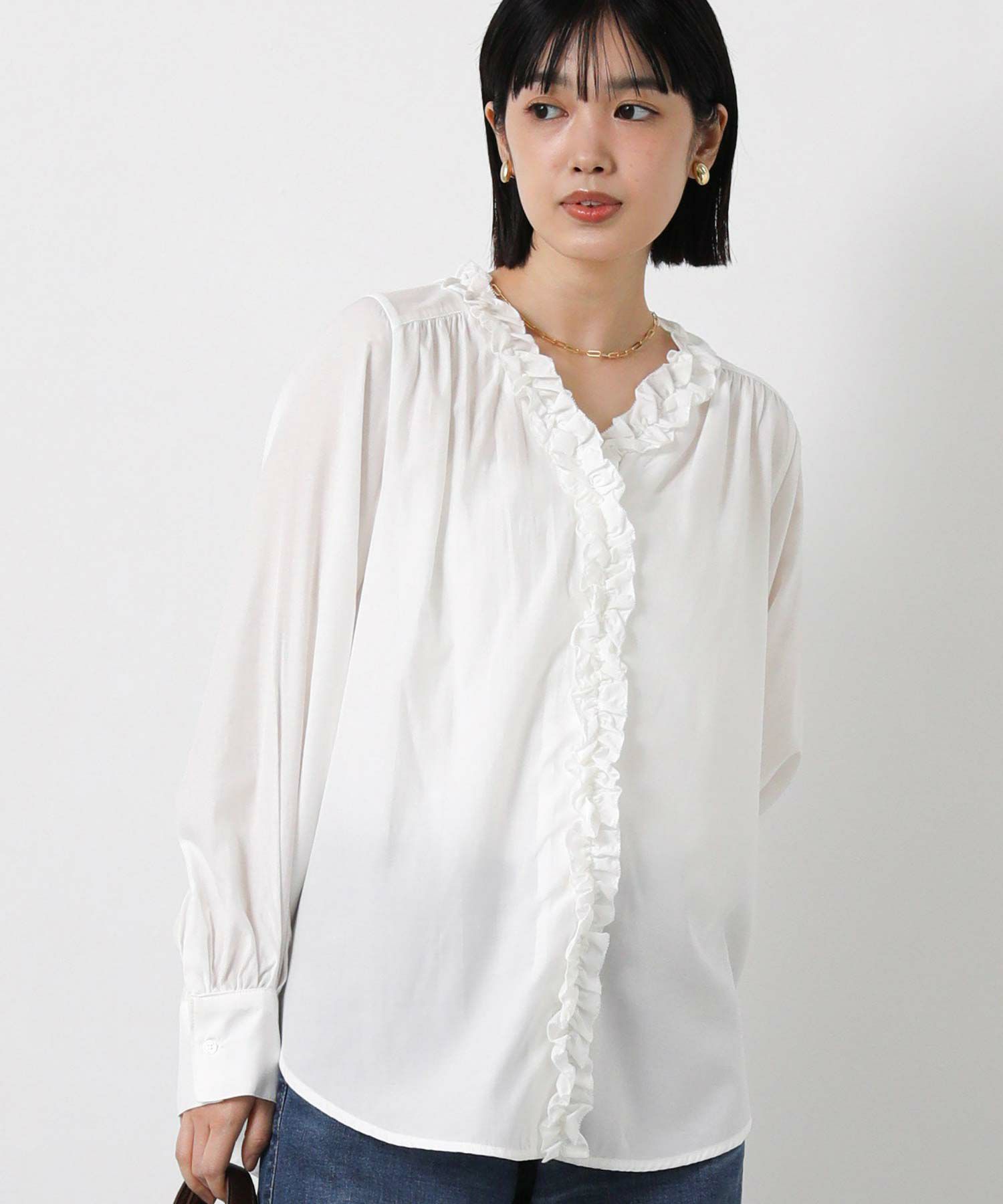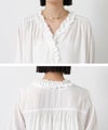 ネックラインからフロントに流れる贅沢なフリルが、顔周りを華やかに彩る長袖ブラウス。