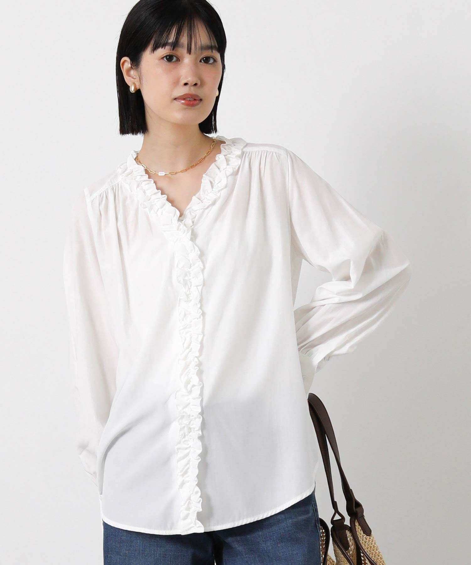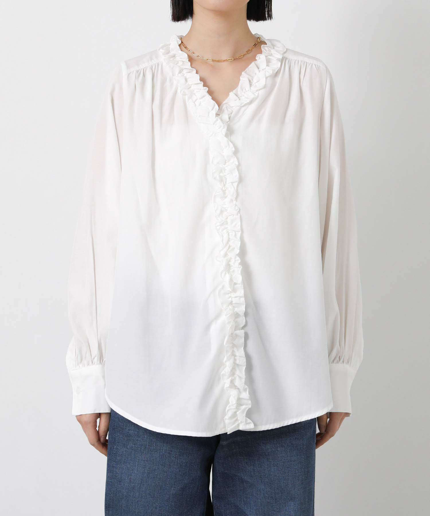TRローンフリルVネックブラウス