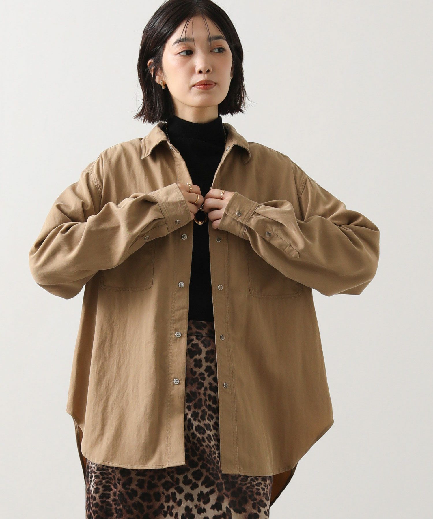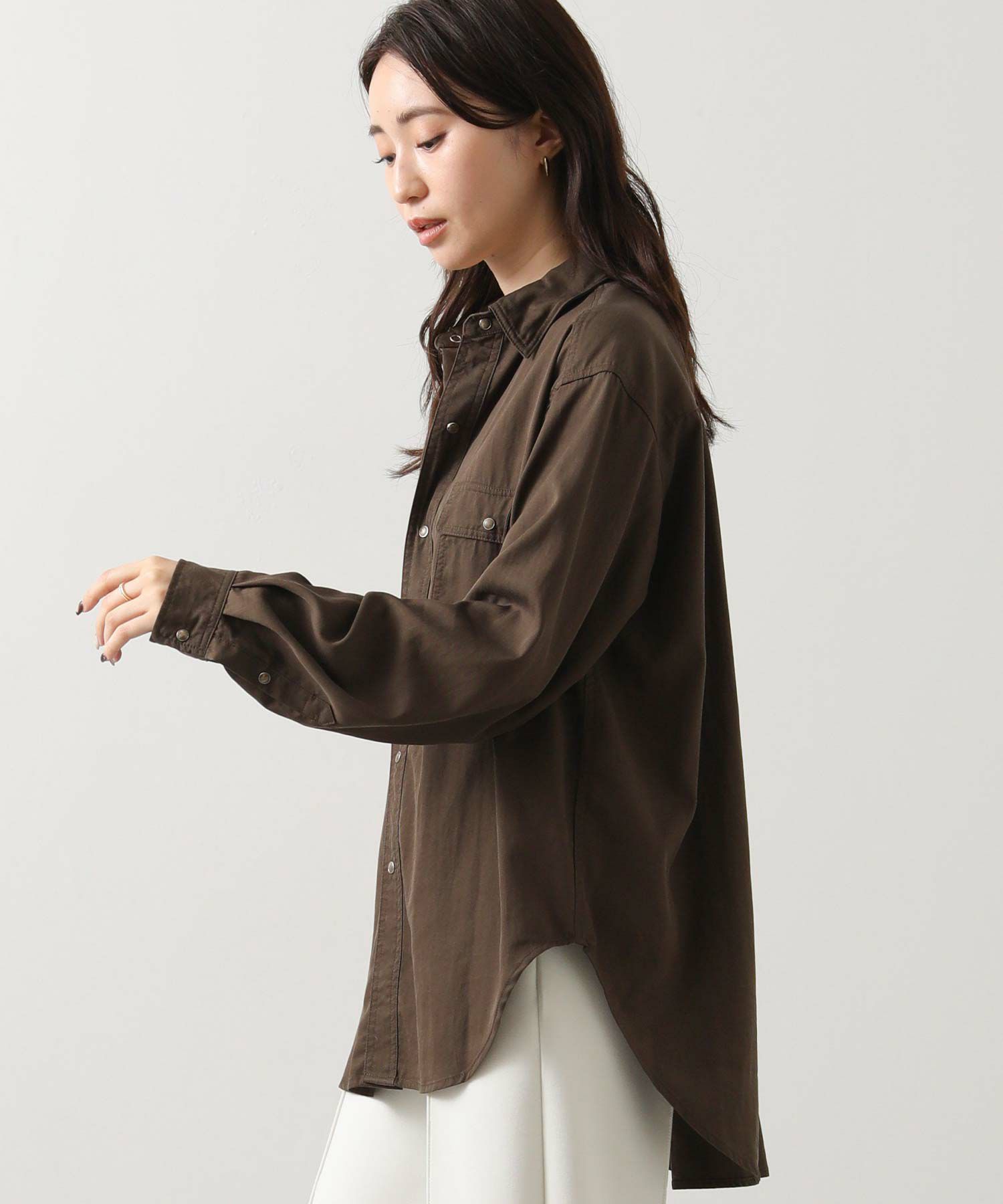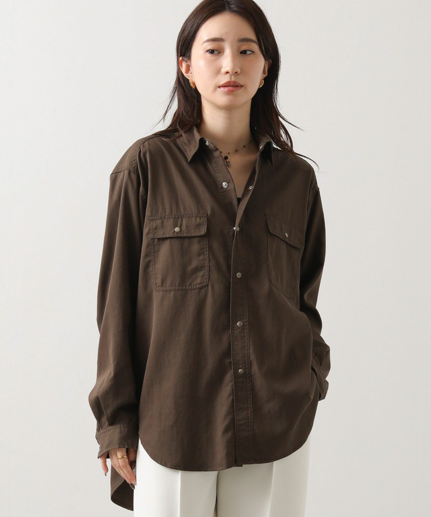 ヒップまで隠れる着丈で、主役にも脇役にもなれる万能シャツです。
