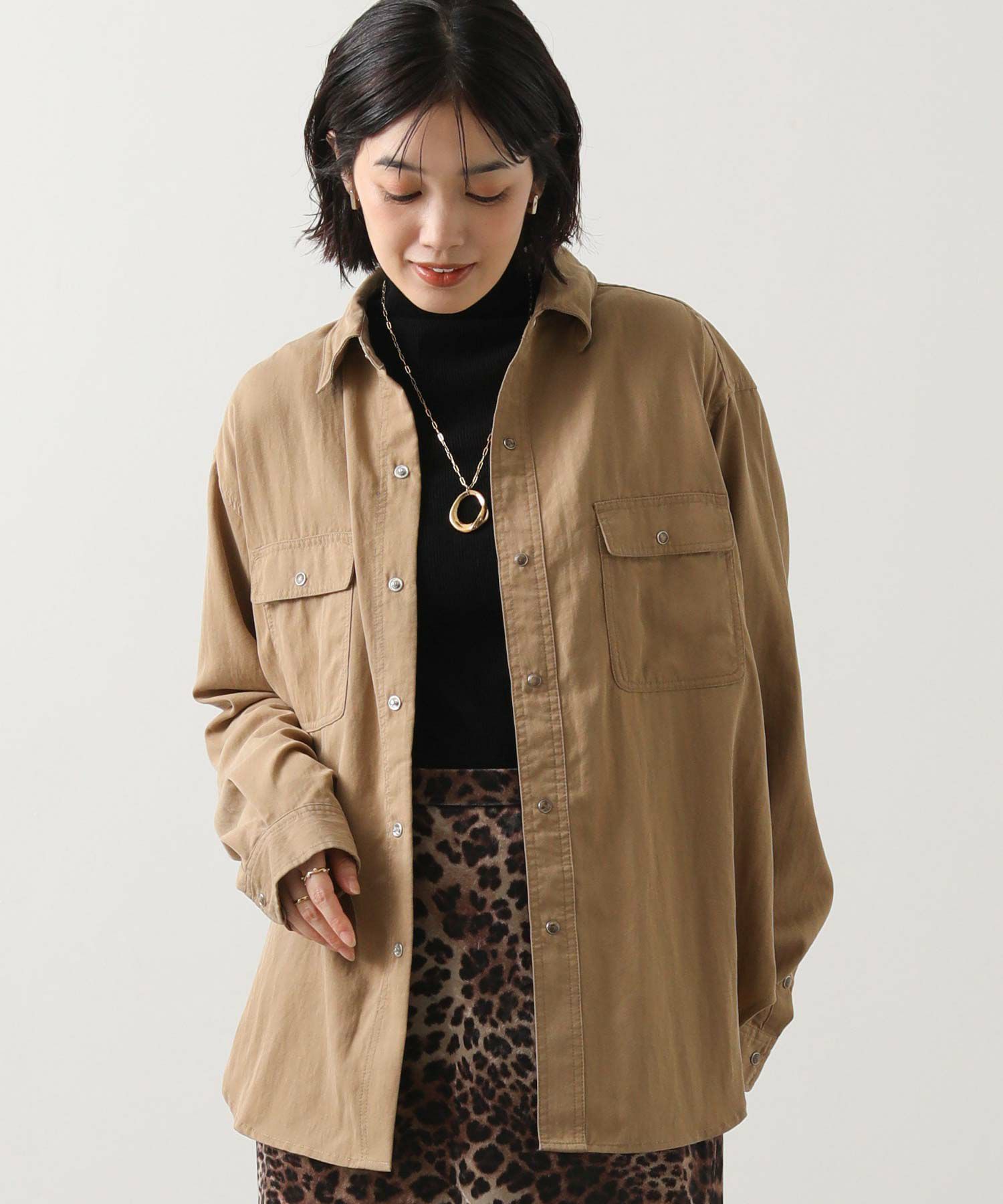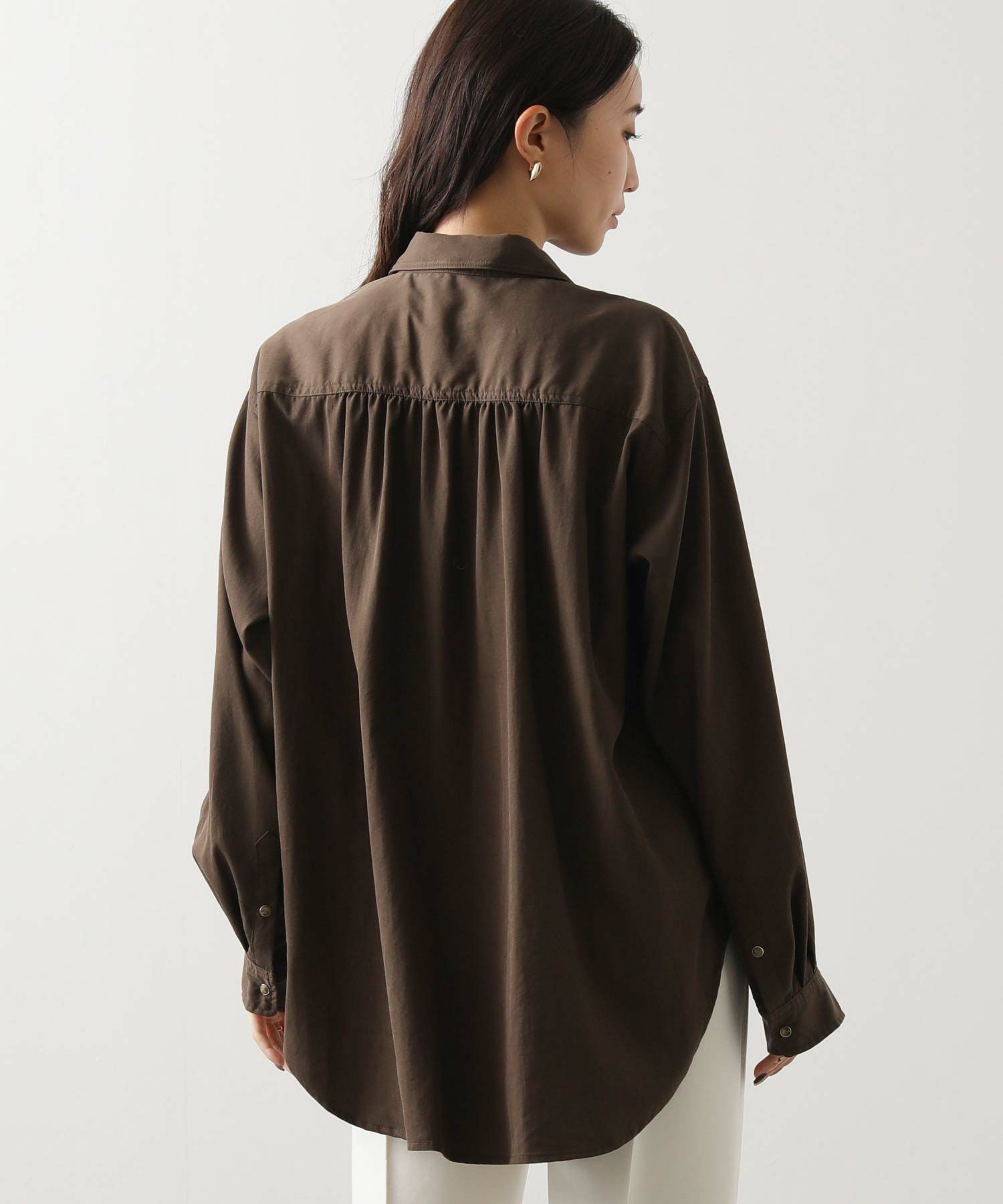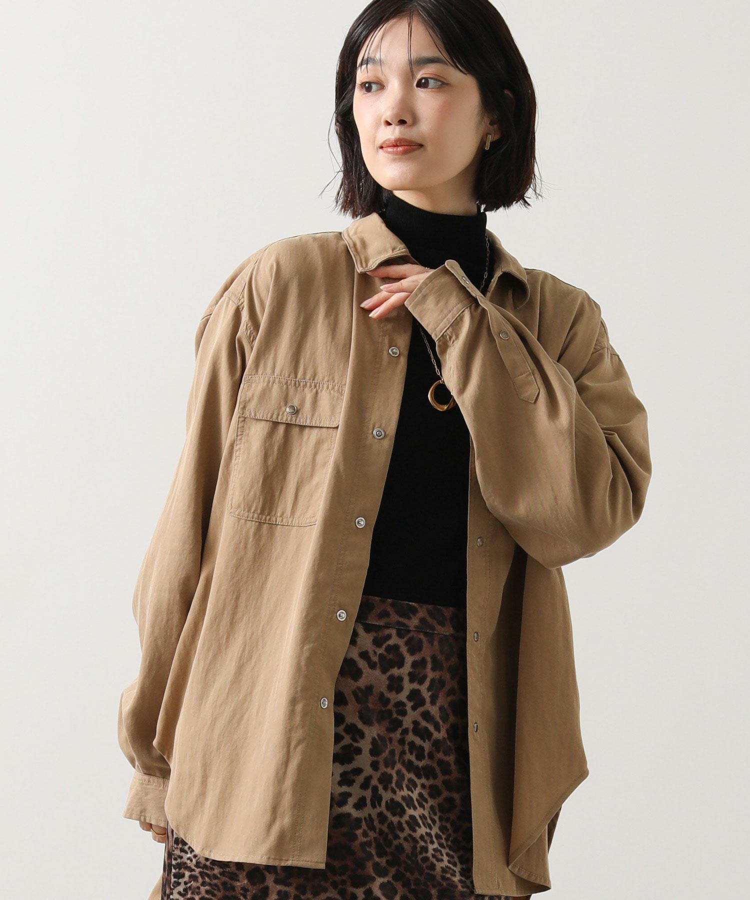 ヒップまで隠れる着丈で、主役にも脇役にもなれる万能シャツです。