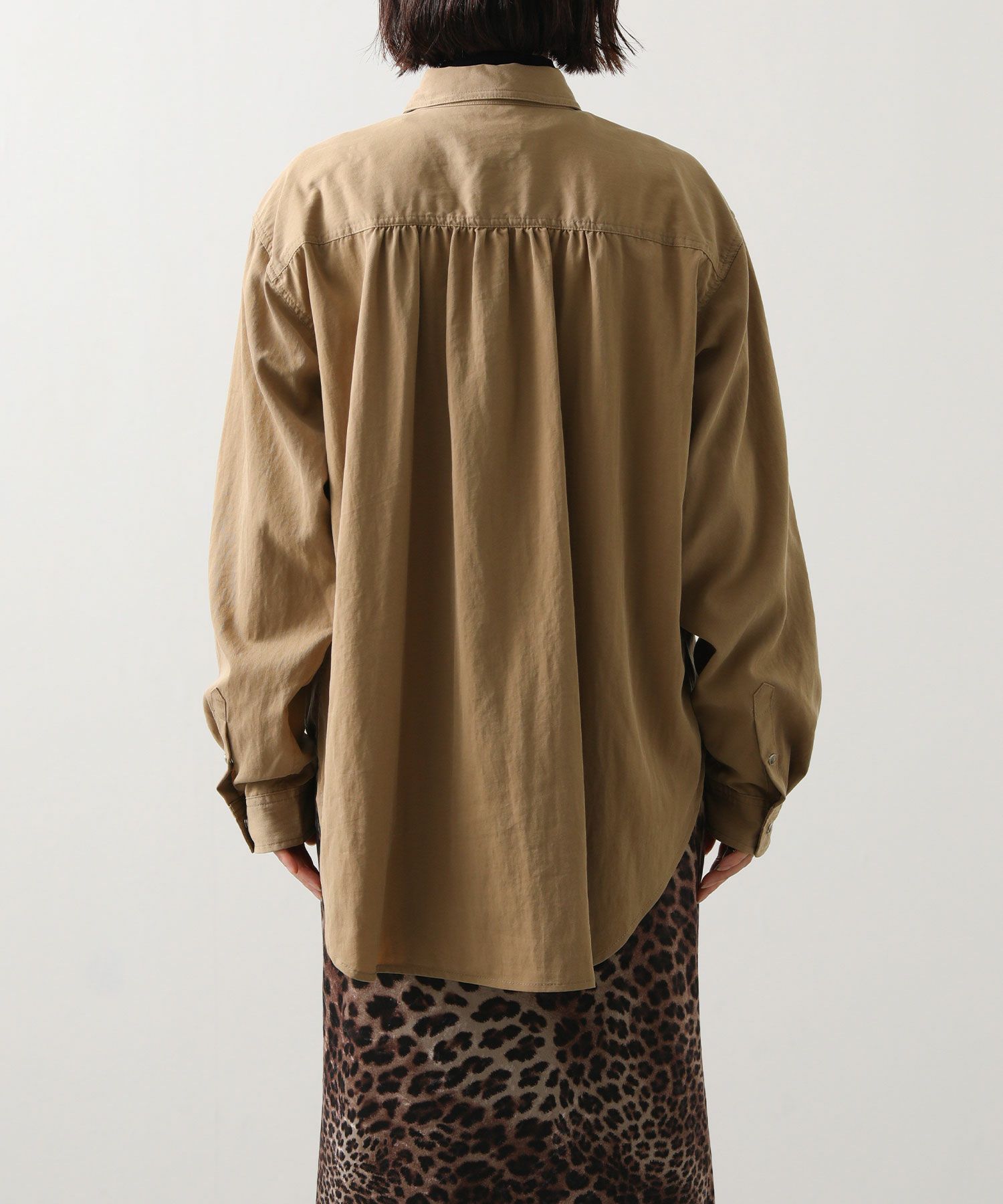 フィブリル感のあるテンセルナイロンのツイル素材のシャツ。