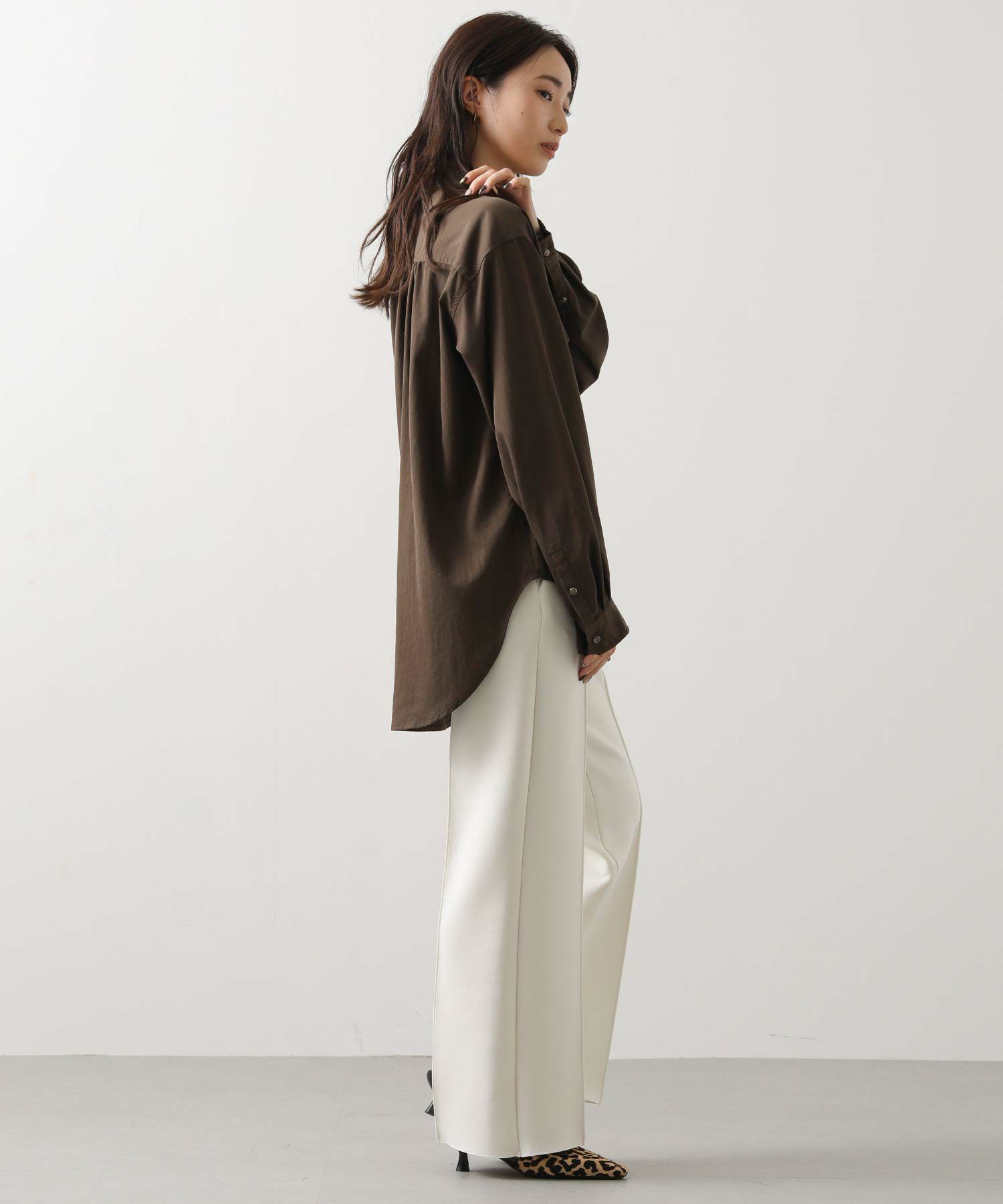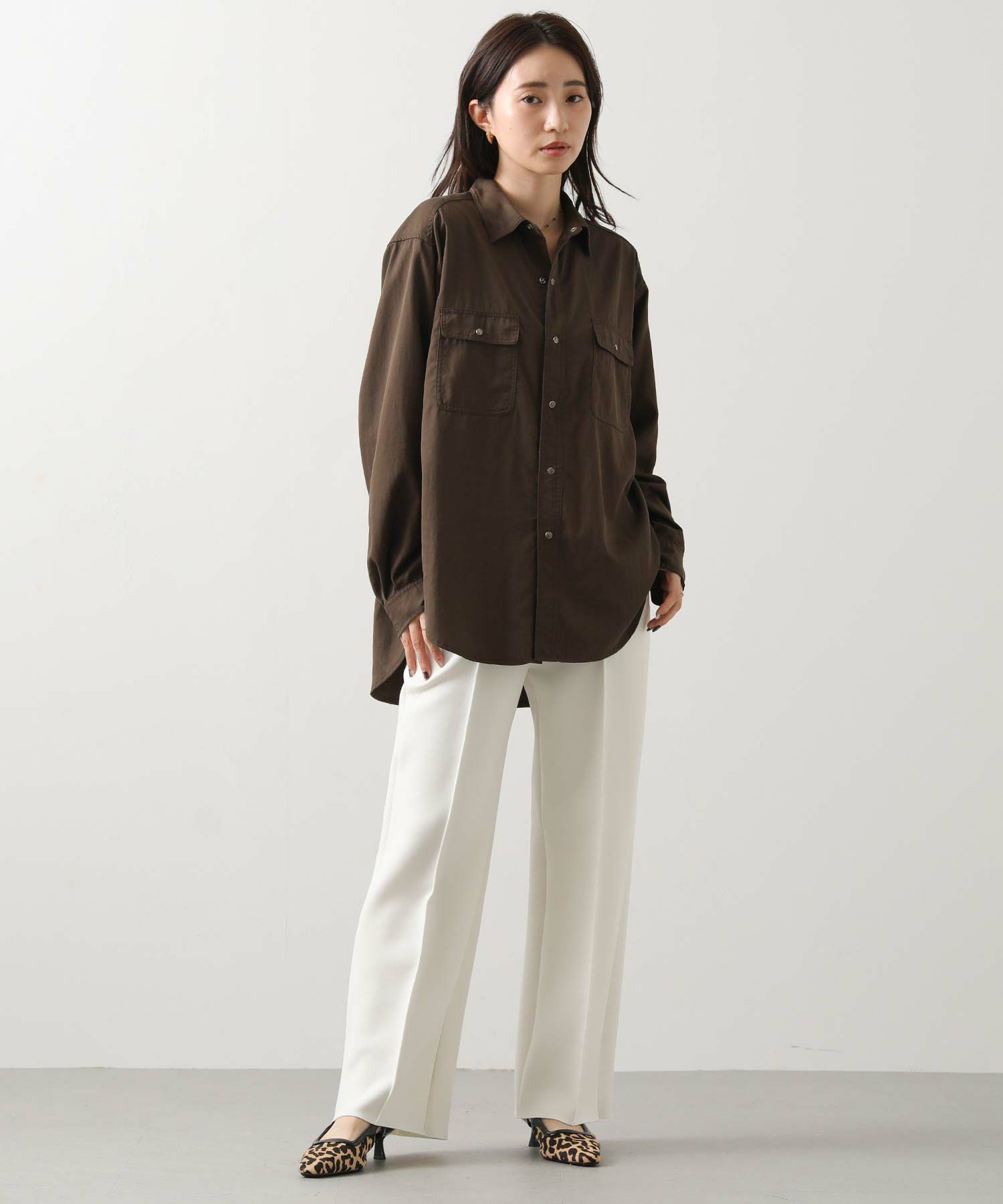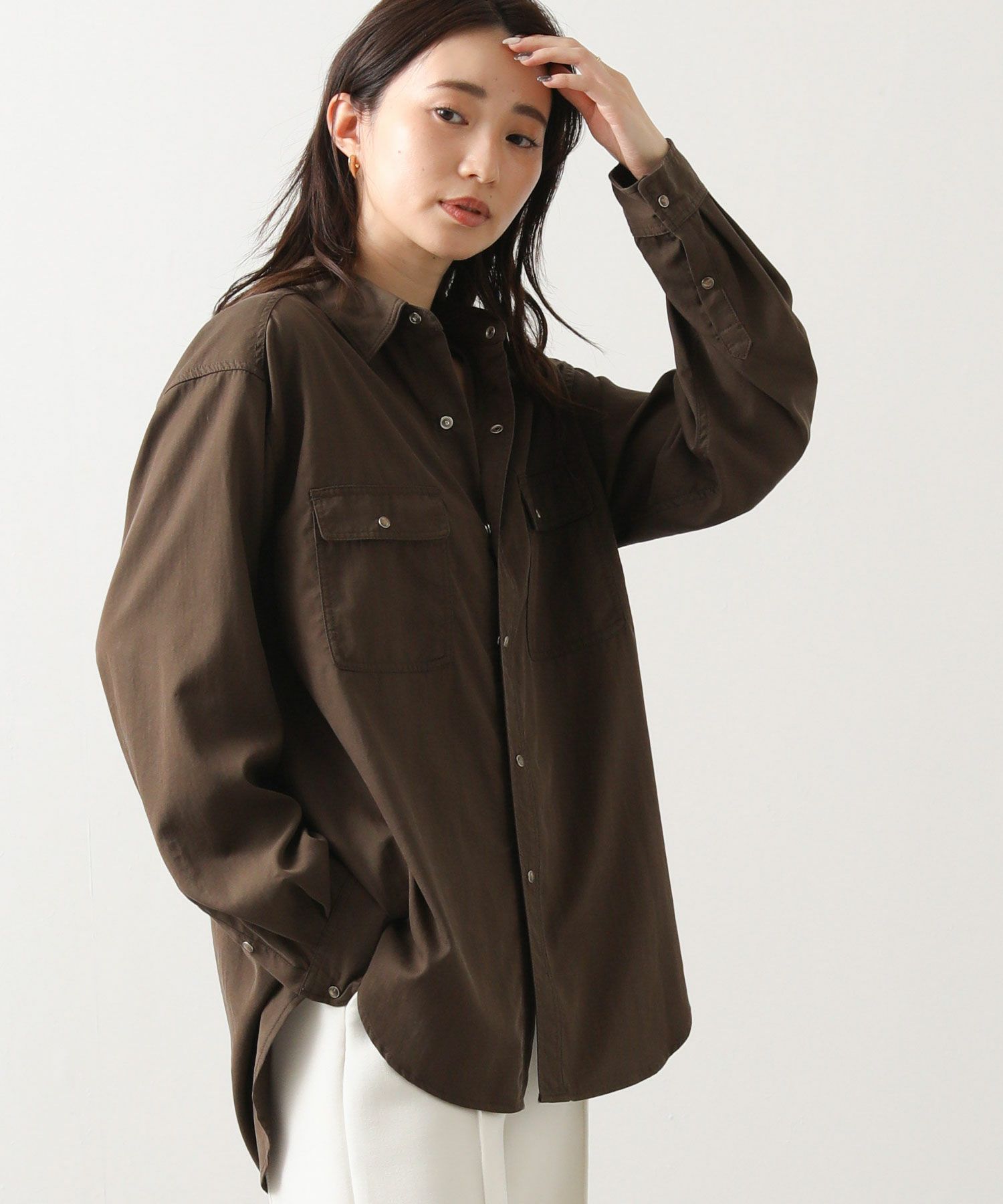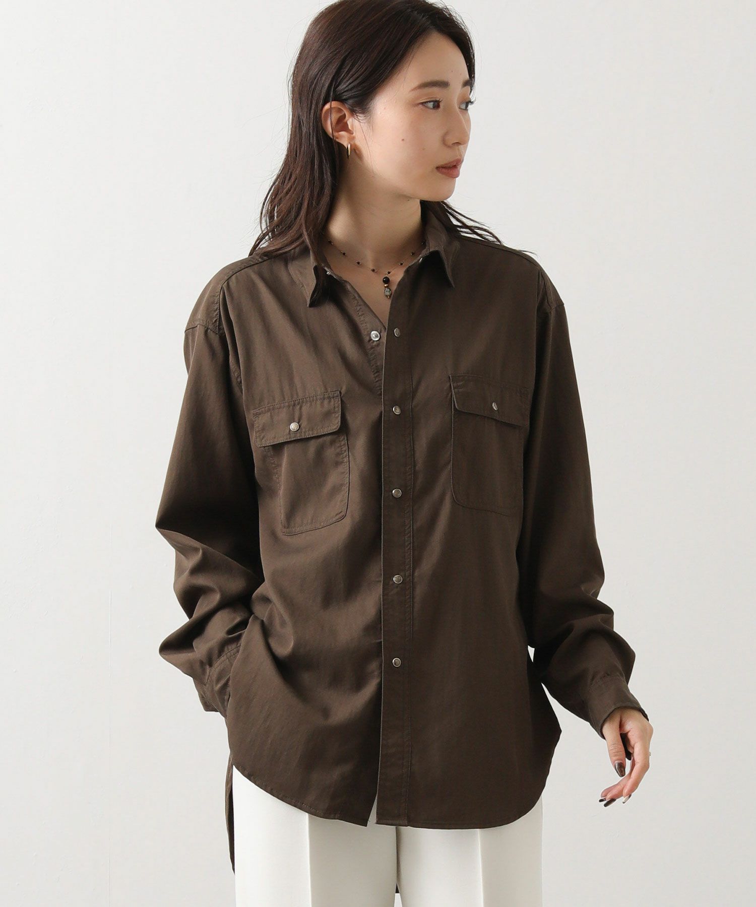 ヒップまで隠れる着丈で、主役にも脇役にもなれる万能シャツです。