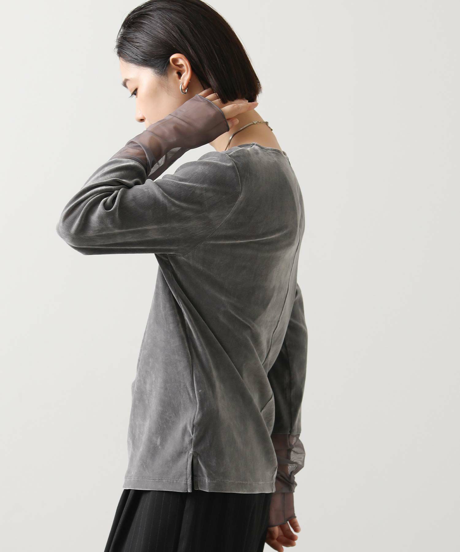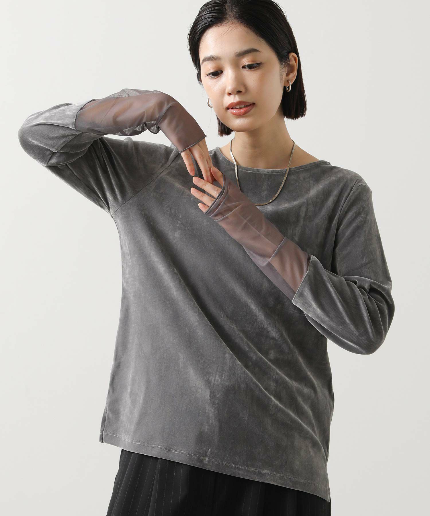 ベロア袖チュールボートネックトップス