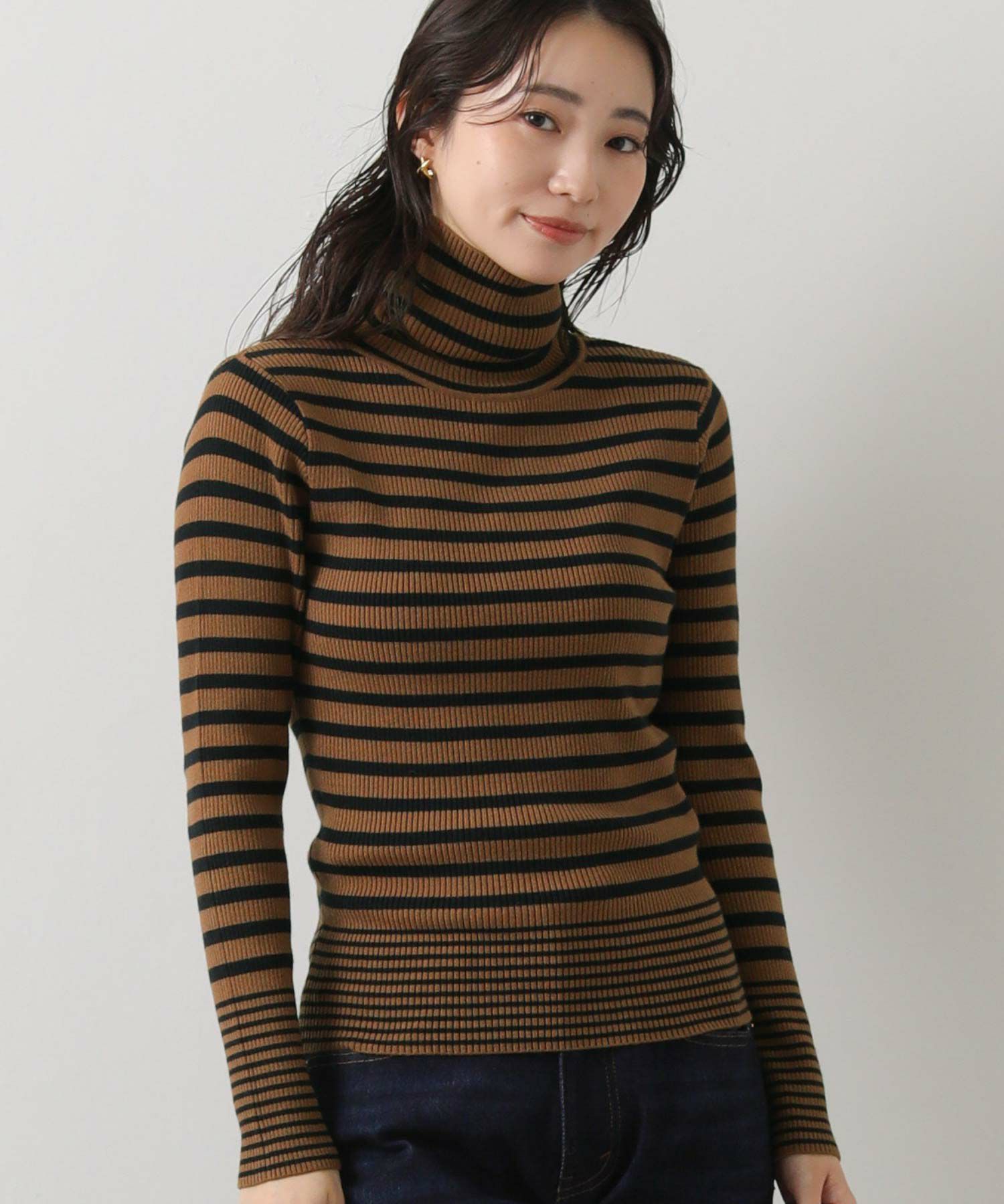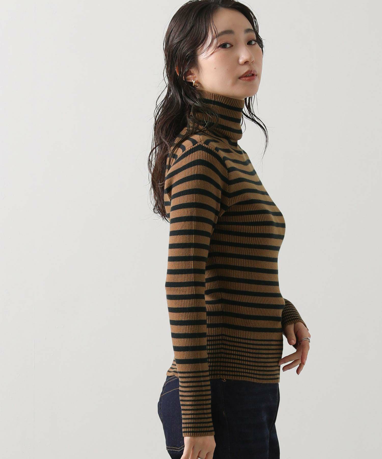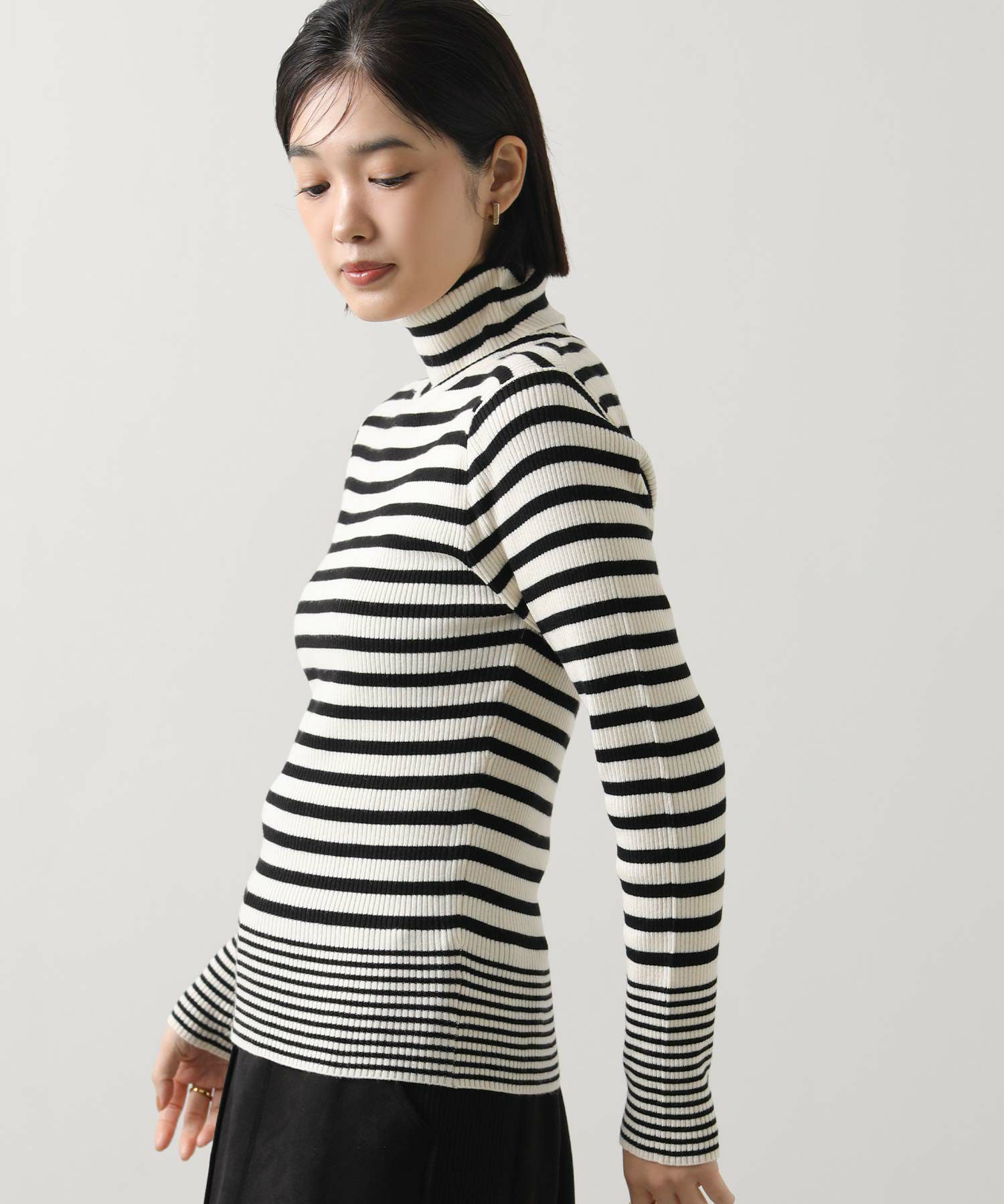 ボーダータートルネックニット
