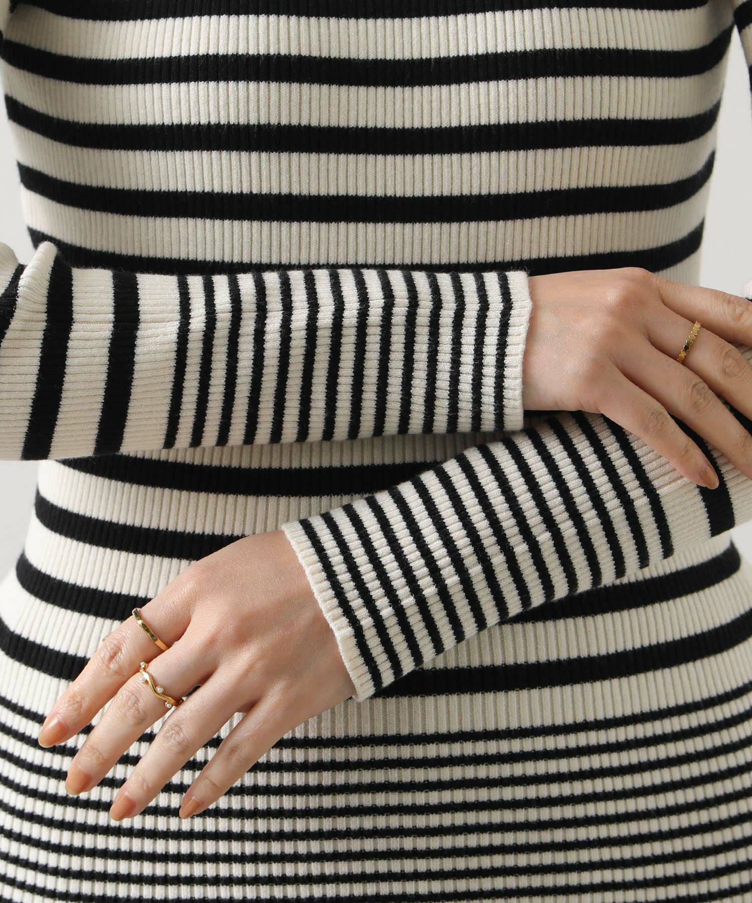 ベーシックなシルエットながら、幅が異なるボーダーがこなれ感をプラスしてくれます。