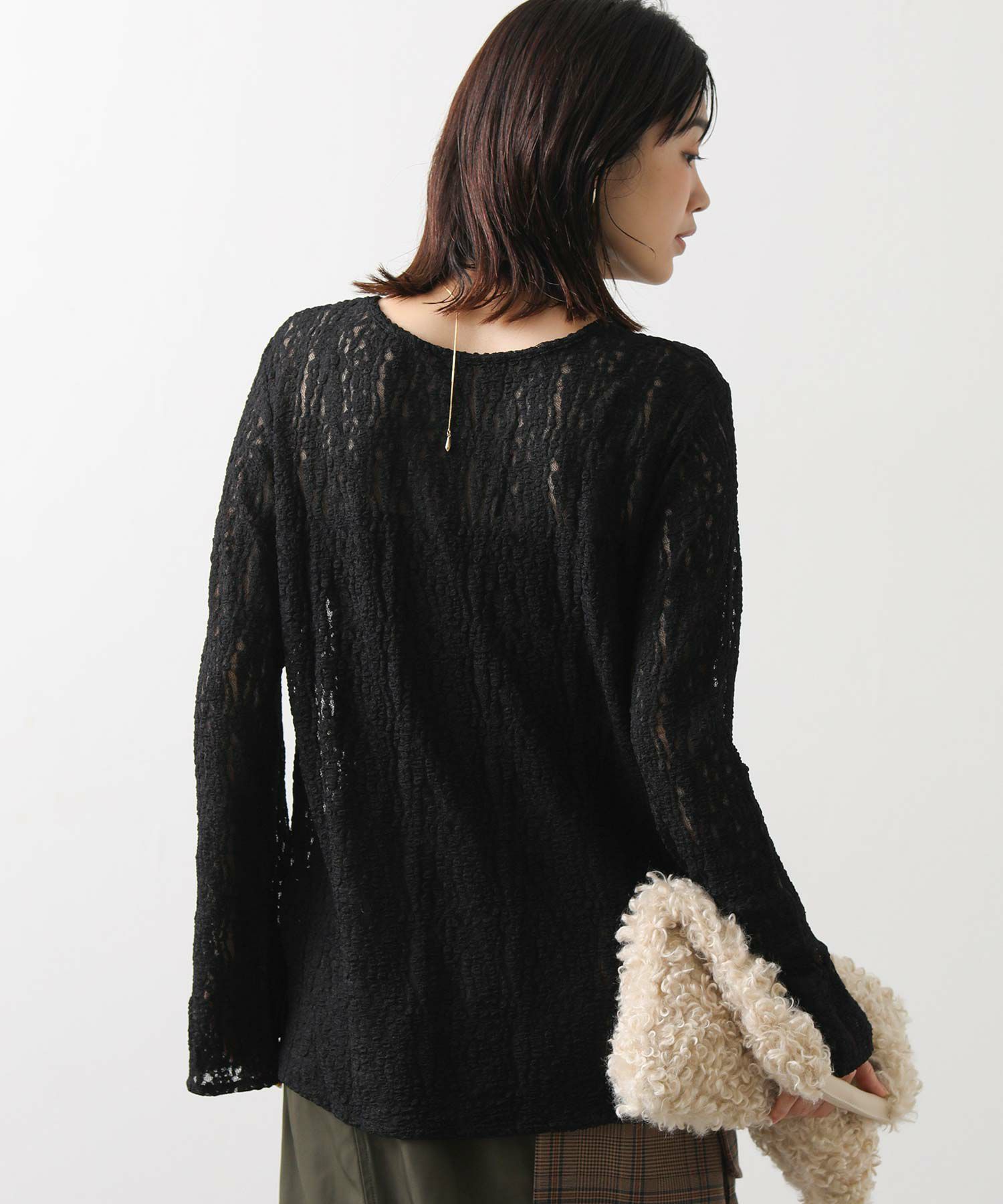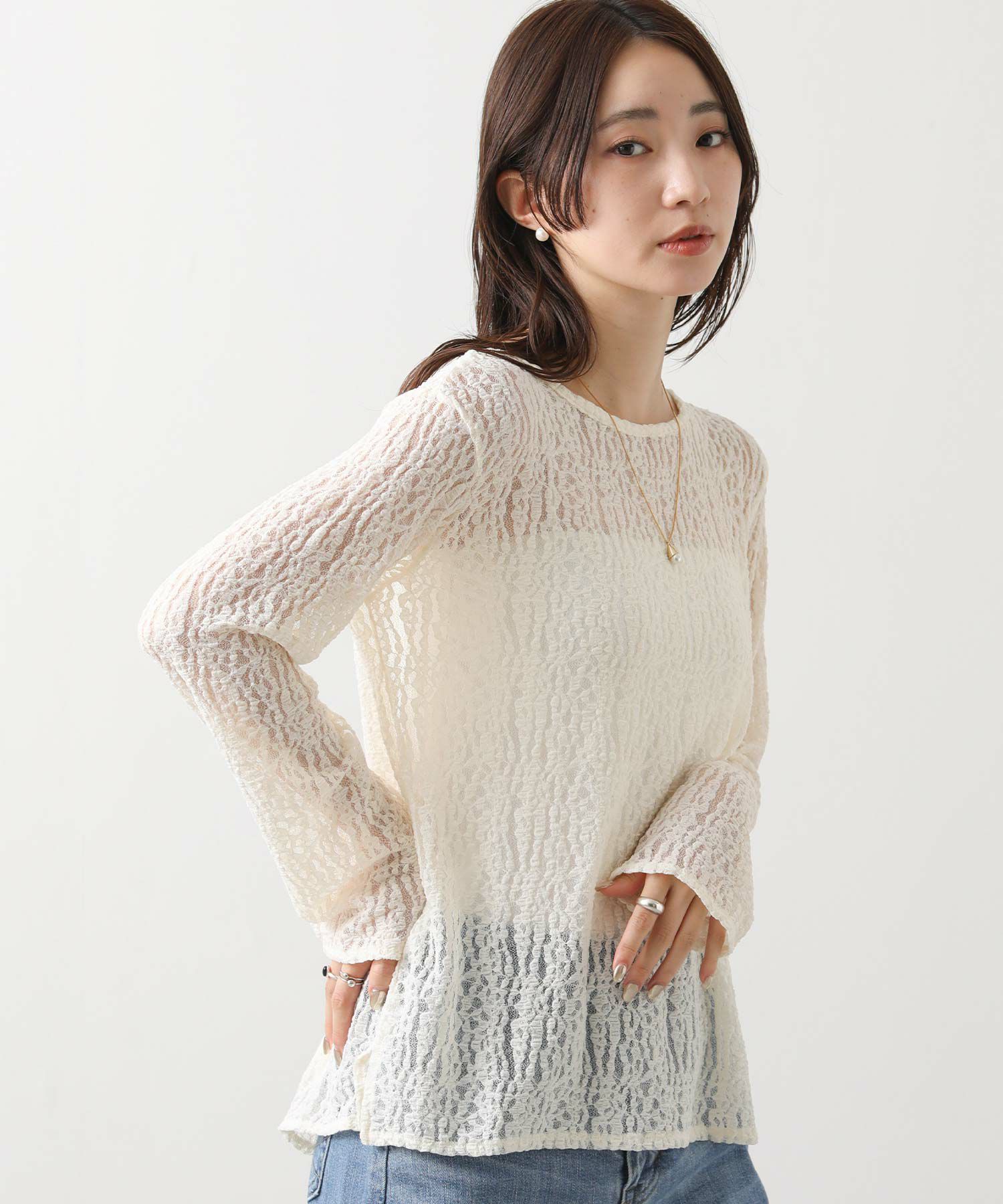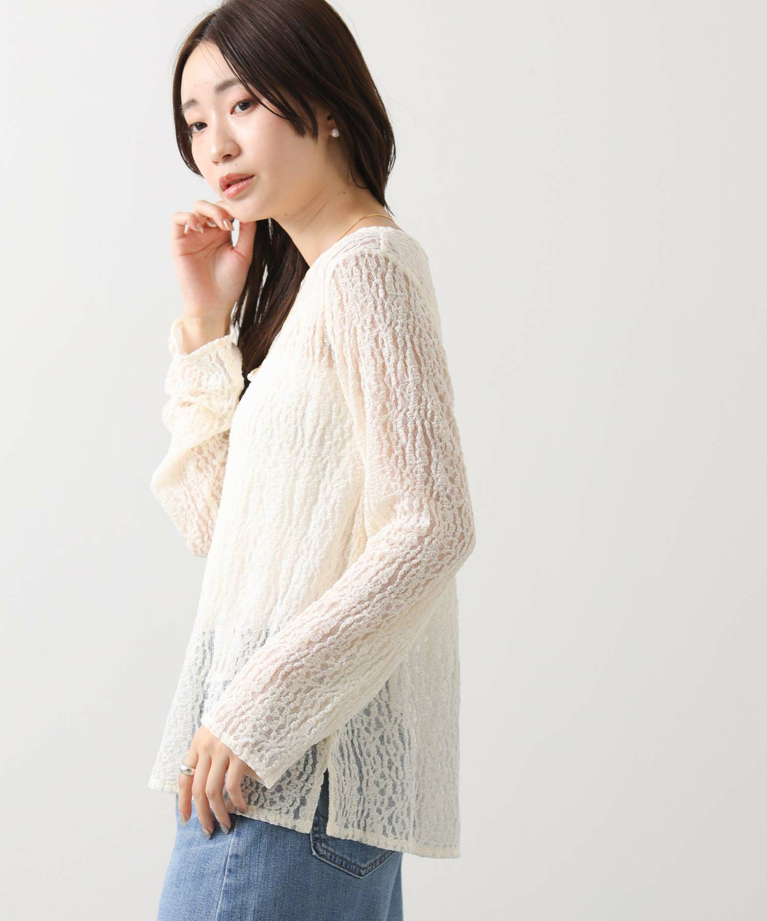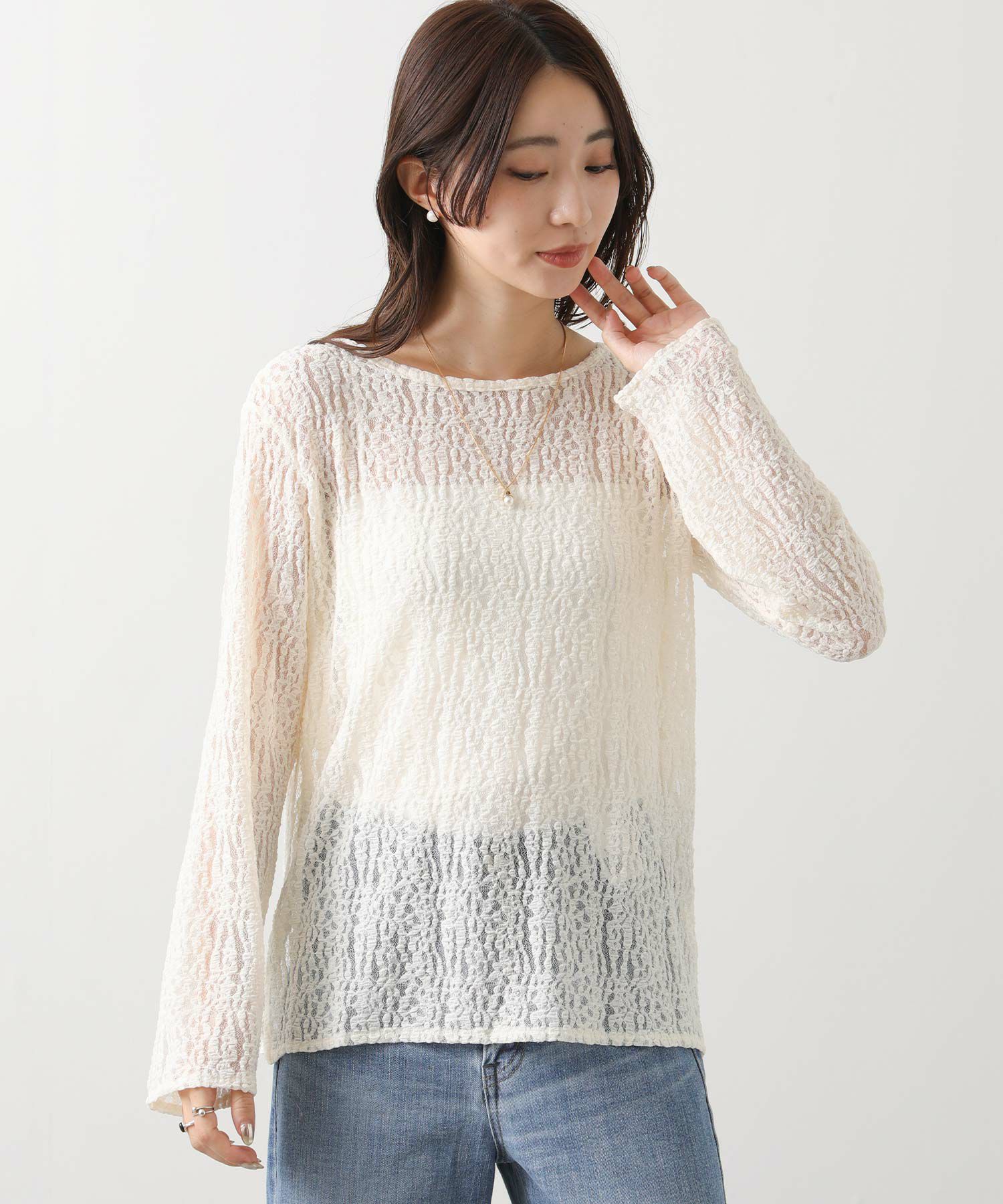 ふんわり繊細なレースが魅力のロングスリーブトップス。