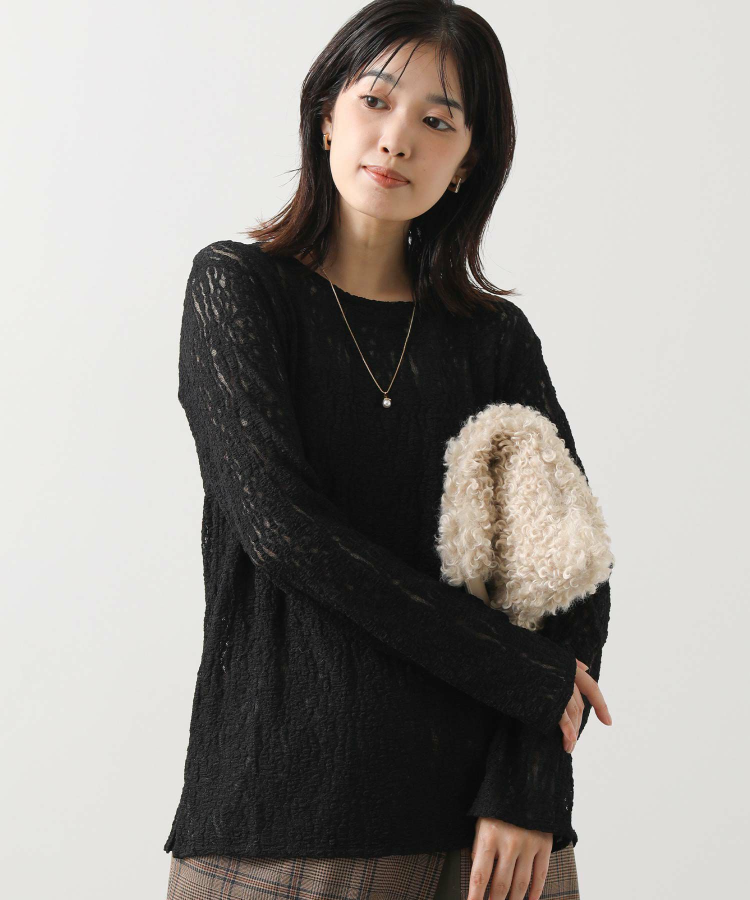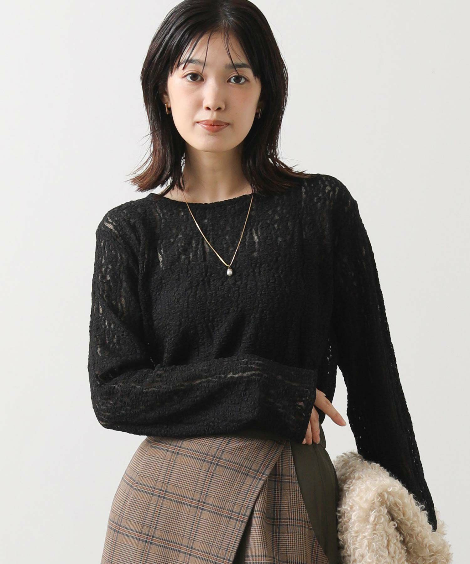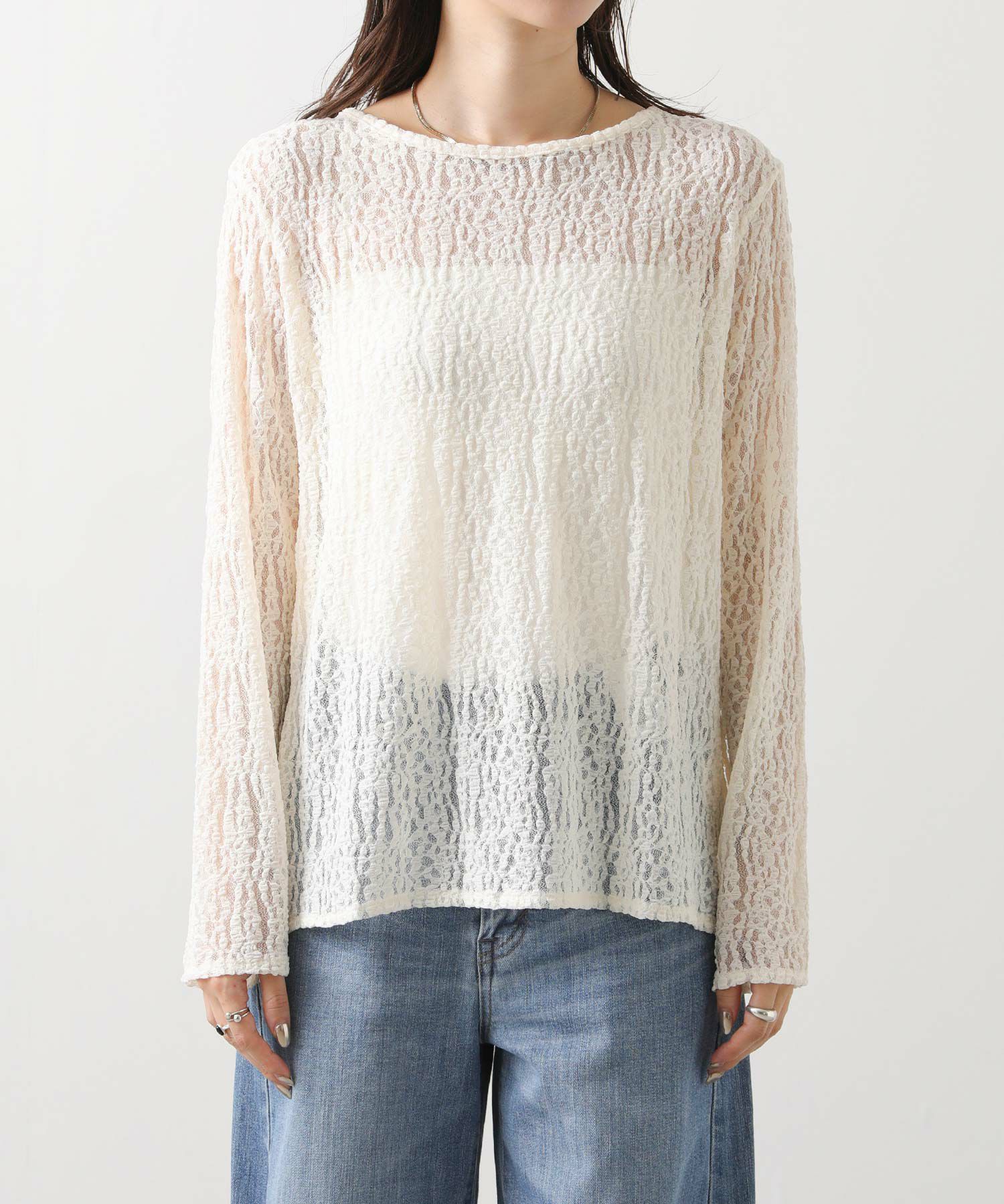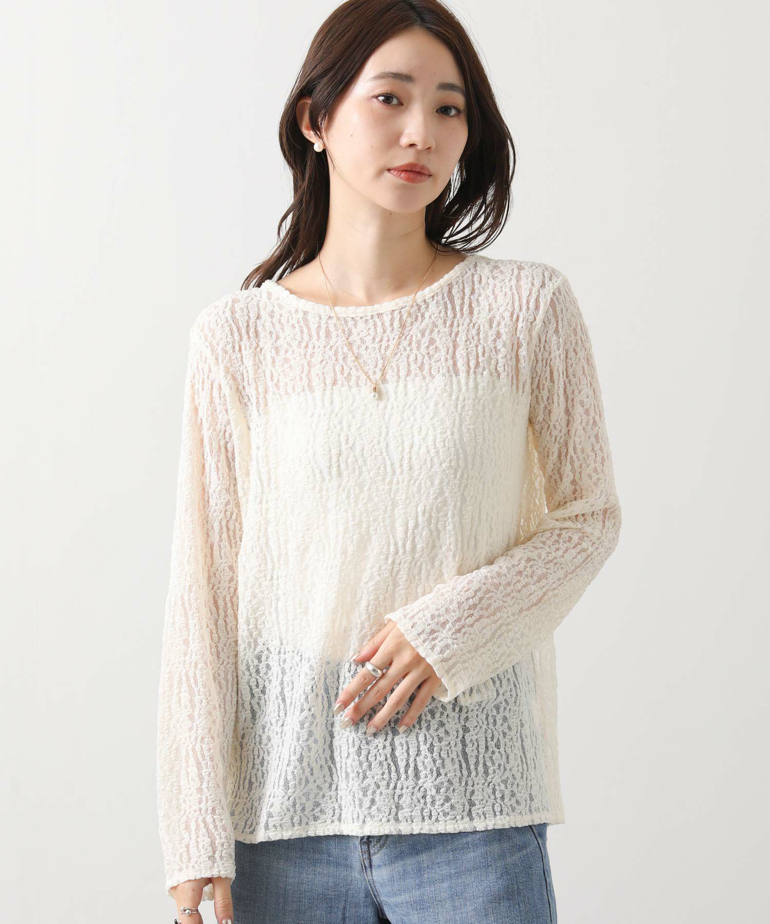 ふんわり繊細なレースが魅力のロングスリーブトップス。