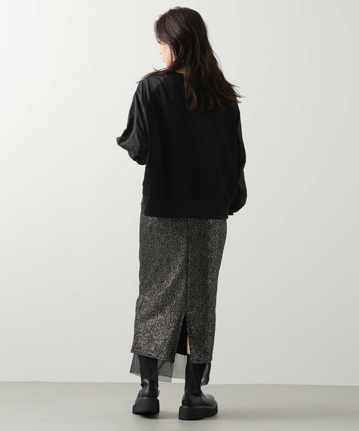 スウェット感覚でデイリーに使えながらも、異素材の組み合わせがカジュアルすぎず、大人の上品さを演出してくれます。