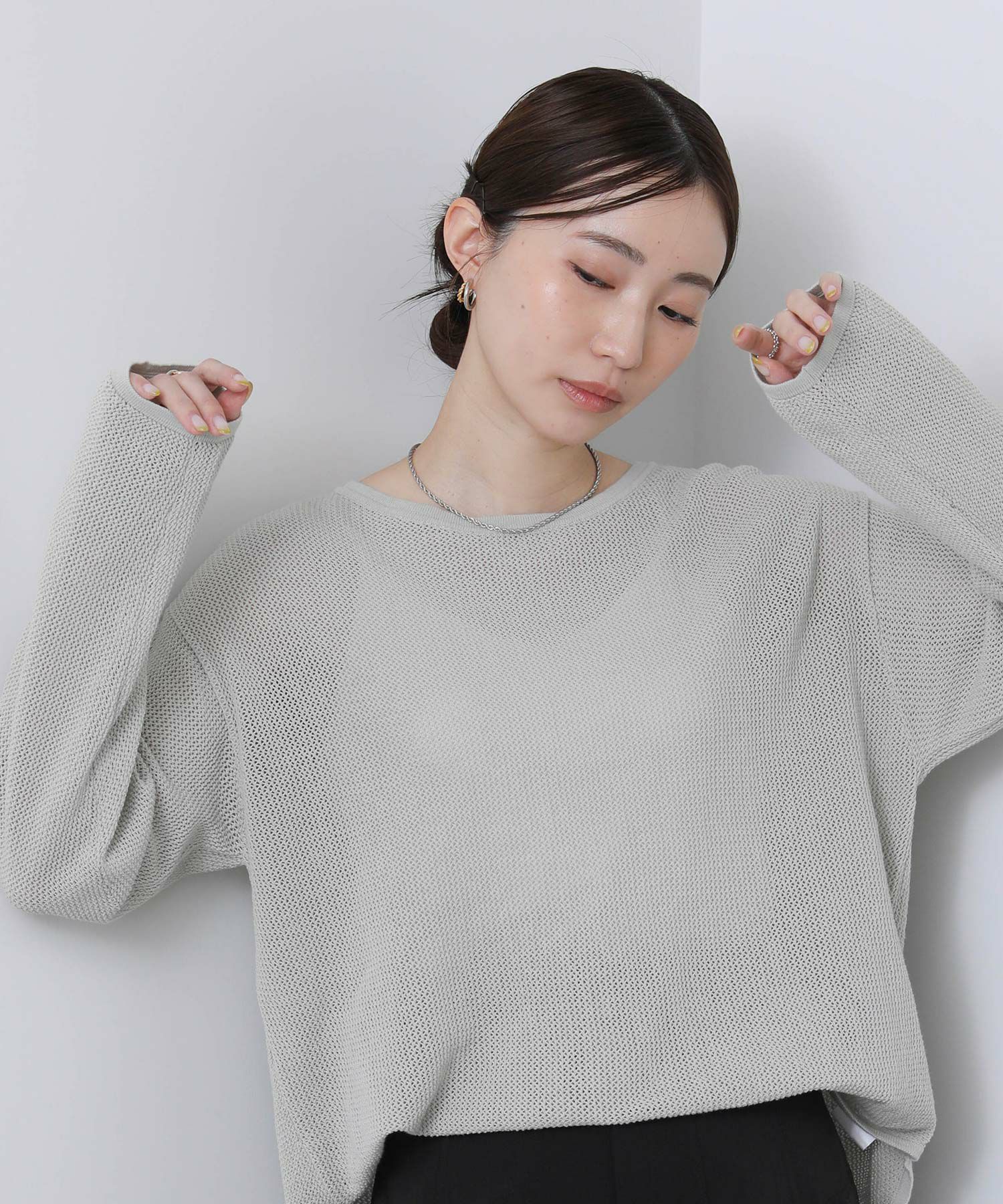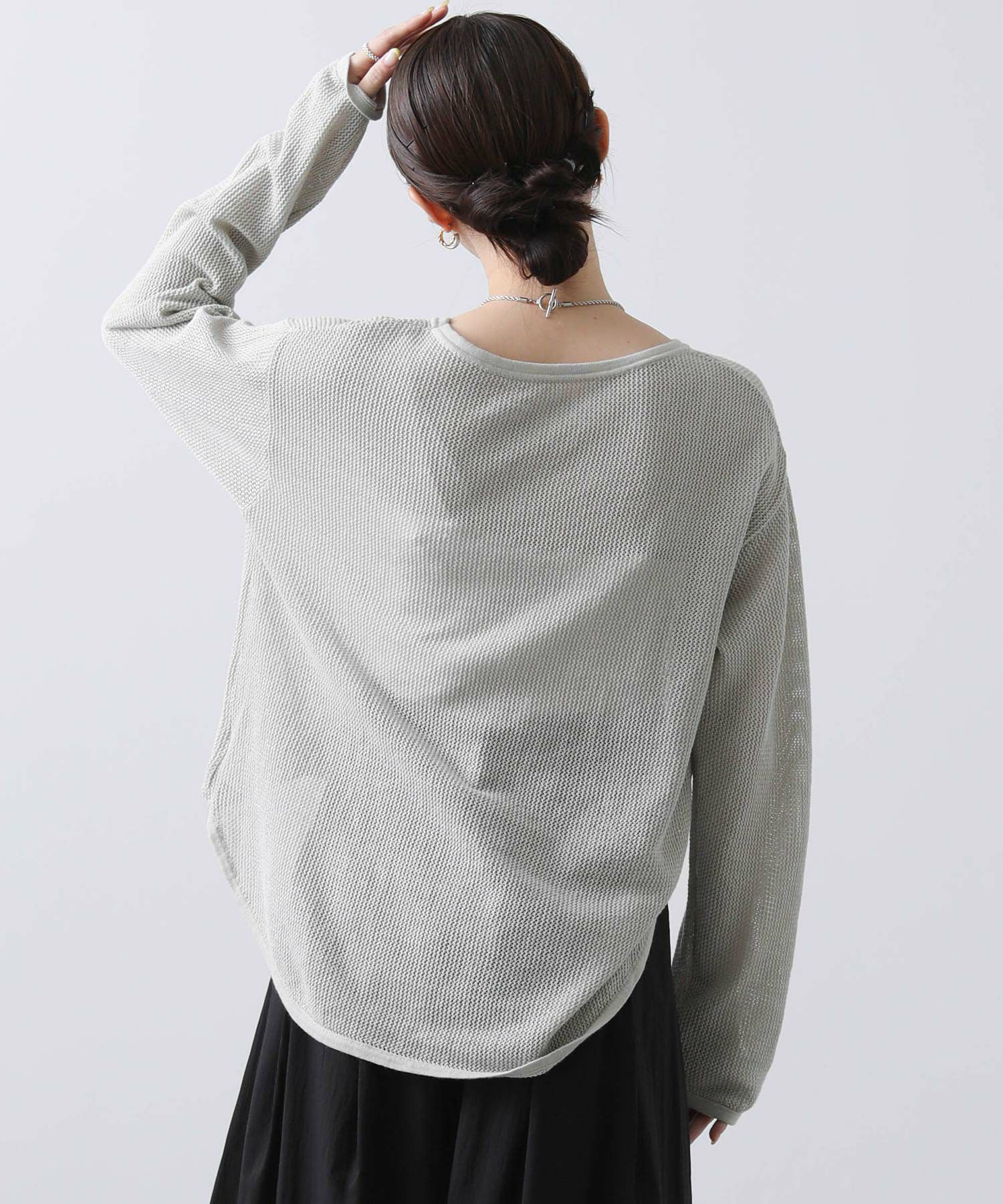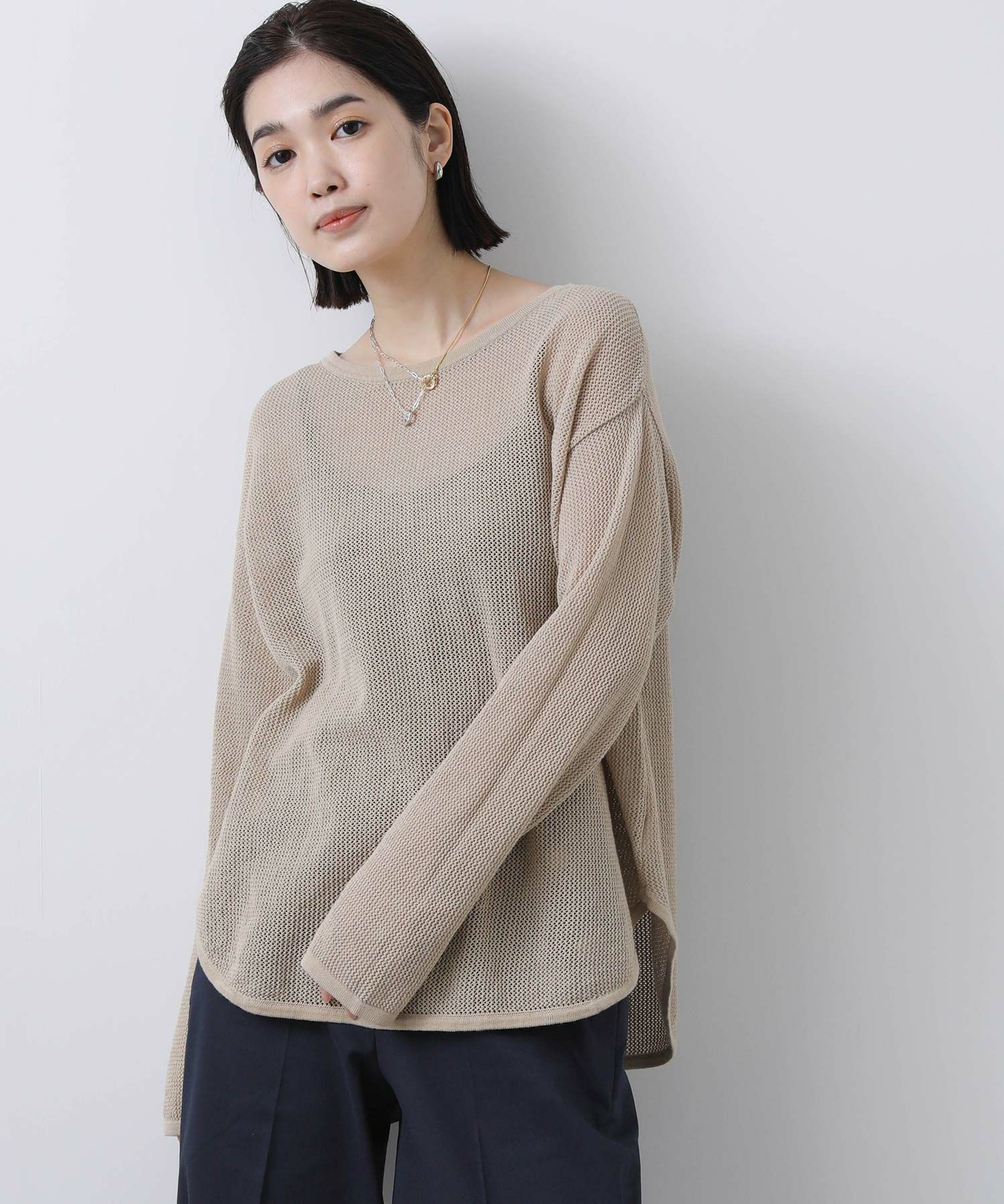 s.Cメッシュ裾ラウンドニットプルオーバー