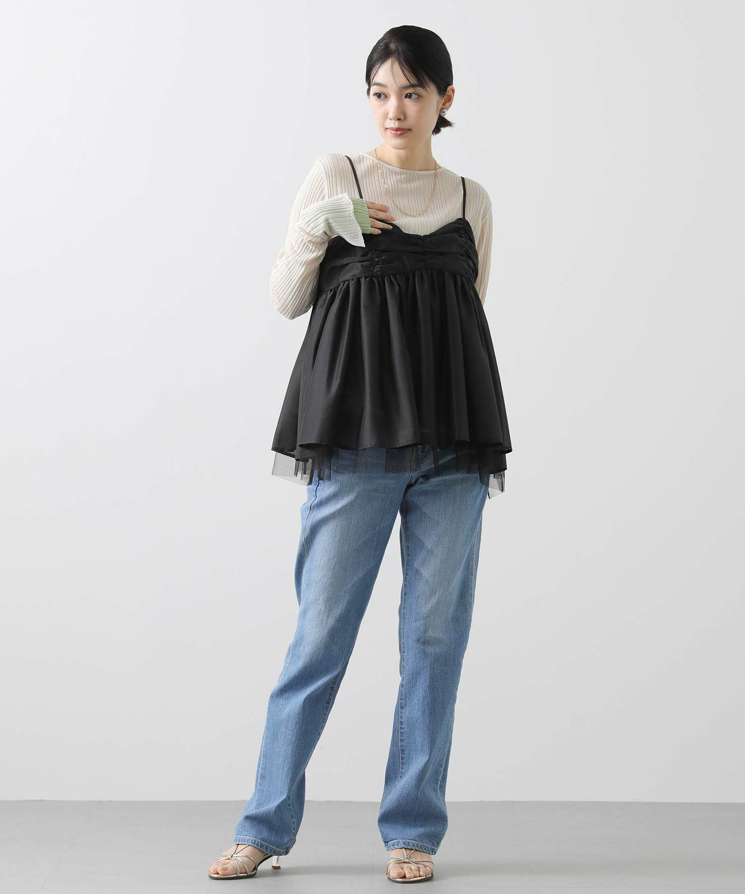 キャミワンピースやジャンスカ、ジャケットなどのインナーとしても◎コーディネート次第でロングシーズン楽しめる1着です。