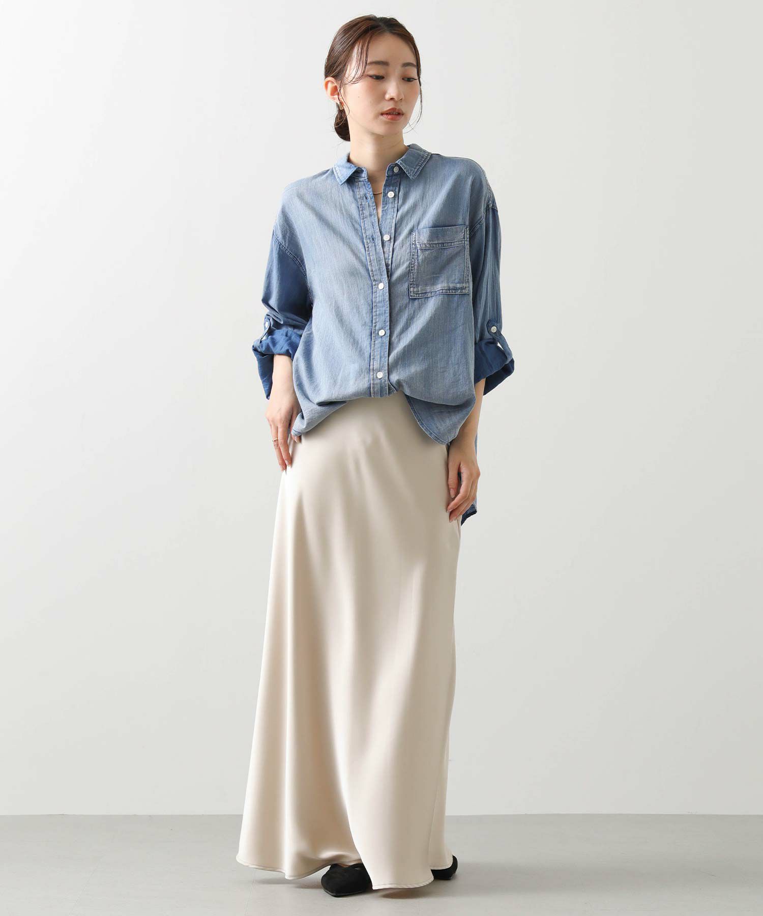 抜け感スタイルが叶うシアーデニムシャツ。