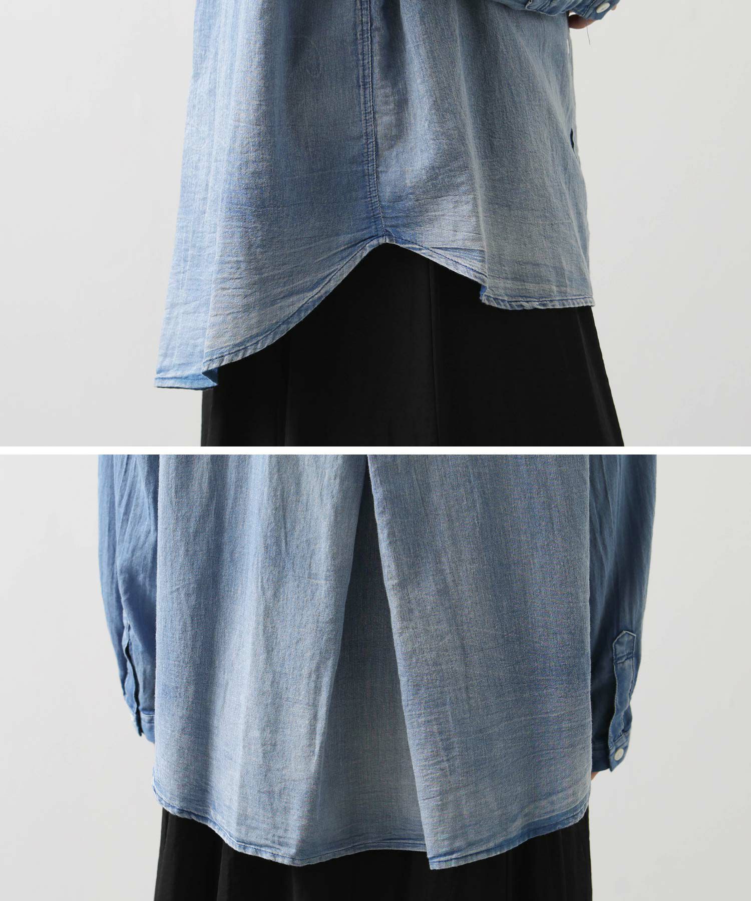 薄手&柔らかい風合いで着心地がよく風通しも良いシアー感のあるコットンデニム素材を使用。