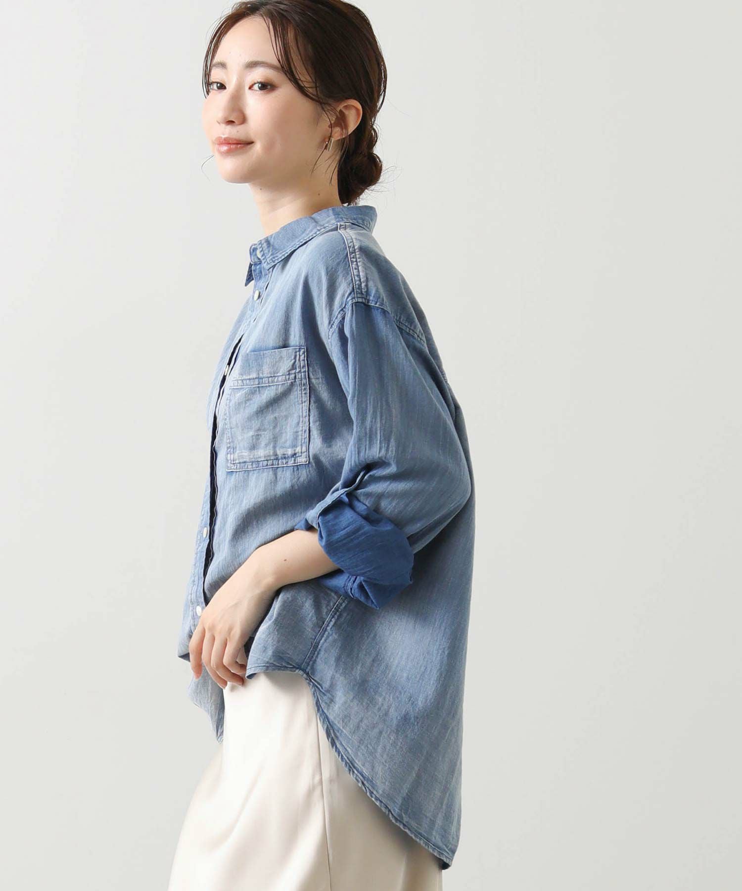 抜け感スタイルが叶うシアーデニムシャツ。