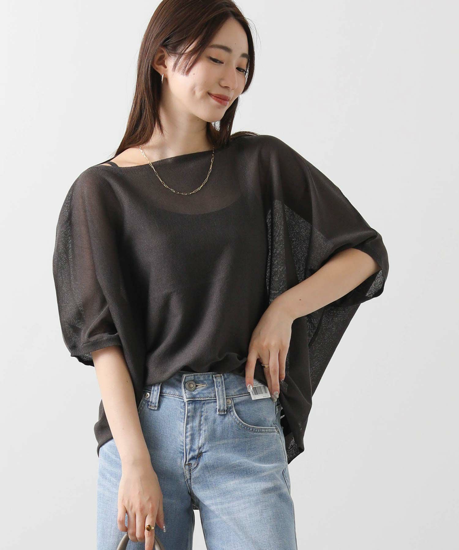 程良いシアー感のある、さわやかな印象のニットプルオーバー。