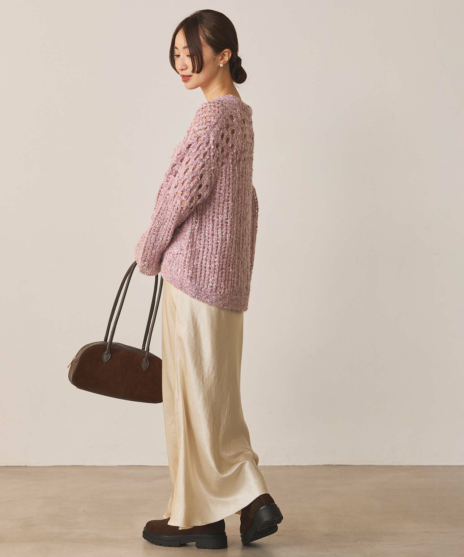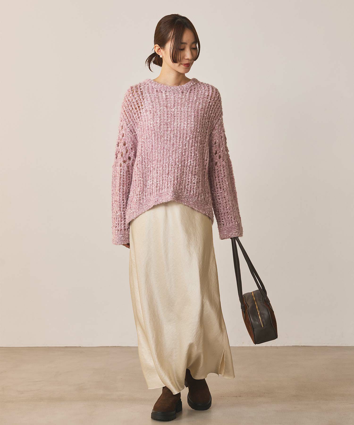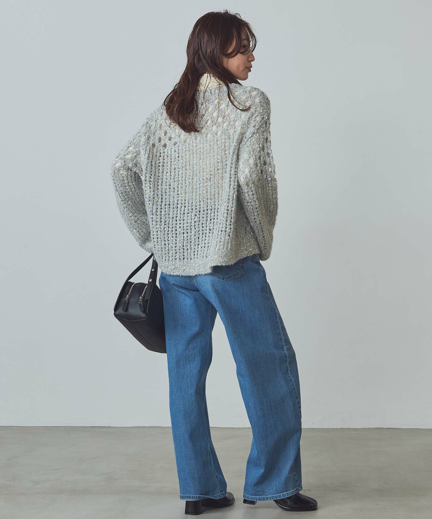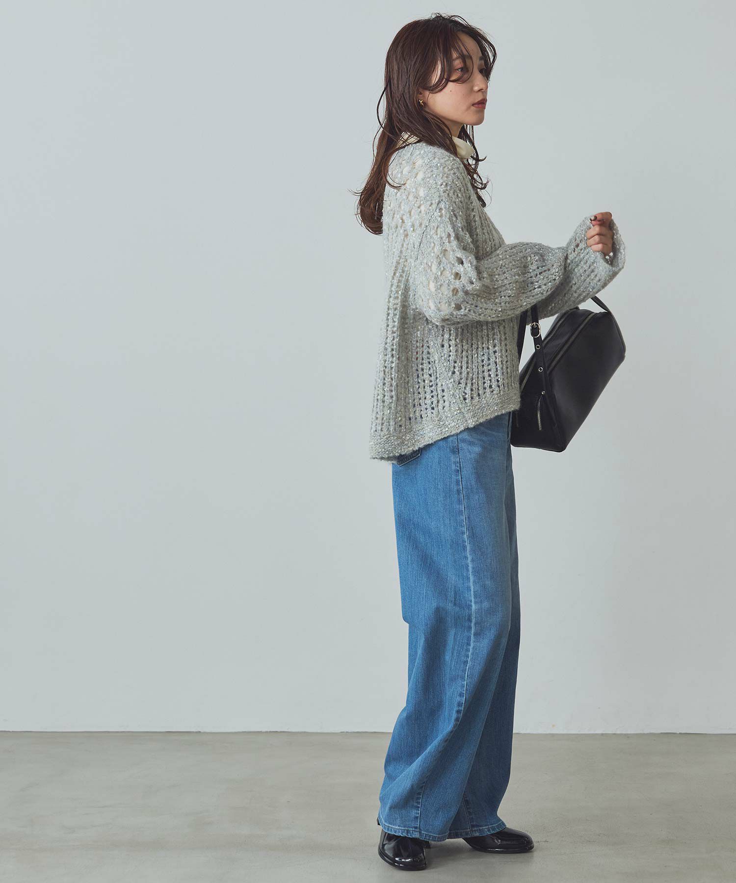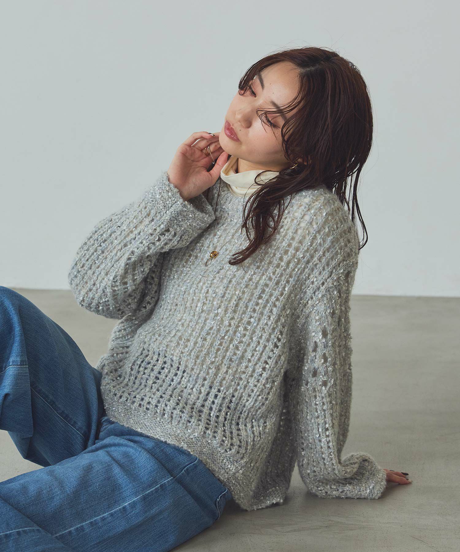 透け感のある編地が重くなりがちな秋冬コーデに抜け感を演出してくれます。