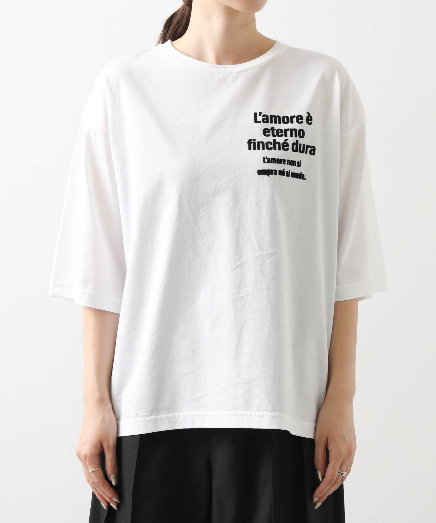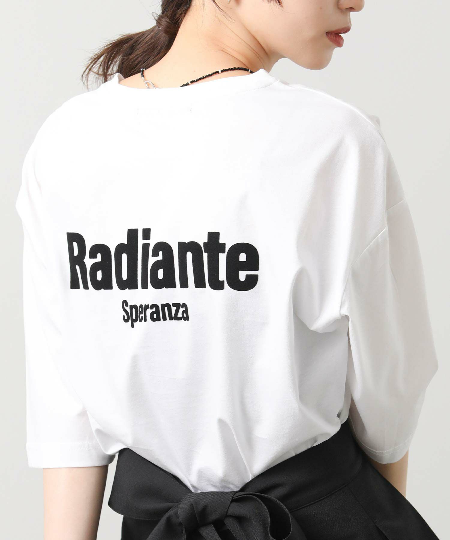 特徴的な表面感のフロッキープリントのマットなロゴが雰囲気のあるTシャツ。