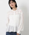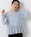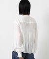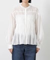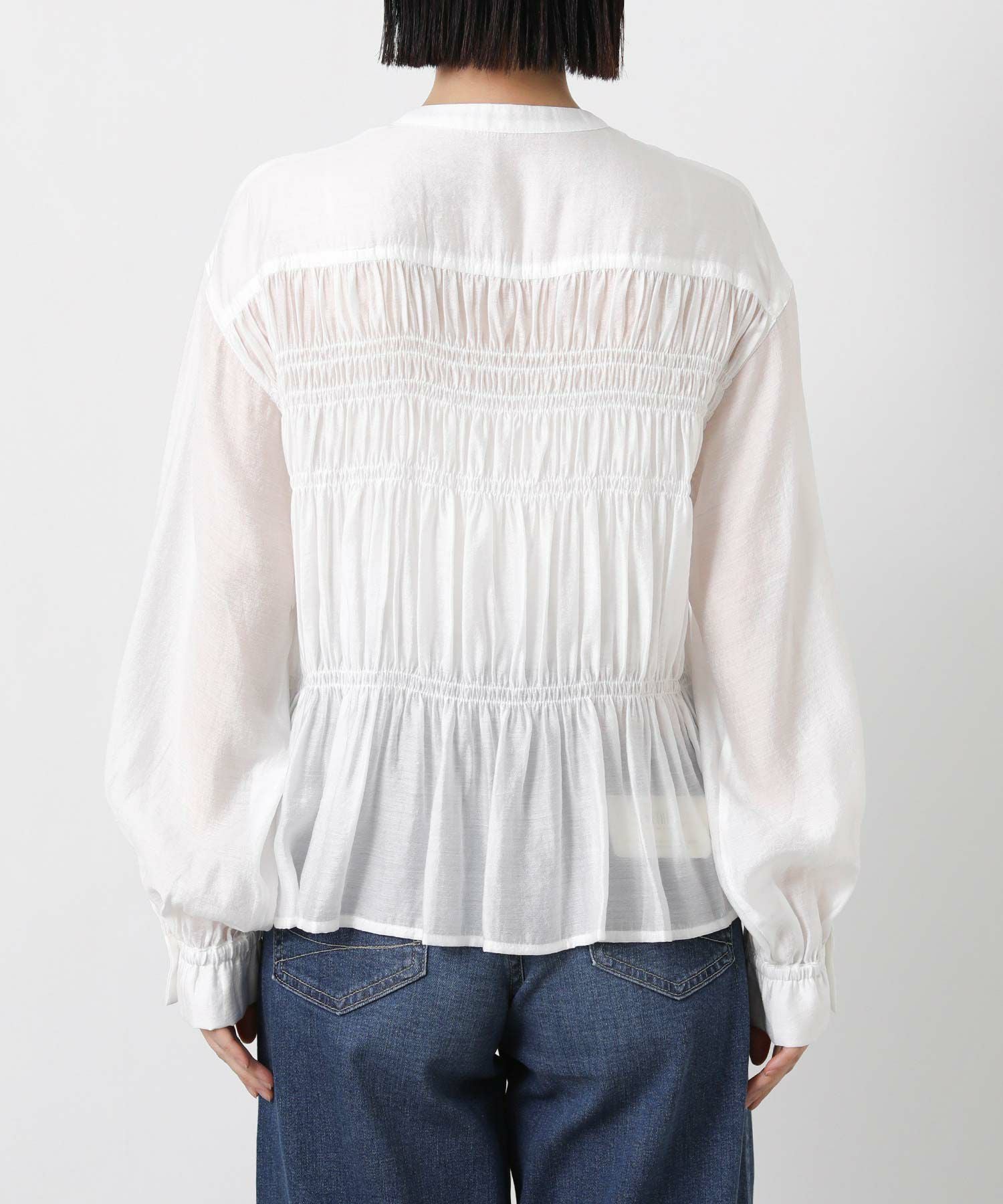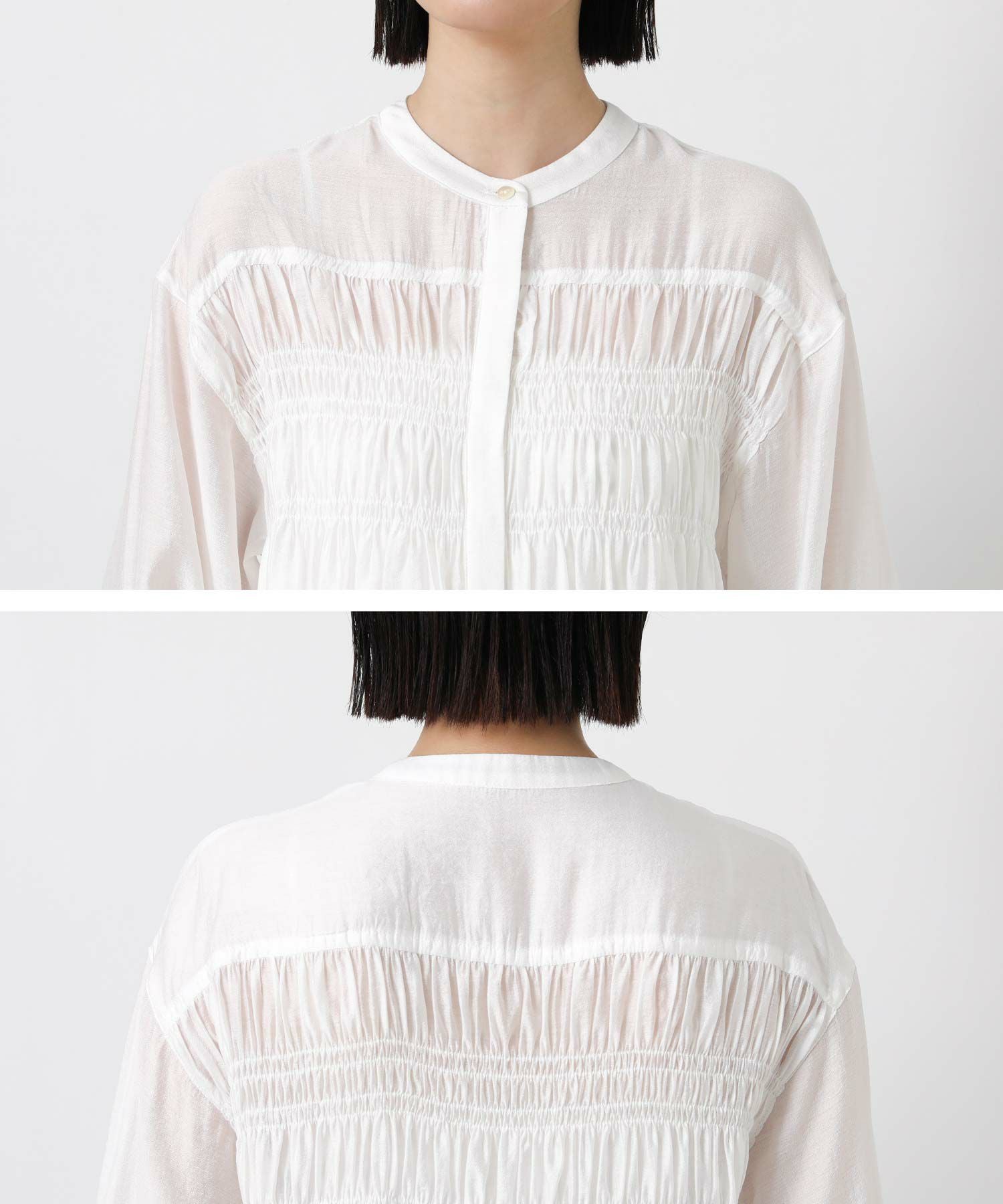 程よいシアー感のある軽やかな素材を使用したバンドカラーブラウス。