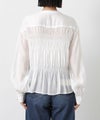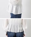 身頃にたっぷりと入ったシャーリングが華やかな印象に。