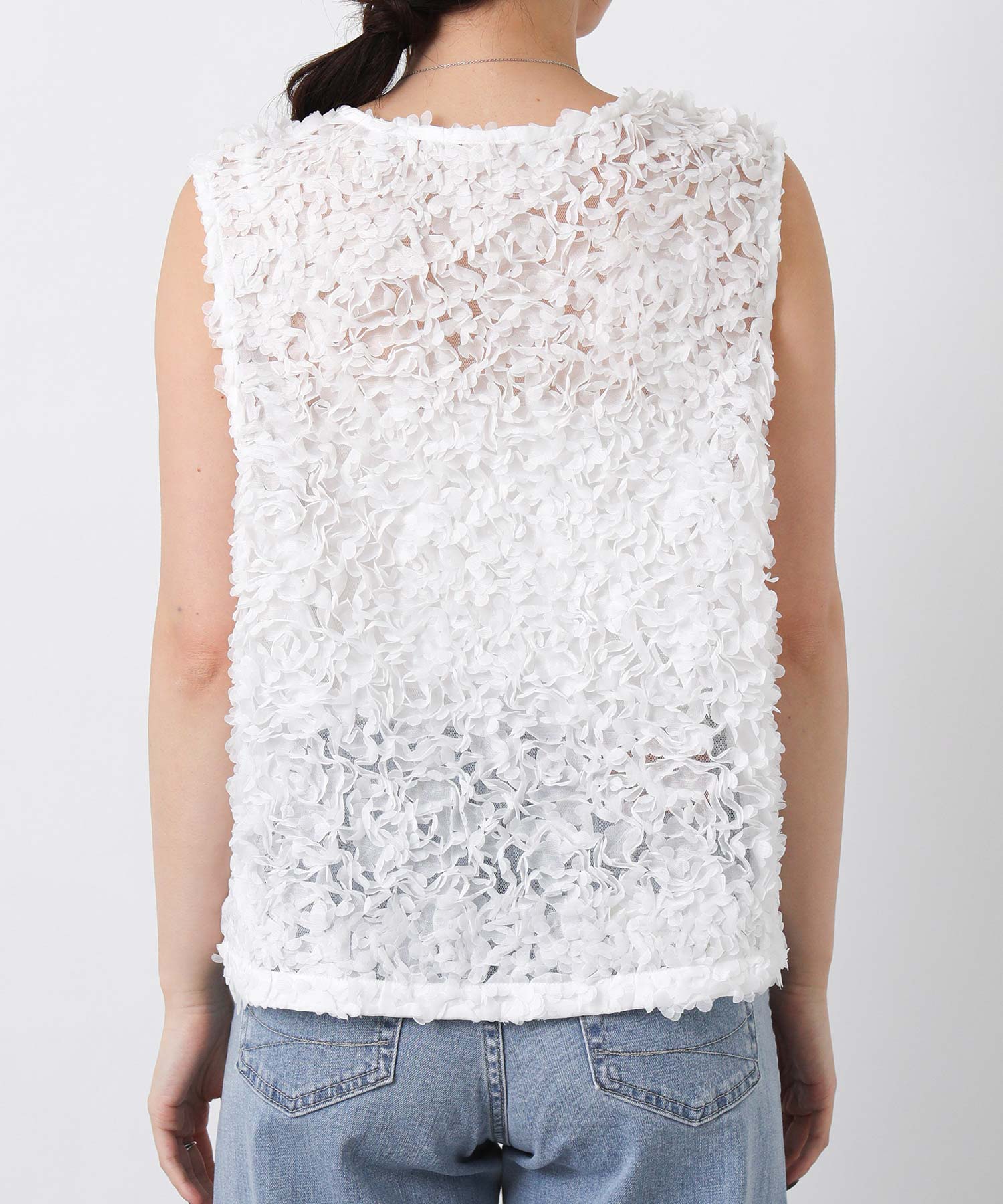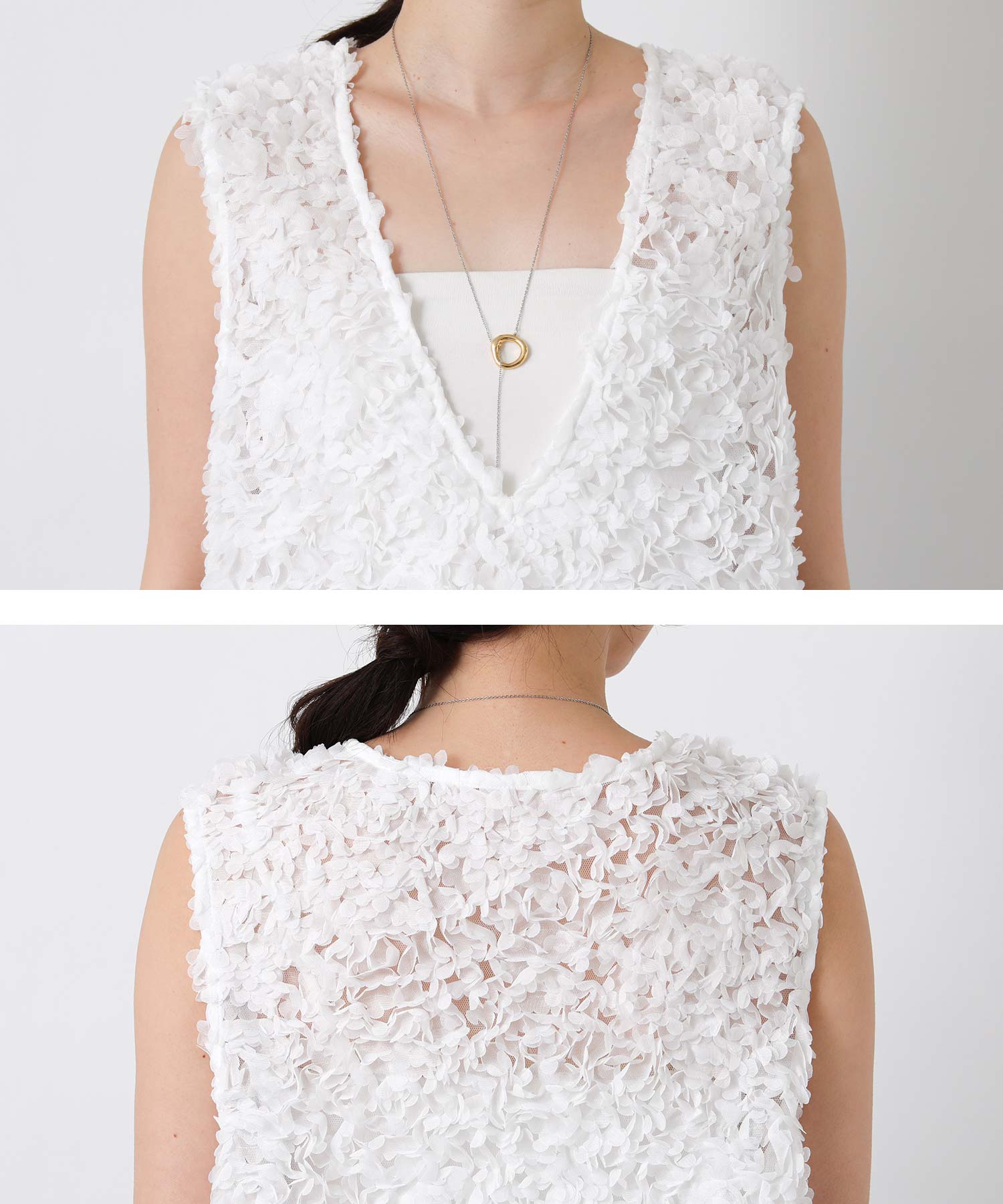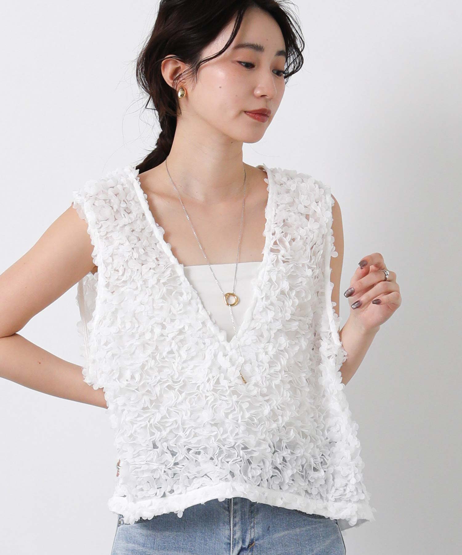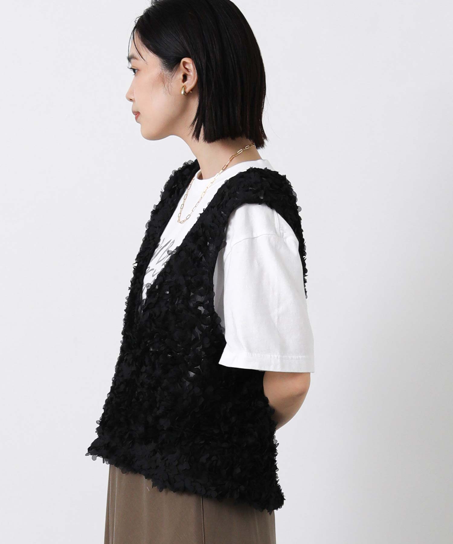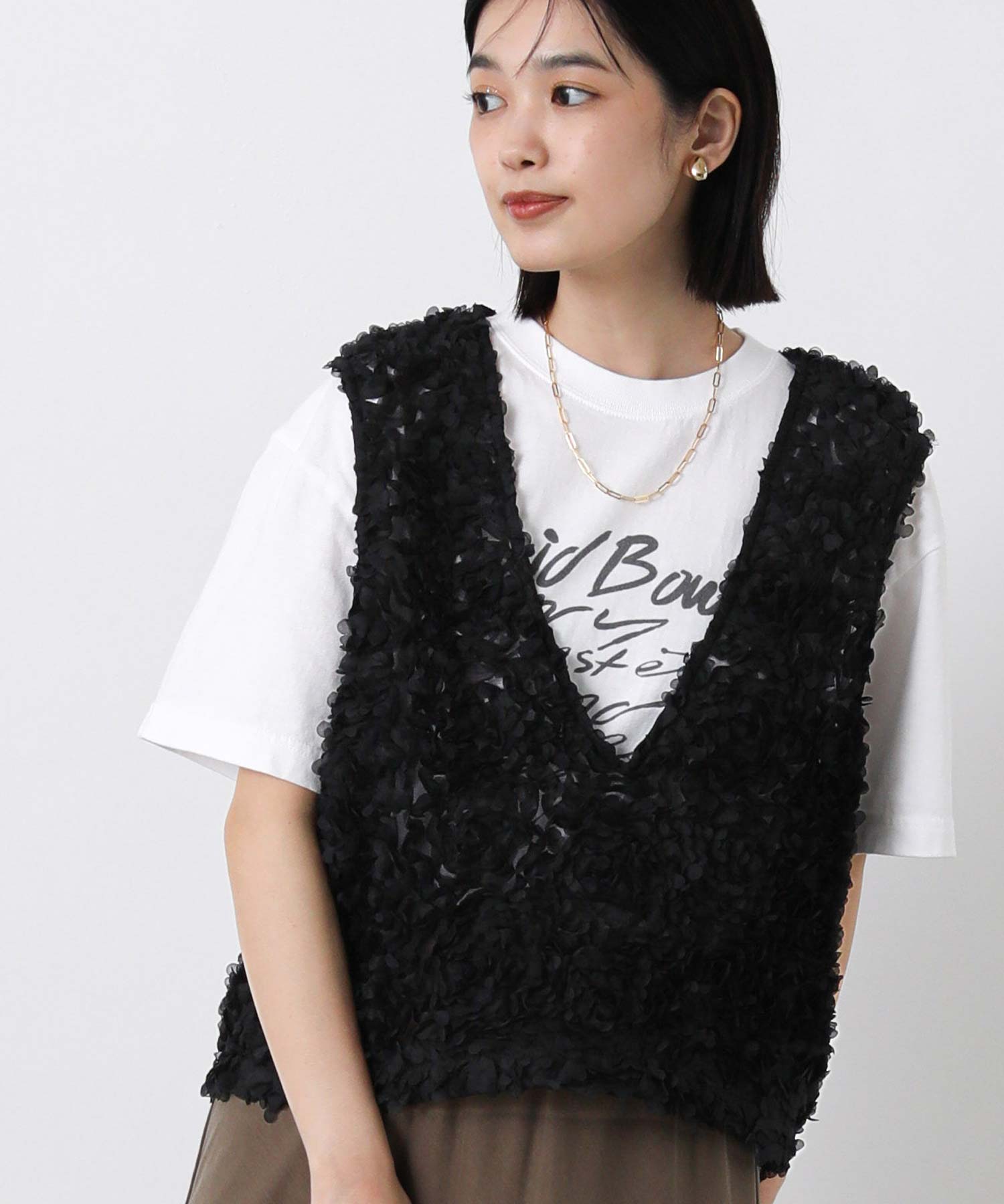 花びらの様なチュールが敷き詰められた生地を使用したVネックベスト。