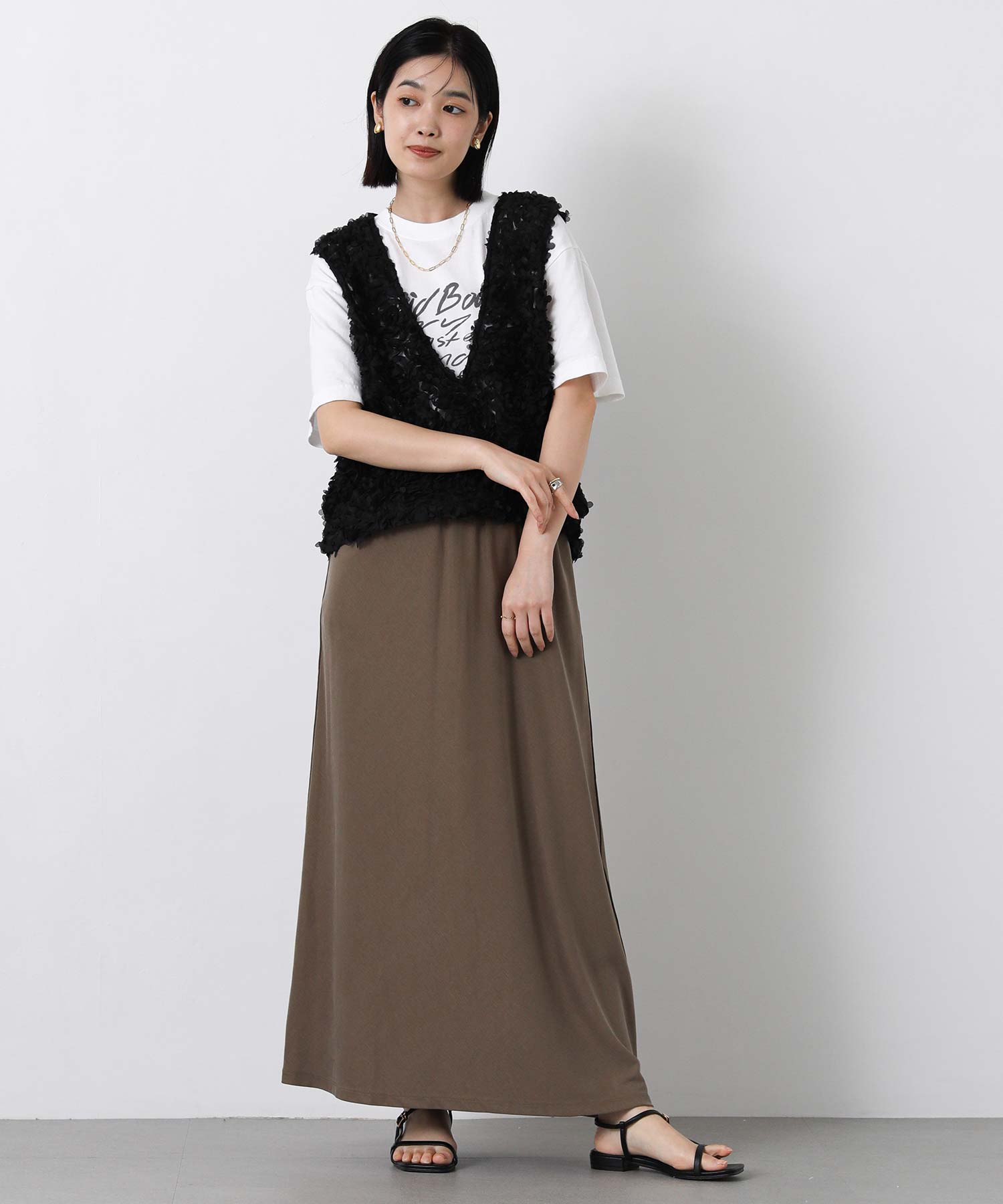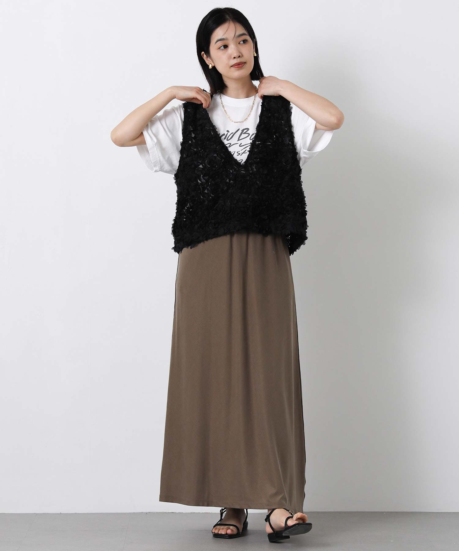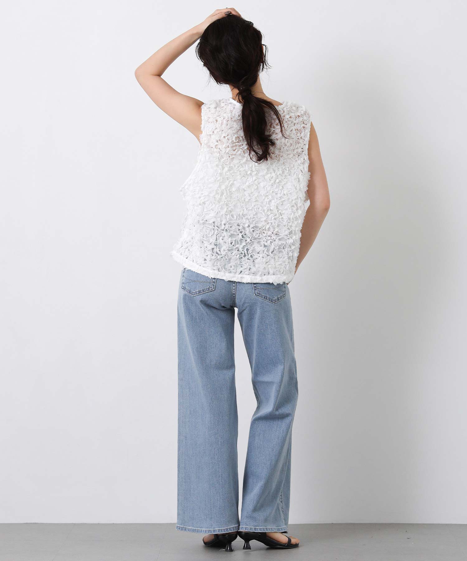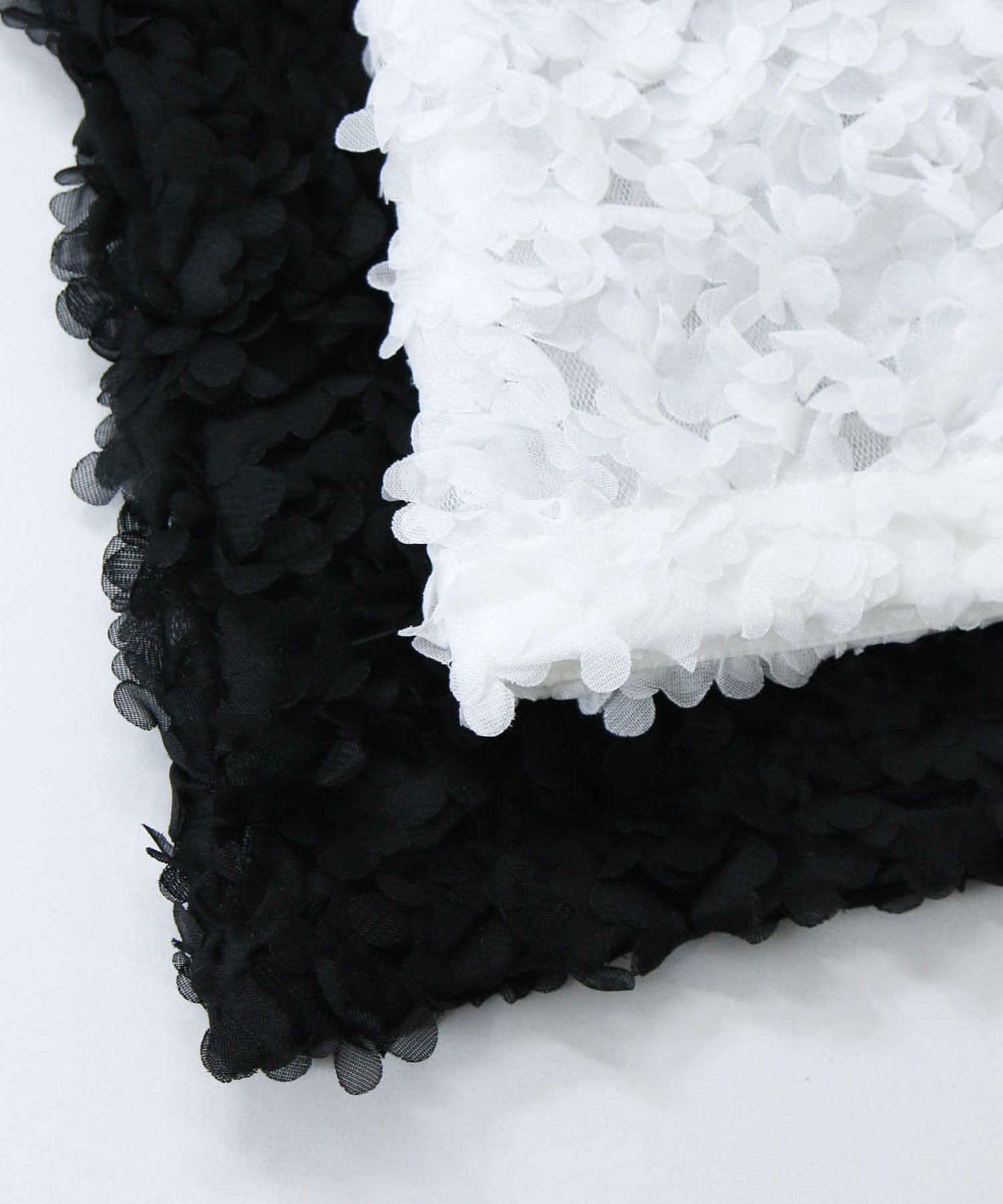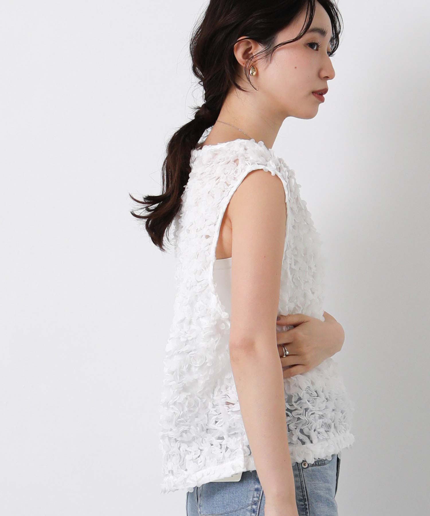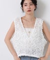 花びらの様なチュールが敷き詰められた生地を使用したVネックベスト。