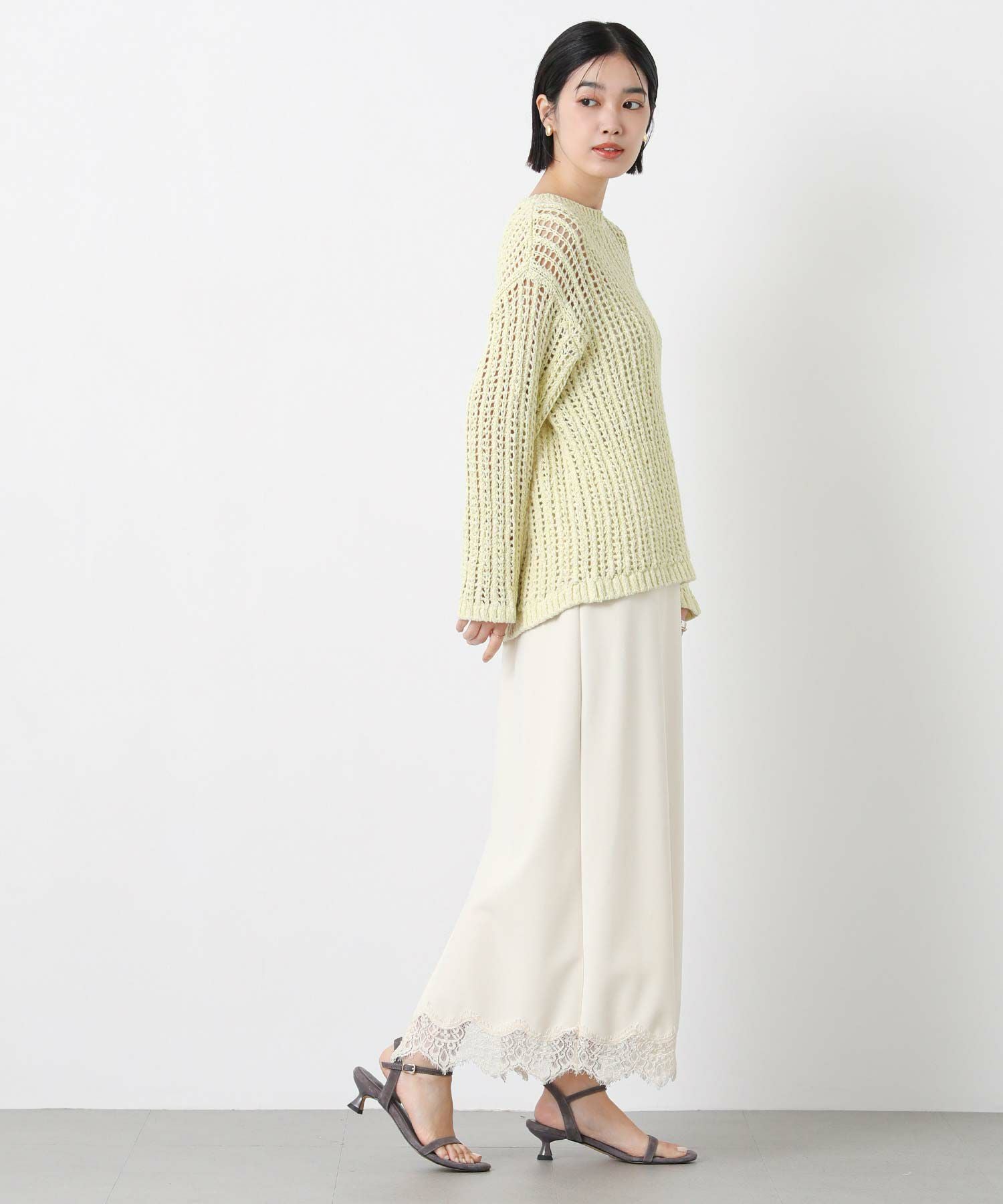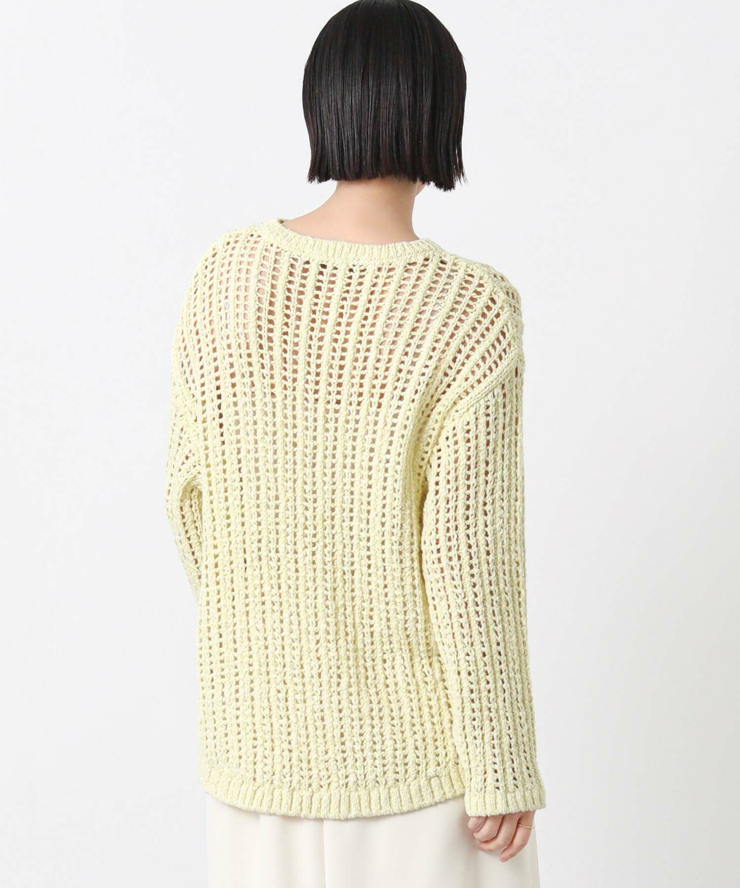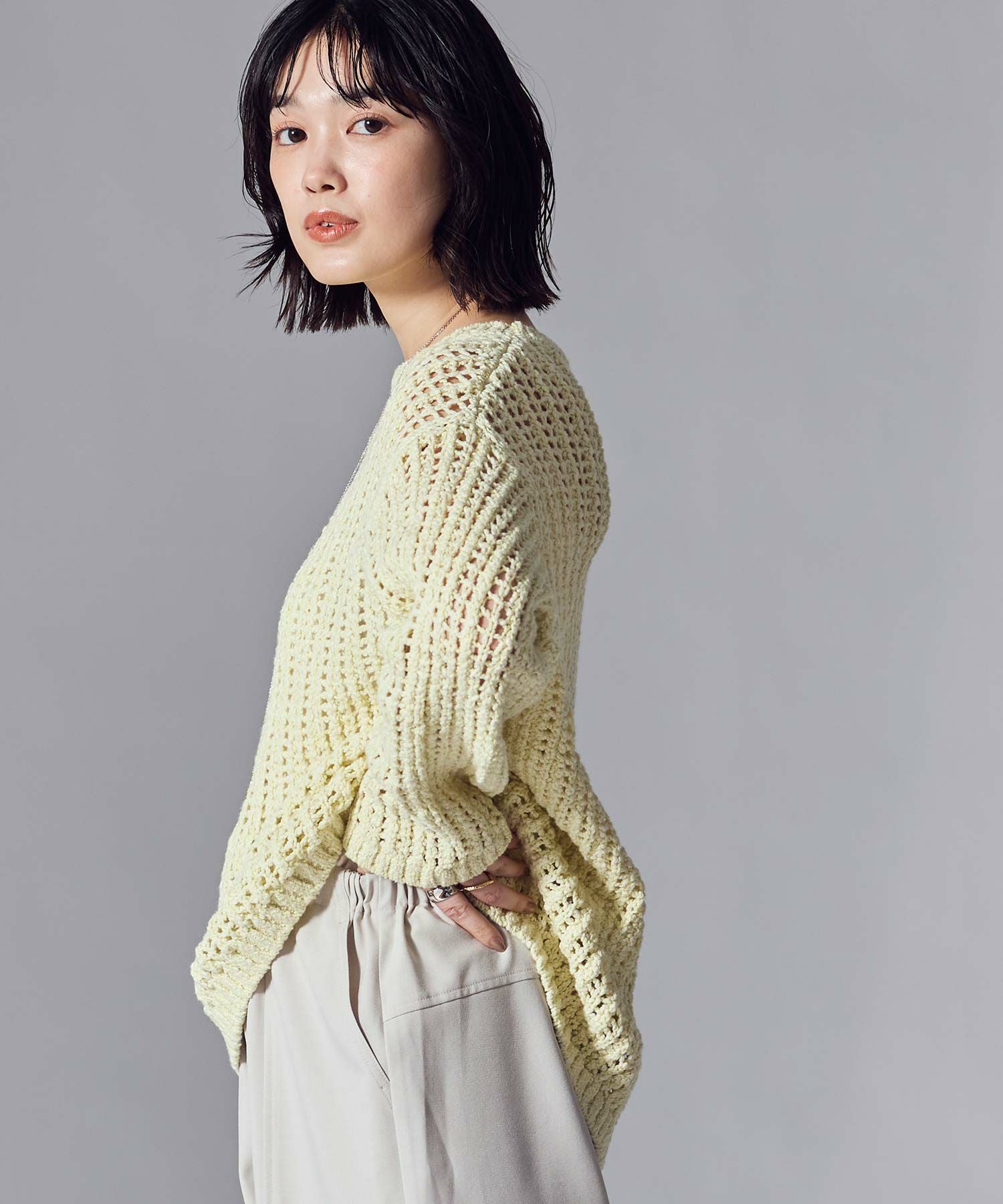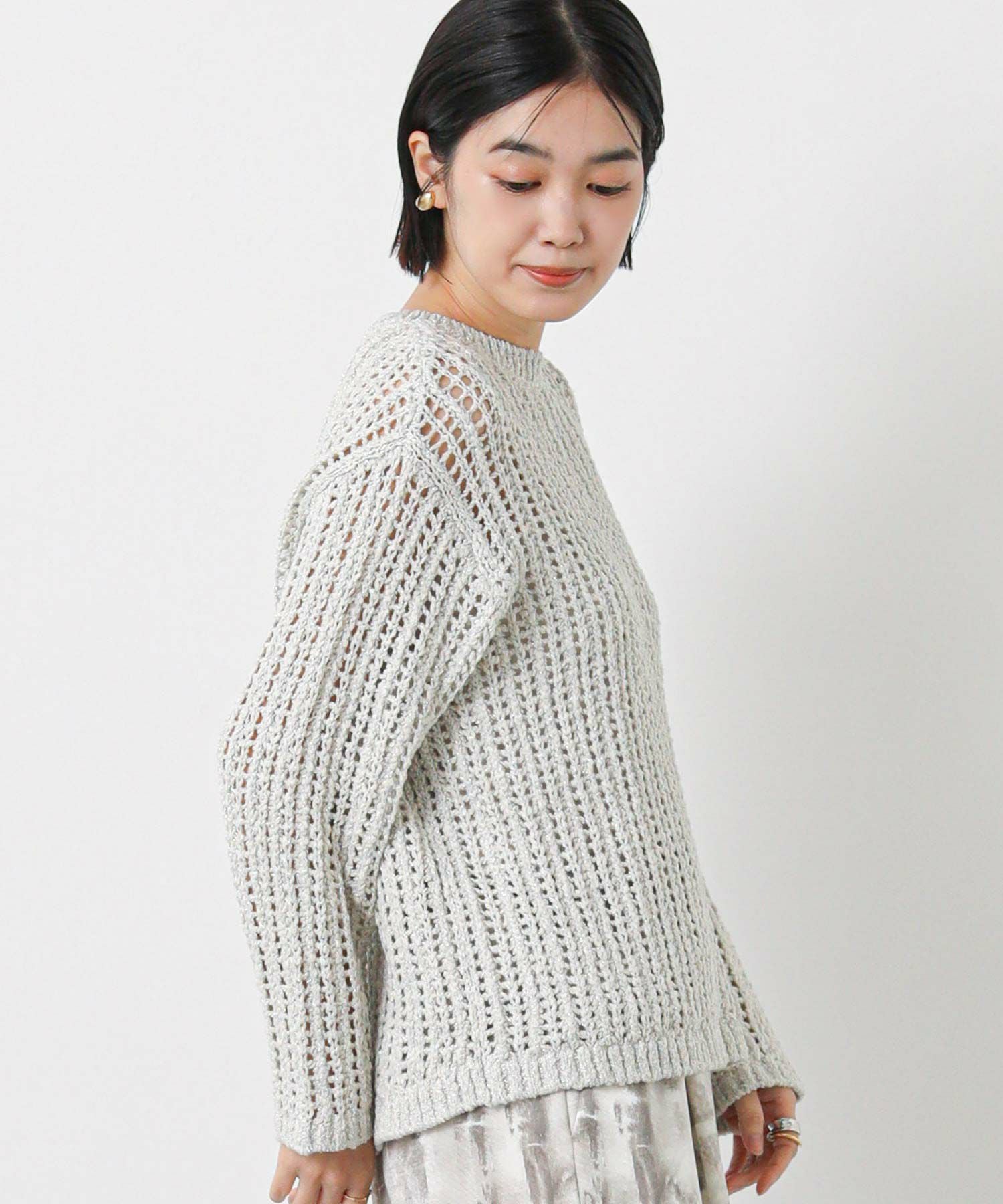 さらっとした肌触りのリリヤーンの糸を使用した、ざっくり感が可愛い透かし柄のニットプルオーバー。