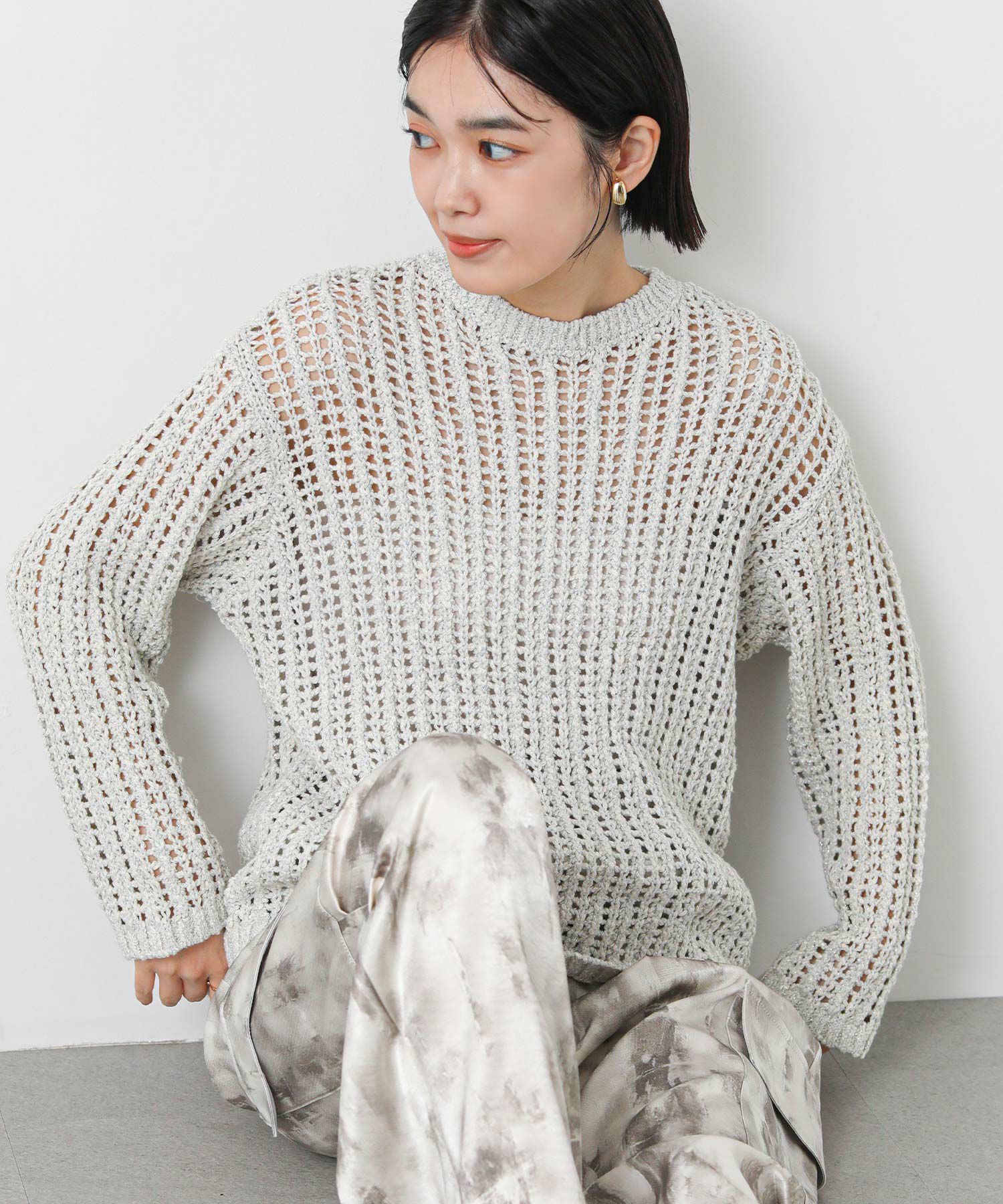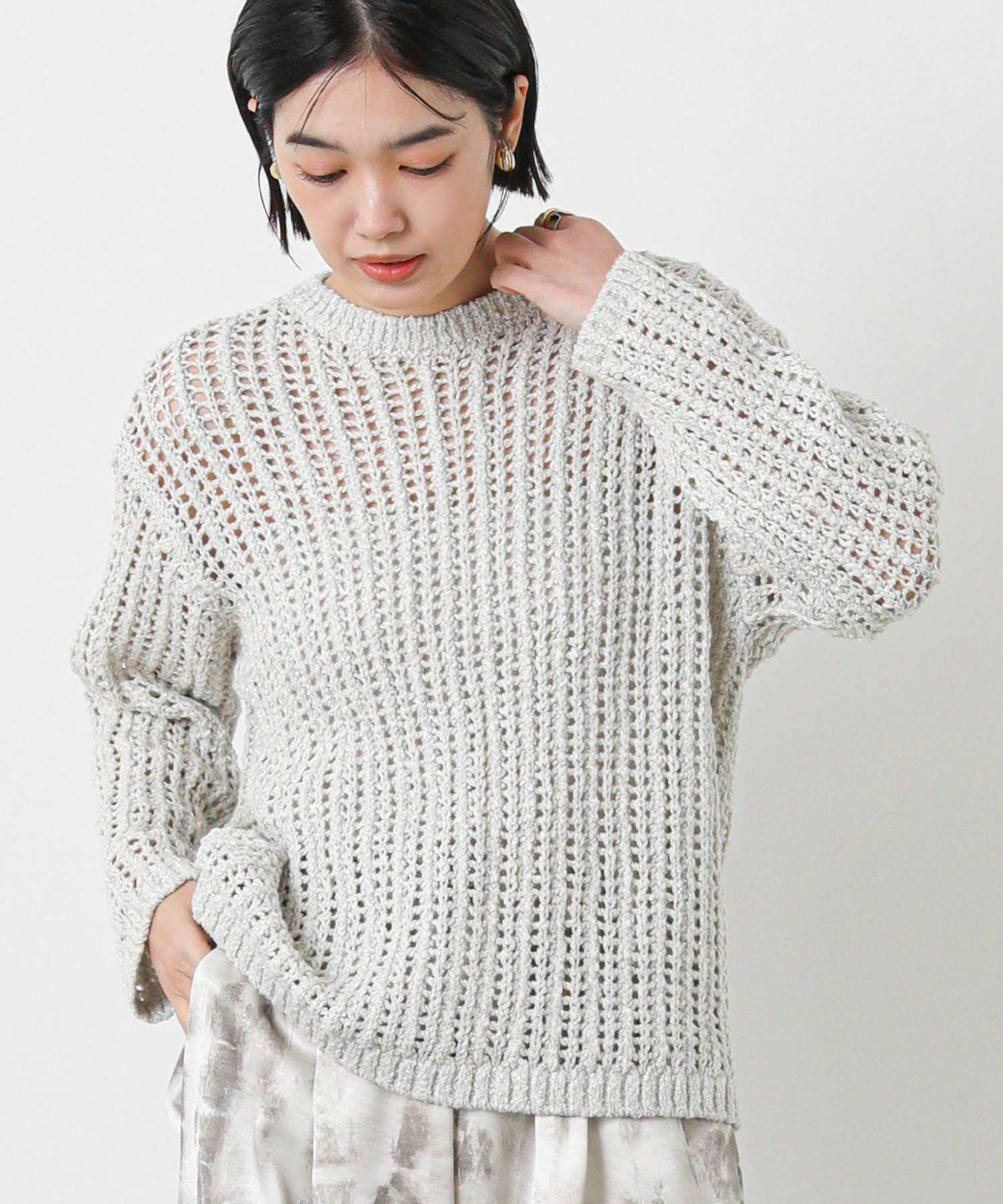 Mixリリヤーンスカシ柄ニット