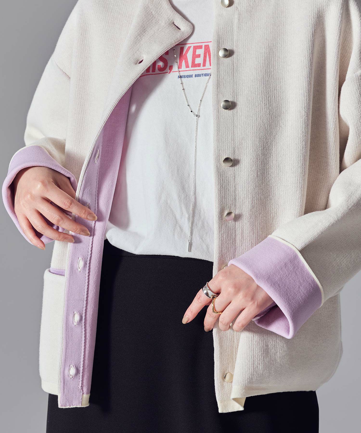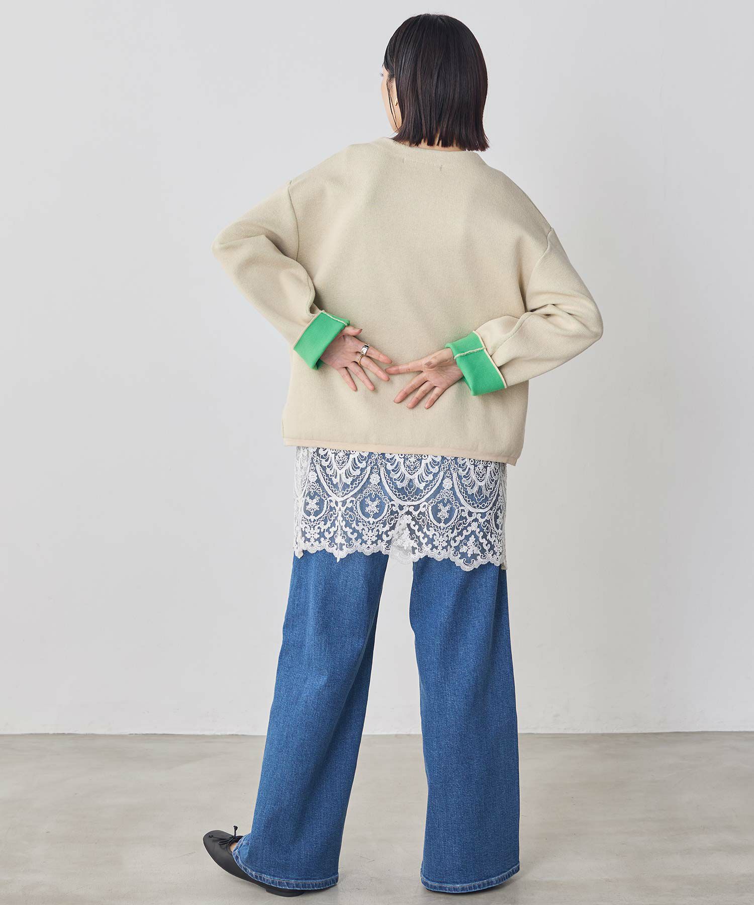 ※着用画像は撮影状況、光の当たり具合で色みが違って見える場合がございます。実際の色みについては、画像一覧の最後に掲載している詳細画像をご参照ください。